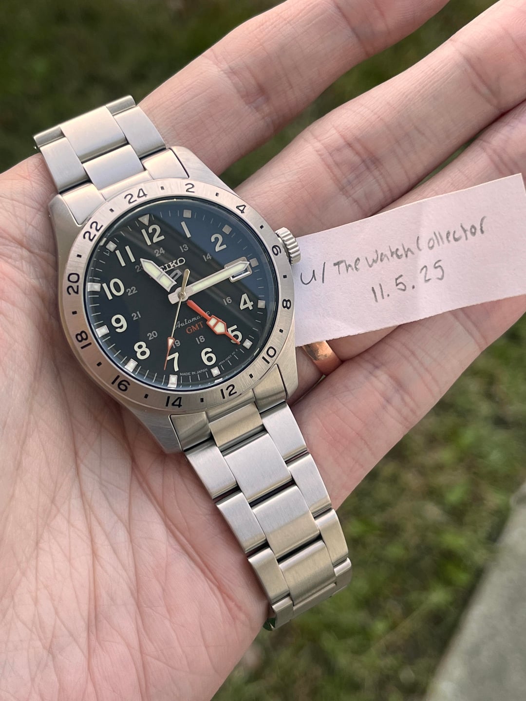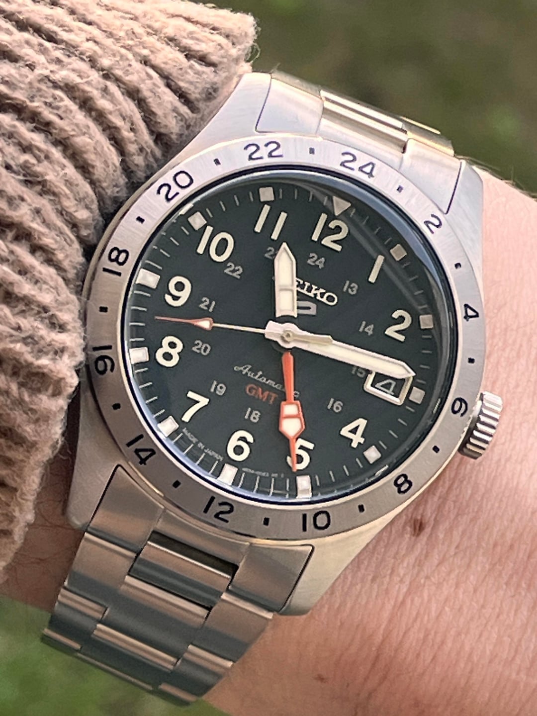JDM Seiko SSK023 in near new condition. Includes an Islander "oyster" bracelet, and additional clasp. The OEM bracelet is virtually unused. Looking for $250 OBO shipped US. PayPal for payment Movement Caliber Number 4R34 Movement Type Automatic with manual winding Power reserve Approx. 41 hours Jewels 24 Functions 24-hour hand (dual time display function) Stop second hand function Case/Band Case Material Stainless steel Case Size Thickness:13.6mm Diameter:39.4mm Lug-to-lug:47.9mm Crystal Curved Hardlex LumiBrite LumiBrite on hands and index(es) Distance between lugs 20 Other Details Water Resistance 10 bar Magnetic Resistance 4,800 A/m Weight 147.0g Features Three-fold clasp with secure lock See-through & Screw case back
