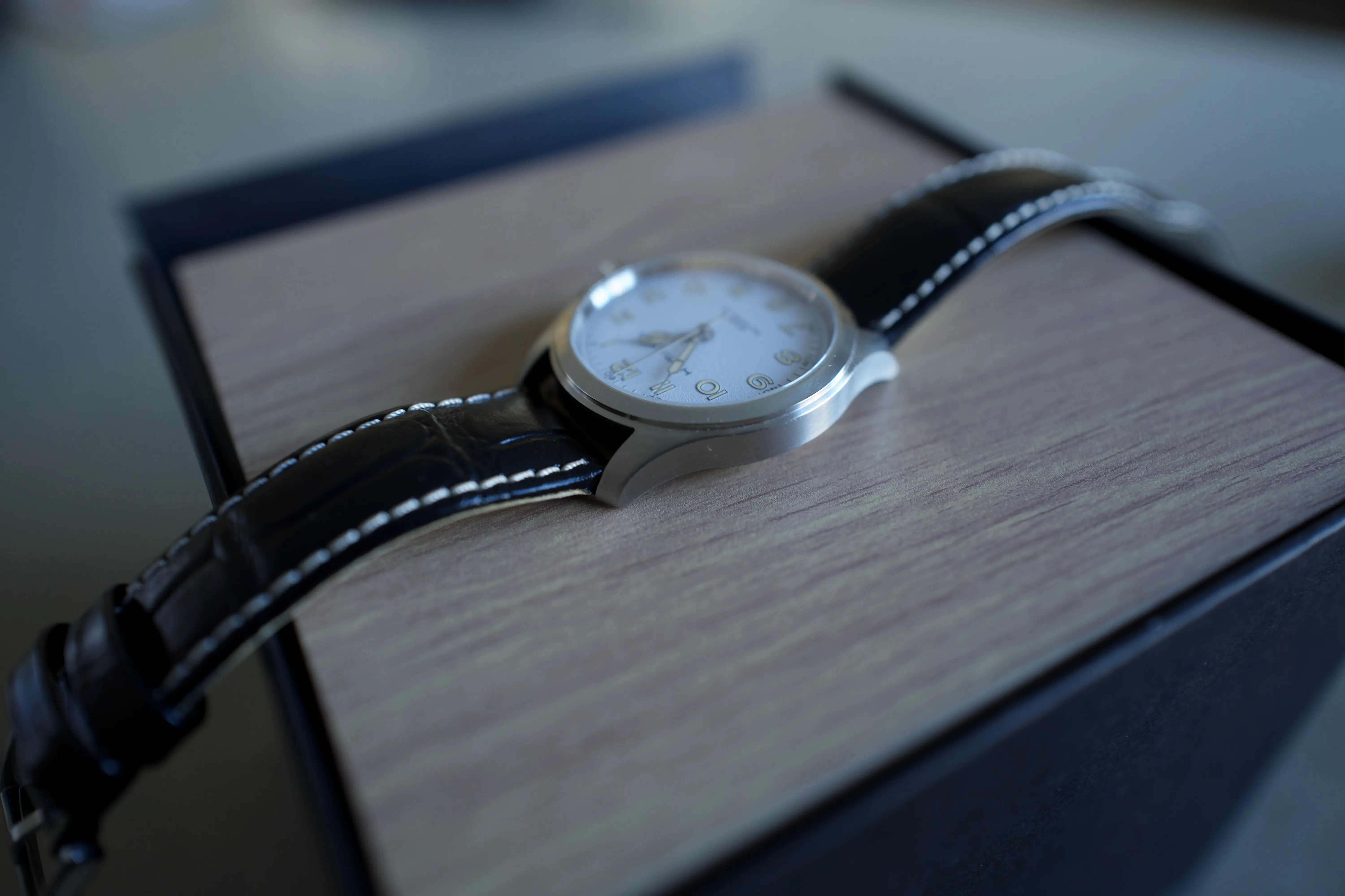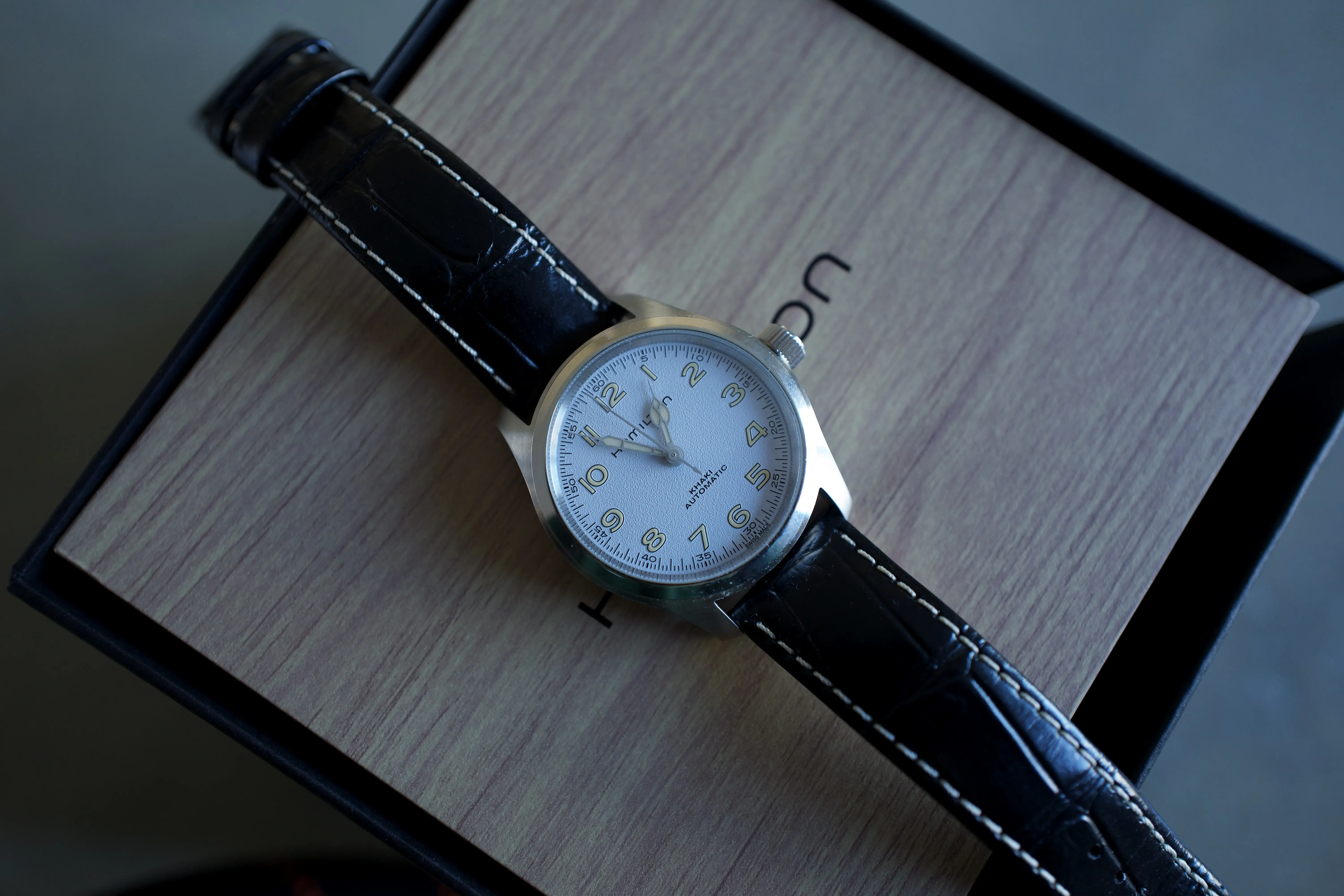 Letting go my white dial Murph. I don't think this needs more introduction but I'll copy the information from Hamilton's website anyway. Only worn it a few time on an after market strap so the stock black strap is practically new. It is stiff just as many reviews have pointed out. I bought the watch when it first came out but later realized I'm not a fan of the faux patina so I stopped wearing it. Asking $450 with US shipping included. Hope I can successfully attach pictures this time.