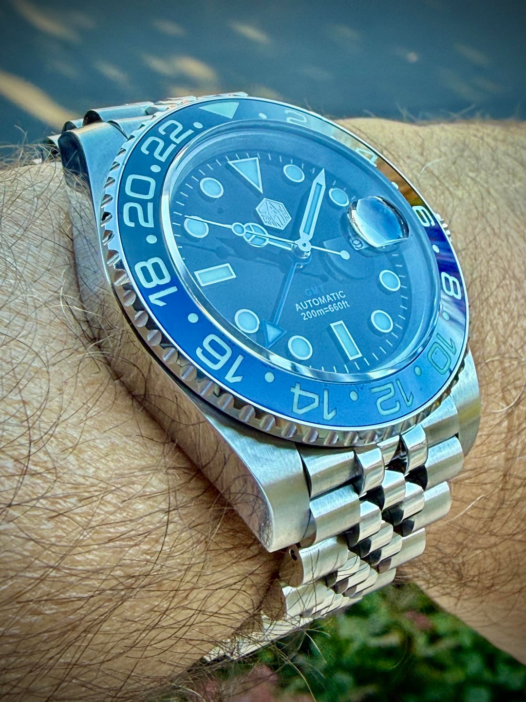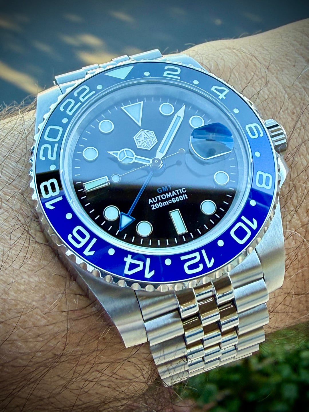 San Martin GMT Master II Batman Homage. Excellent Condition. Keeping great time. $250 Shipped CONUS Happy to go on a video call or send more pictures upon request. Venmo / Zelle