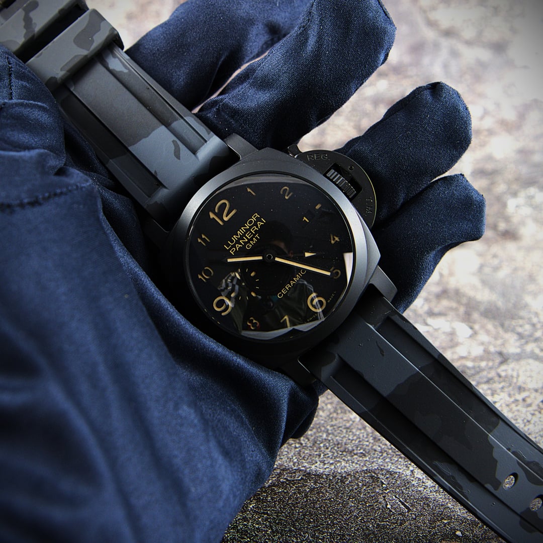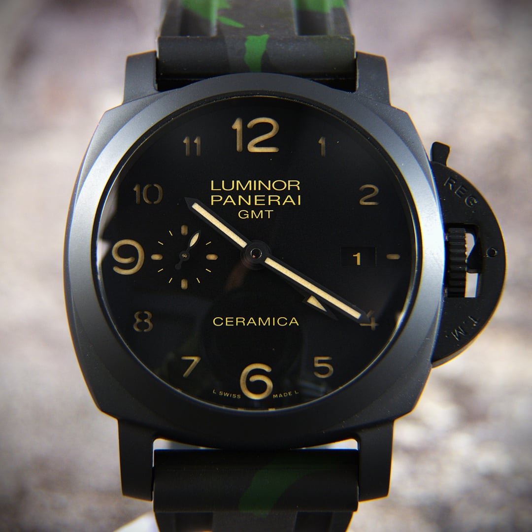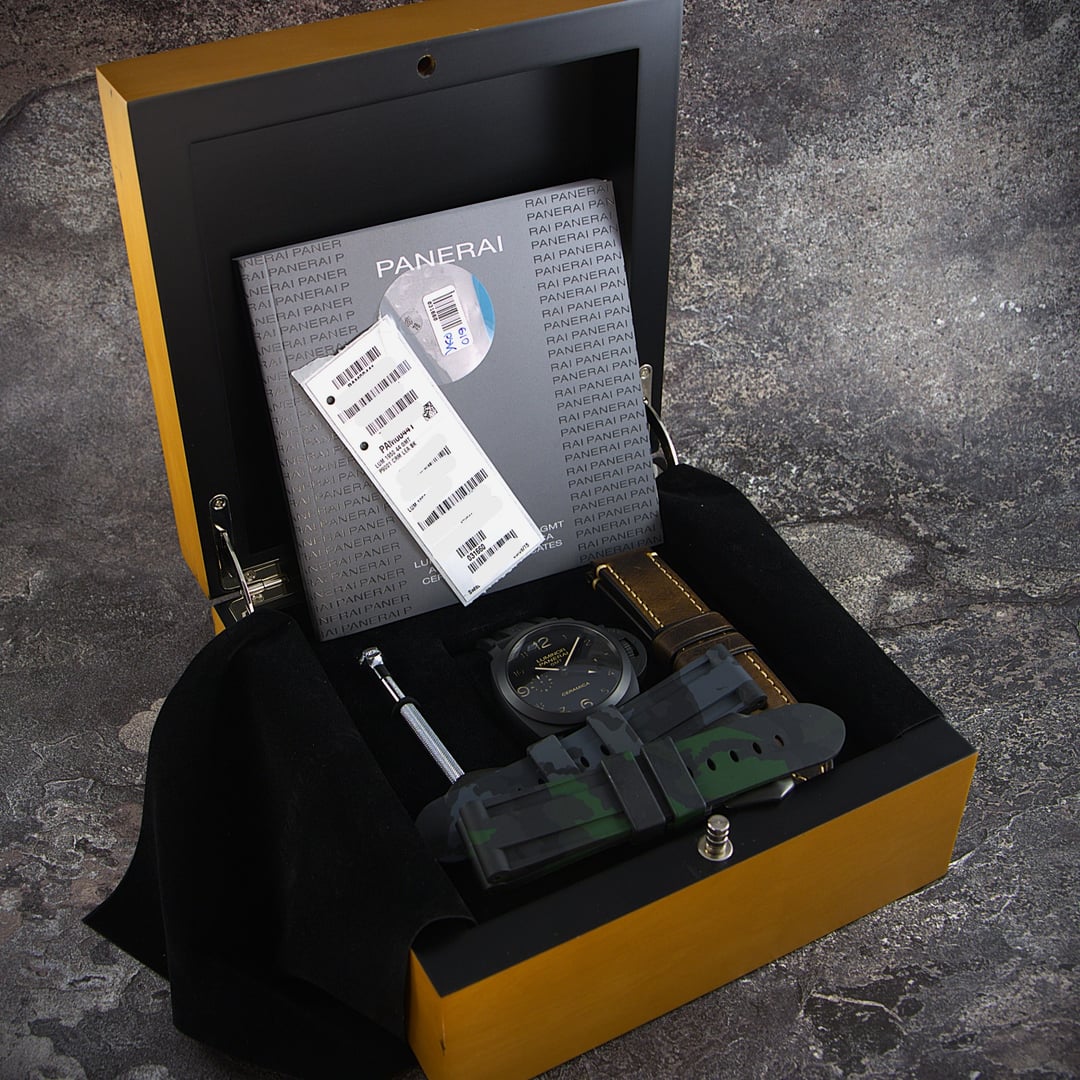 Panerai Luminor GMT Ceramica 1950 3 Days PAM00441 Case: 44mm Condition: This timepiece is in excellent condition. It has been meticulously cared for and shows little to really no signs of wear. The matte black ceramic case is pristine and free from any blemishes, a testament to the material's incredible durability. The front and back sapphire crystals are flawless. This PAM00441 presents beautifully and operates perfectly, offering the experience of a new watch. Accessories: This offering is a fantastic package for any Panerai enthusiast. The buyer will receive the Panerai Luminor GMT Ceramica PAM00441 on its original strap, Panerai Inner Pearwood Presentation Box, Official Panerai Certificate Booklet (Warranty dated 2015), Original Instruction Manual, and Original case stickers. **Bonus**: Three high-quality aftermarket straps are also included: one black/grey camouflage, one green/black camouflage, and one classic brown leather strap. (Please note: The outer cardboard shipper box is not included with this sale.) Embodying the spirit of Italian naval history and Swiss watchmaking precision, the Panerai Luminor GMT Ceramica PAM00441 is a masterpiece of modern horology. Its iconic 44mm cushion-shaped case is crafted from high-tech black ceramic, a material renowned for its extreme hardness, scratch resistance, and stealthy matte finish. The legendary "sandwich" dial offers unparalleled legibility, while the GMT complication allows the tracking of a second time zone, making it the perfect companion for the global traveler. This is a watch that makes an undeniable statement of strength, innovation, and sophisticated style. $6️⃣3️⃣0️⃣0️⃣ + 🏷️ MSRP: \~11.2k Shipping available to anywhere in CONUS. Shop with confidence, many references available and authenticity guaranteed! NY residents subject to sales tax without resale certificate IG: royalty.timepieces Timestamp: [https://imgur.com/ZMHmEm5](https://imgur.com/ZMHmEm5)