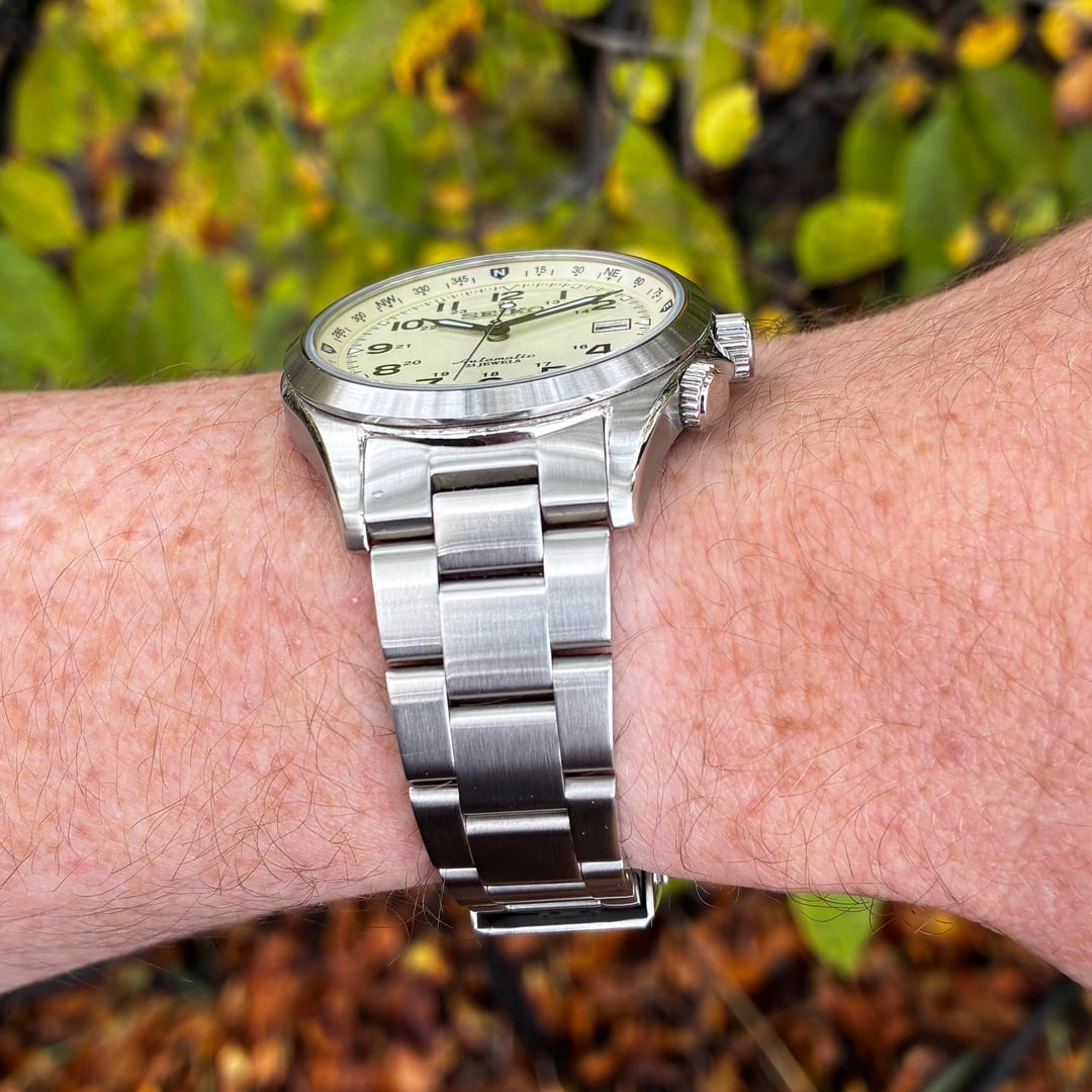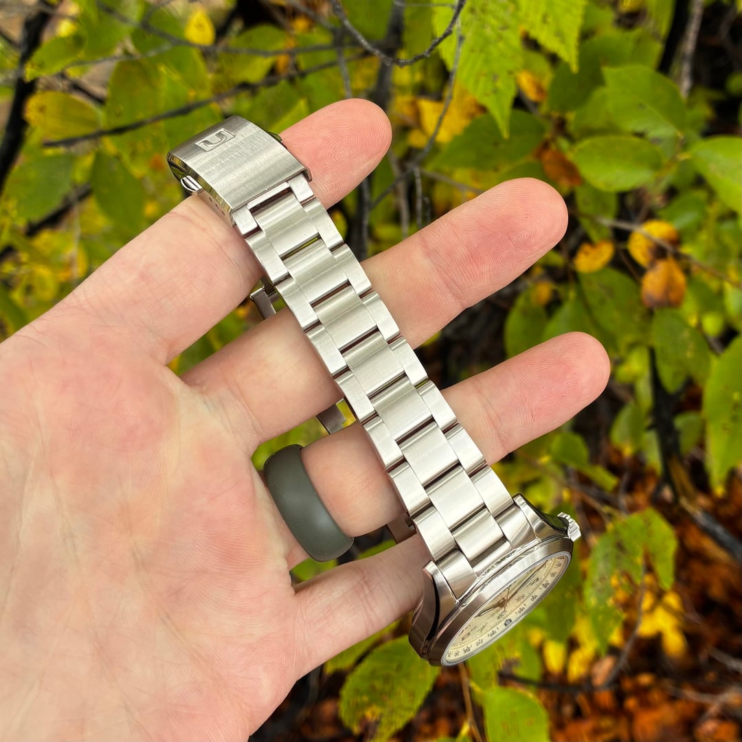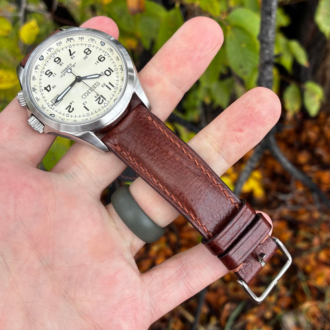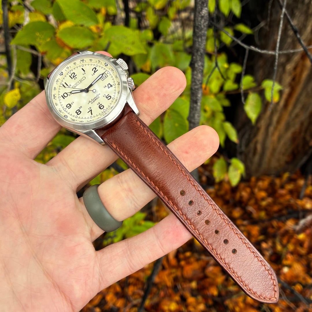 For sale today is the Seiko SARG005 “Field Alpinist”. This watch is discontinued and becoming increasingly harder to source. This example has been serviced and is in great condition with only minor scuffs on the bezel and on the back of the lugs from strap changes. It is keeping great time on the wrist. Well within spec for this movement. Dimensions: 40mm in diameter, 20mm lug width and is 11.6mm in thickness. Movement: Seiko 6R15 - 50 hour power reserve Strap: Handmade Brown Leather and Uncle Straps Oyster with solid links and screw pins Box & papers: Watch Only Water resistance: 100M Crystal: Sapphire Price: $580 shipped CONUS fully insured (Paypal friends and family) I will ship within 24 hours of receipt of payment. NO TRADES AT THIS TIME