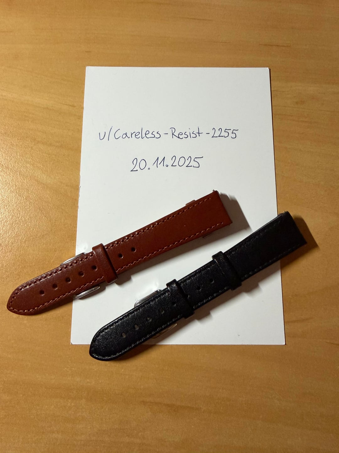 Hey, selling two Hirsch Osiris calf leather quick-release straps. 18mm / Long (120mm/80mm) / Silver Buckle Selling for 25€ each, 40€ if buying two. + shipping costs Straps: - brown (unworn) - black (used 2-3 times, perfect condition)