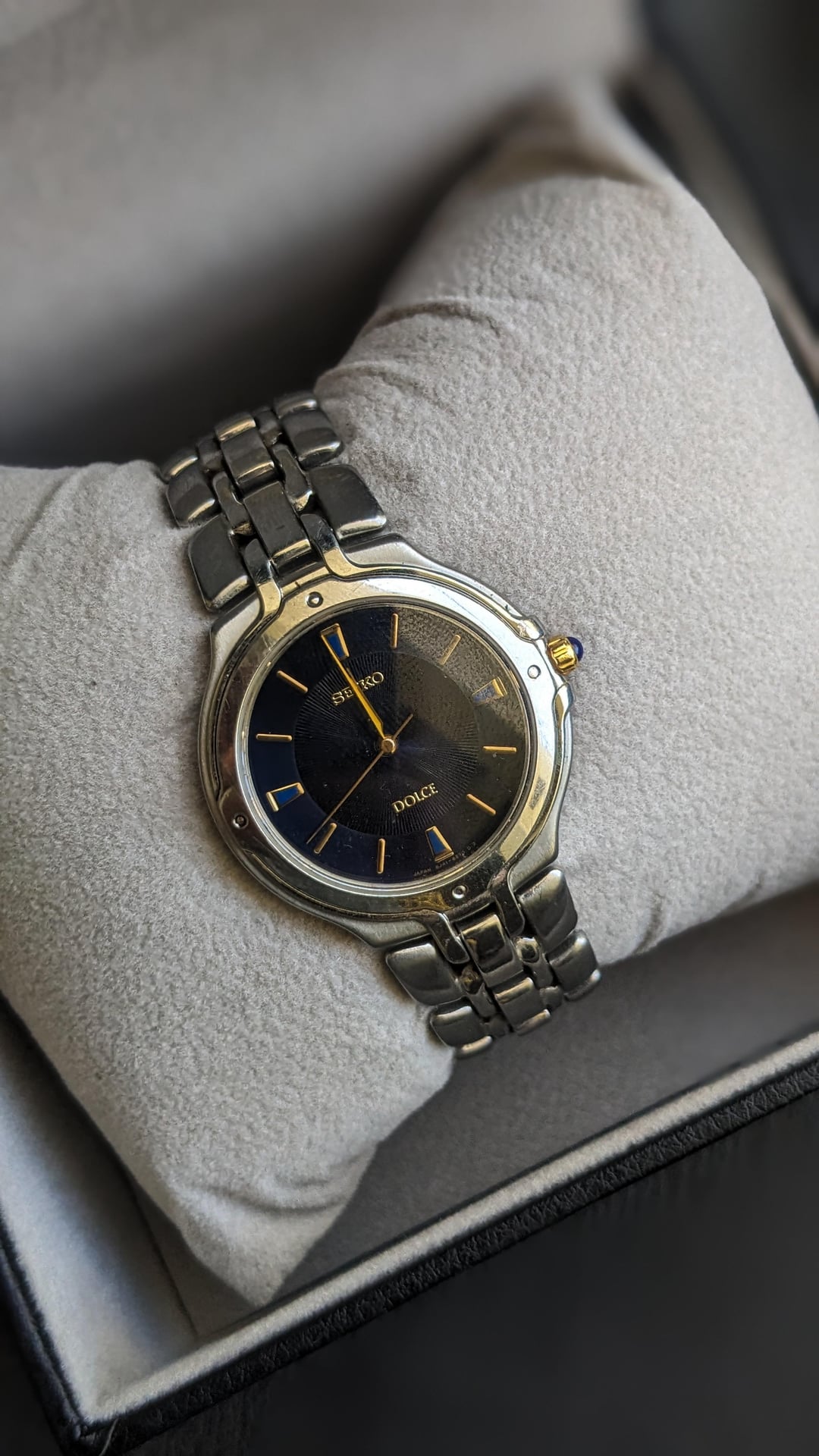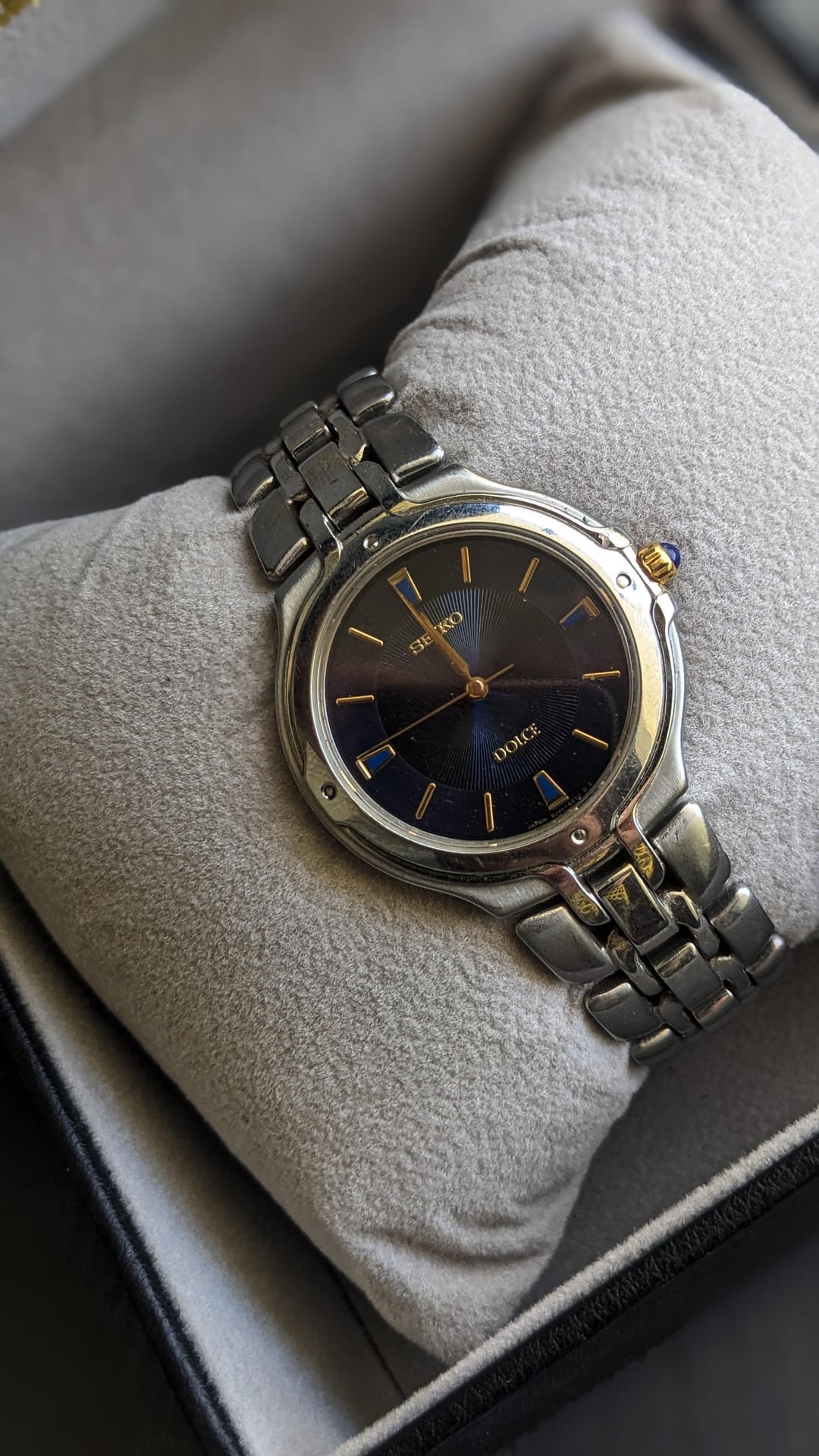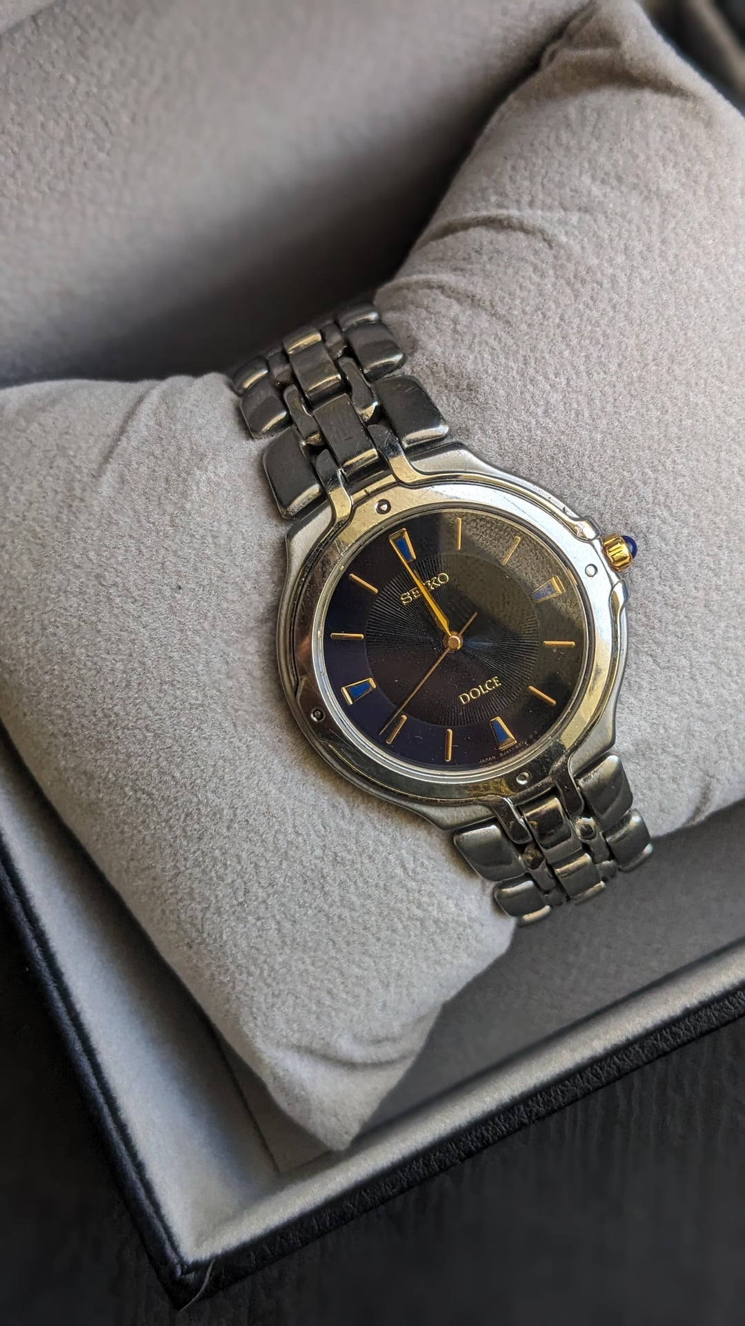 [WTS] vintage Seiko Dolce SACM067 -with Gilded hands & markers Watch , Iridescent dial & Domed Sapphire , Blue Crown Cabochon price $225
