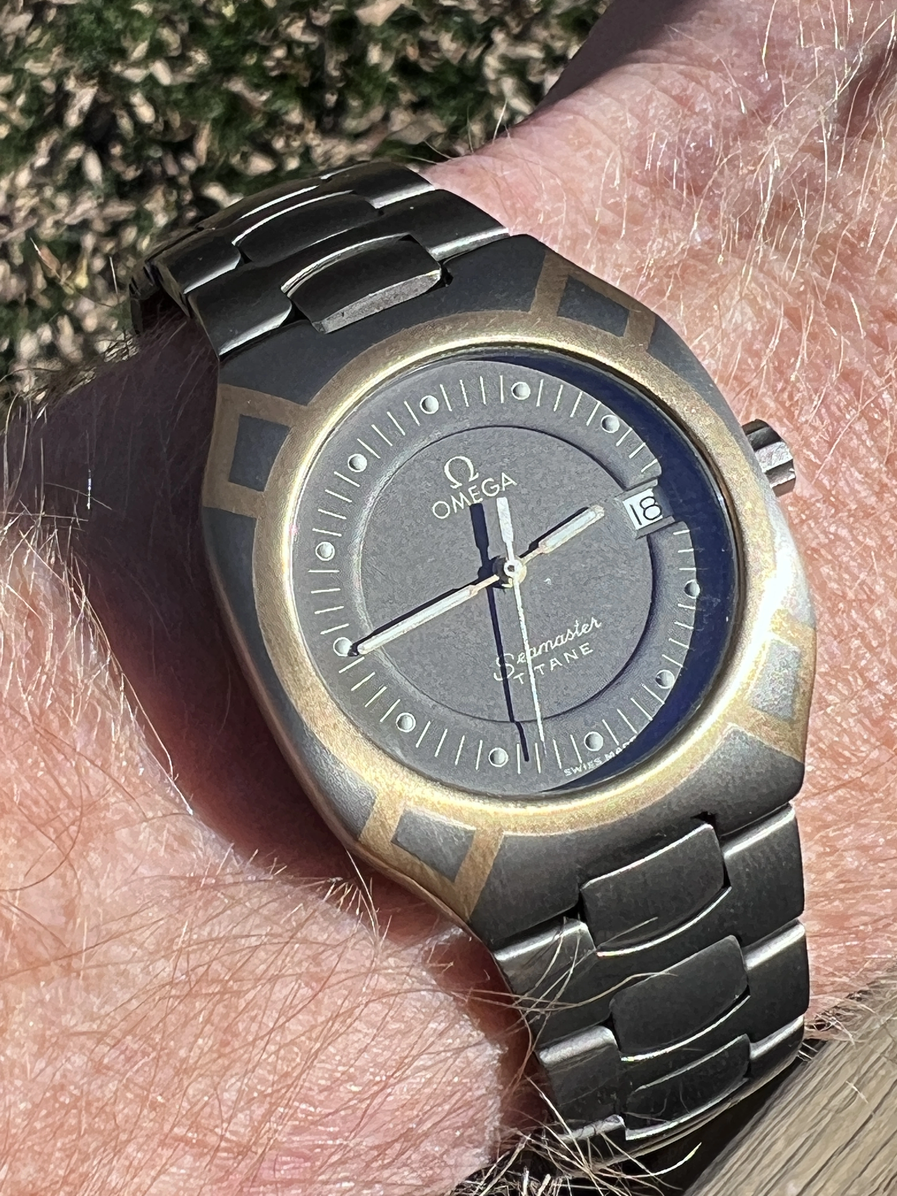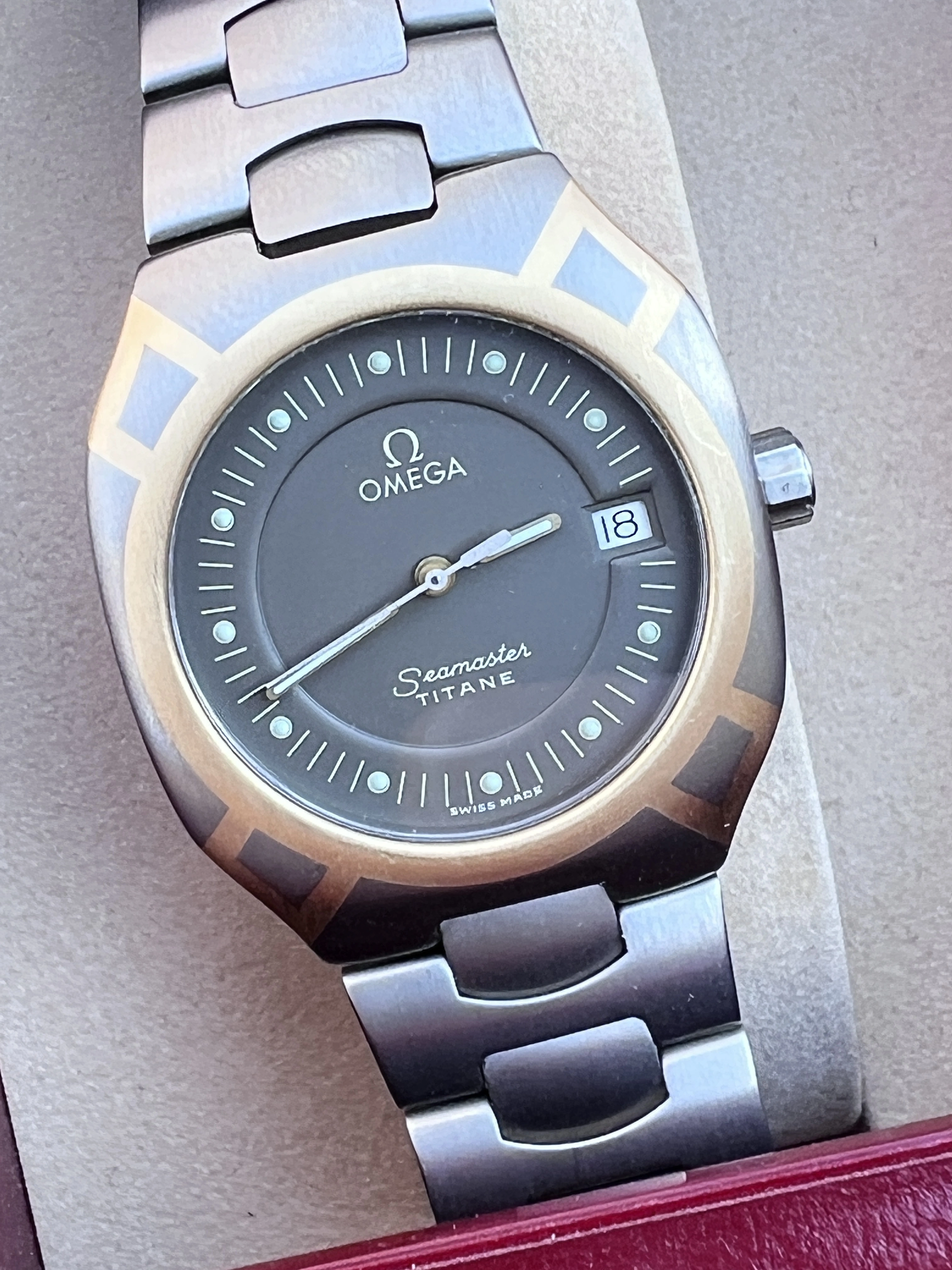 Looking for a new home for my Seamaster Polaris Titane, a Genta-designed wonder from the 1980s that was famously (for those who followed him) endorsed by John McEnroe. This one is in excellent condition with a hairline scratch on the caseback. Case width is 32mm, the watch is extremely light on the wrist, and the bracelet clasp is a clever design that is very secure.