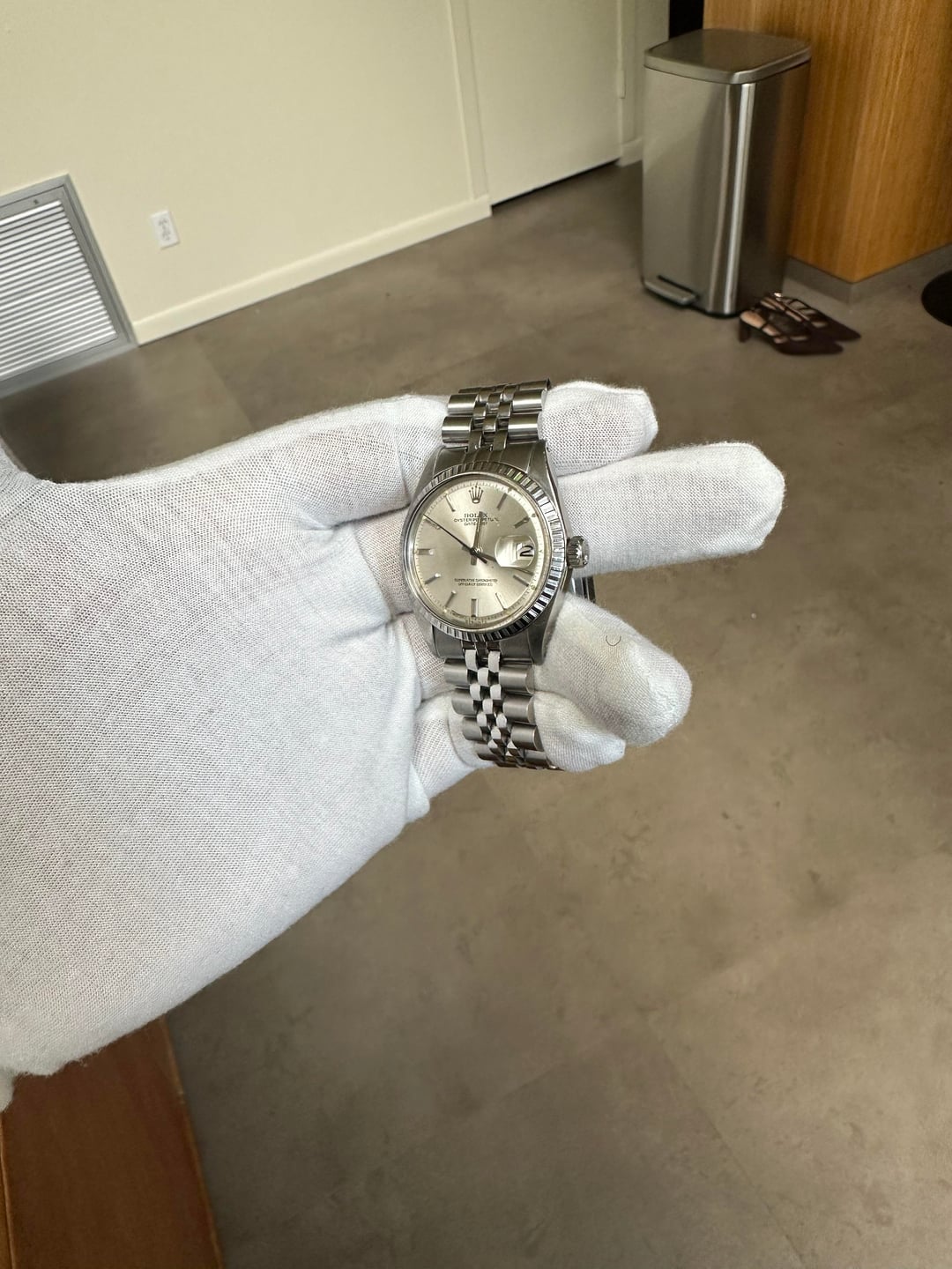 Today I’m selling a Rolex Date Just 1603 from 1973 This watch comes as watch only Short on links fits tight Number of links: 17 total links 3/17 links are screwable Great condition watch and hold time No box No papers Asking $3,700 Based in Houston Tx 77098
