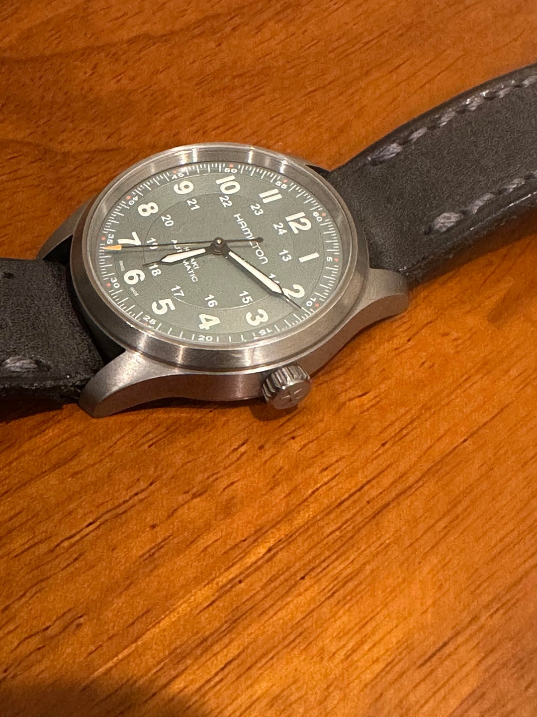 ![Thumbnail [WTS] Hamilton Green Khaki Field Titanium Automatic 38mm with Greg Stevens strap - $600 8](https://cdn-cf.watchpatrol.net/120x120/img/full/d96e838b890c0052c09dda8677b8055fb5dca33c.jpg)
