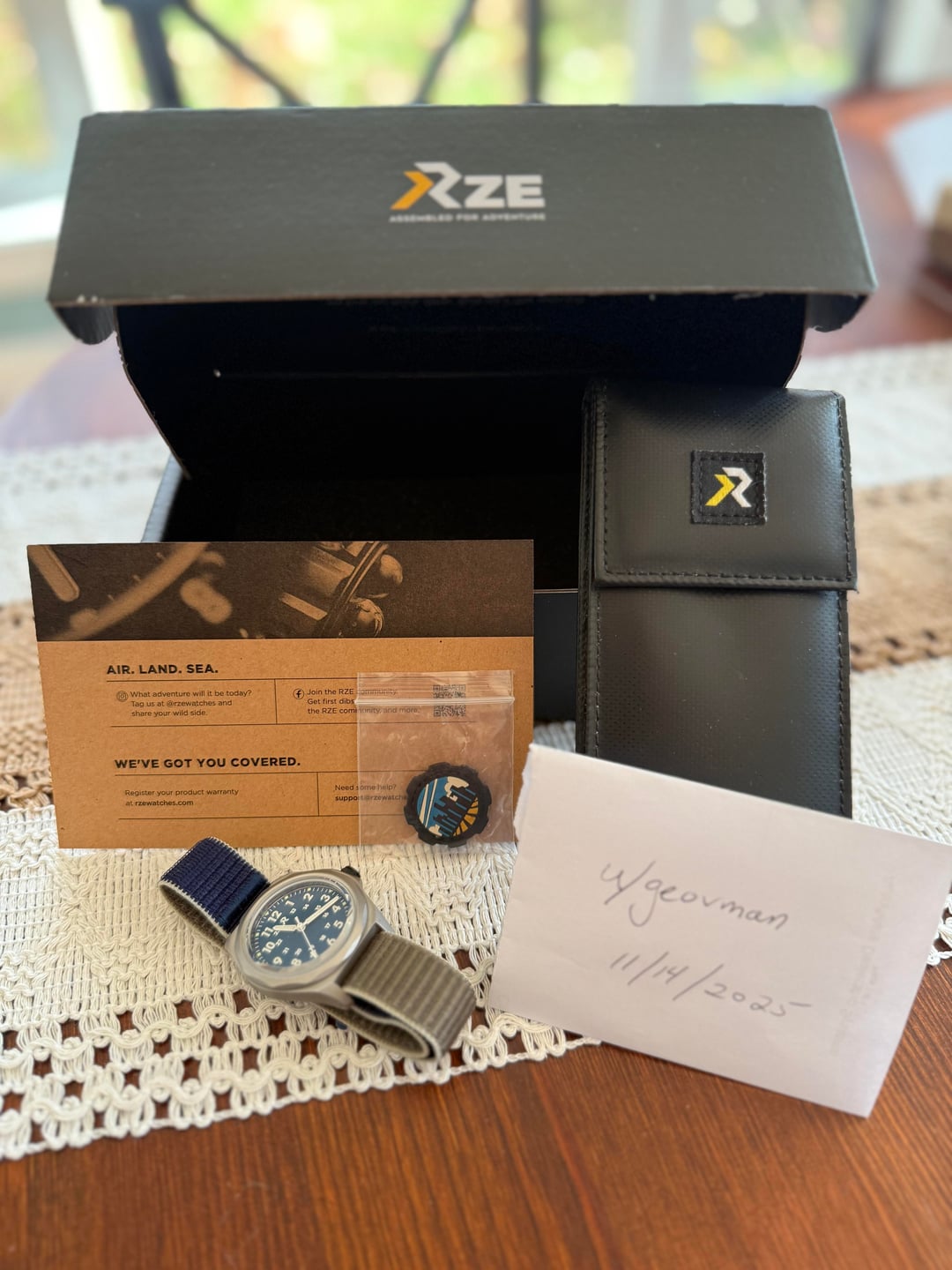 Offering up my RZE Urbanist in Metropolis dial color. I bought this as an inexpensive grab-n-go and to see if a 36mm would suit me. It’s a super comfy titanium solar quartz with an elastic strap that you forget you’re even wearing. I am the original owner and I just got my RZE Resolute 36 so id like to move this one along. Im not finding any signs of wear on the case at all and the strap is also like it just came out of the box. I included a pic on my 6.75” wrist for reference. Comes with everything it shipped with. Asking $195 shipped via PayPal f&f or Venmo. CONUS only please and no trades on this one.