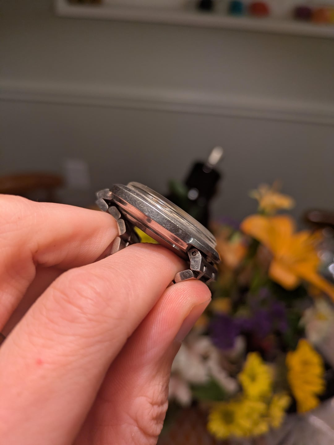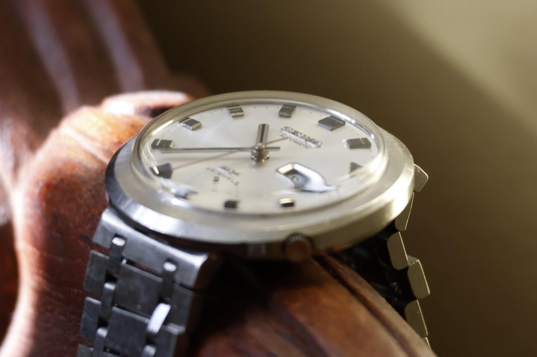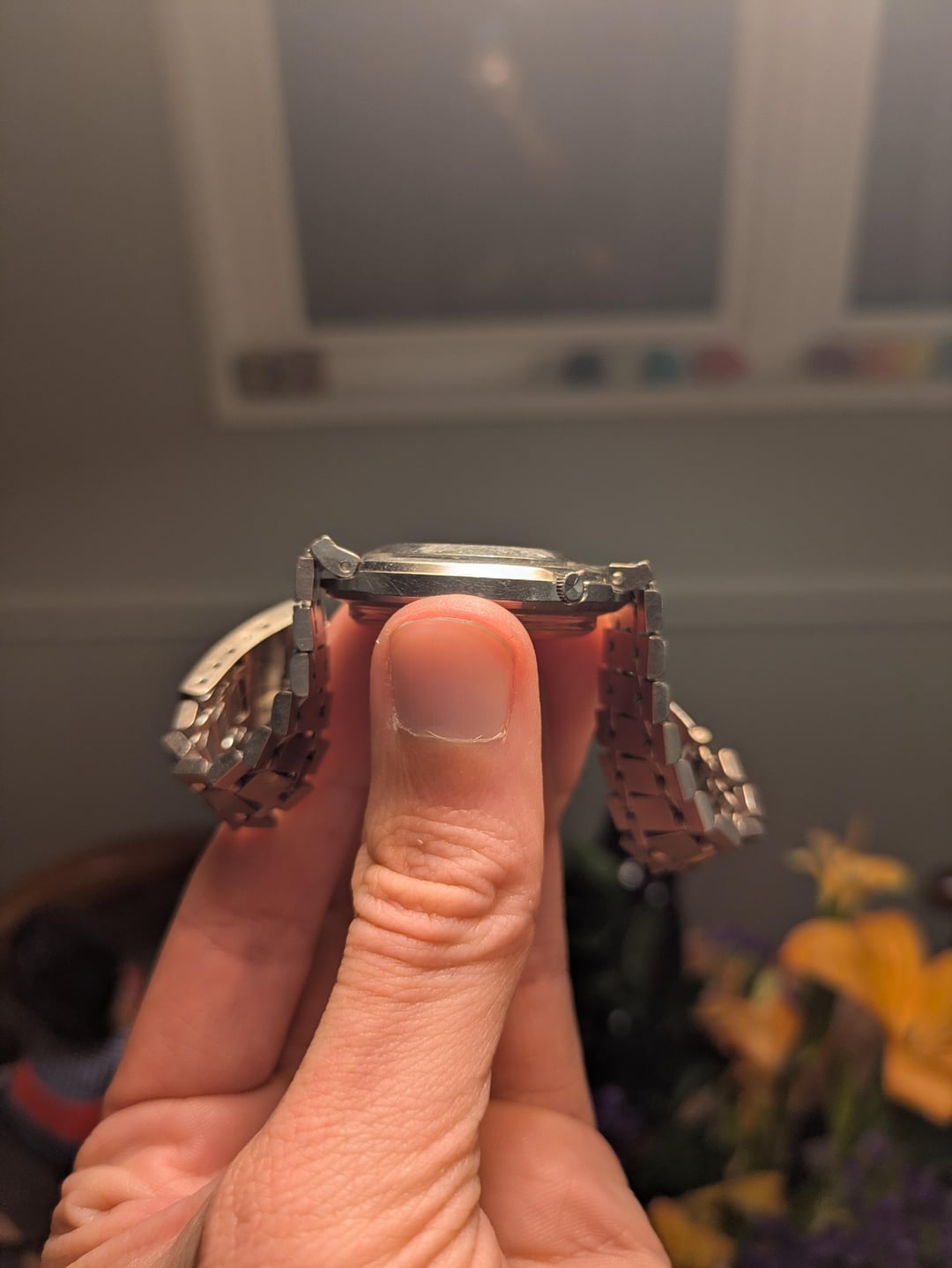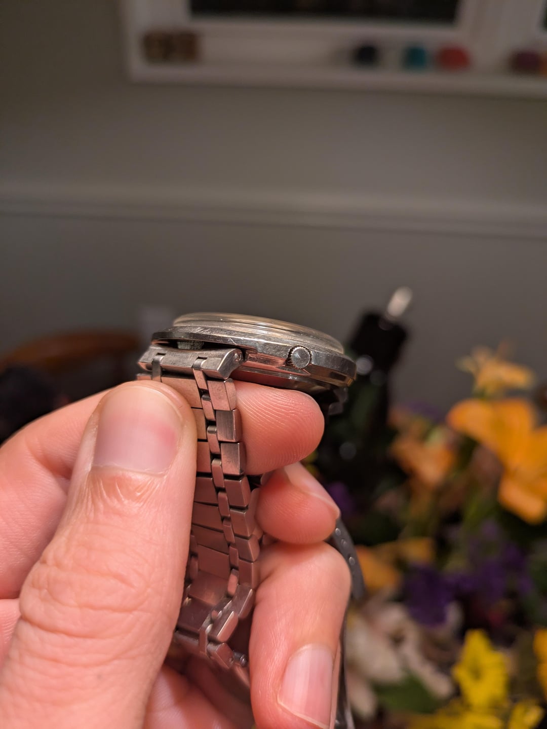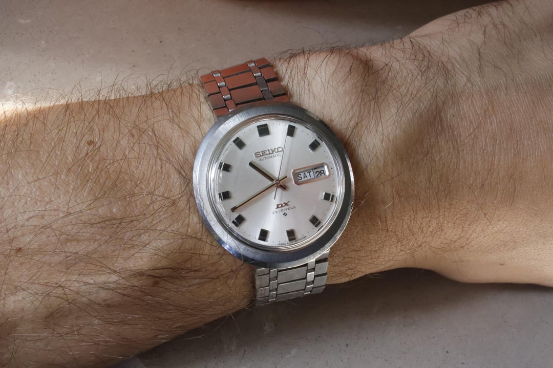Up for sale today is the funky-yet-elegant **Seiko DX 6106-8070** from 1968. The DX range was used by Seiko to designate watches originally in the "5" line but with a higher quality finishing. This 6106-8070 features a silver sunburst dial whose sunburst continues out through the case for a unique look, as well as a slightly oblong/ovular case. Another fun feature is the quick-set date activated by pushing in the crown (which sits nearly flush with the case). All parts are original (including the bracelet), and the watch was given a complete overhaul service (\~$400) by the good folks at [Time Zone](https://www.timezonecostamesa.com/) in 2024 (service receipt will be shipped with the watch). Current accuracy is +/-10s per day by my daily record, but I have not put it on a timegrapher. **Seiko DX 6106-8070** *Produced*: October, 1968 *Movement*: Seiko 6106 (day/date, hacking, quick-set date) *Case*: \~36mm *Bracelet*: 18mm (original, currently sized for my 6.5" wrist, with extra links included) *Crystal*: Domed Acrylic (original, polished) *Defects/Signs of Age*: In fantastic shape for being almost 60 years old, the bracelet has minor scuffs while the case has a few minor dings and scratches (please see photos and/or DM me for further details). I have never held another 8070 case, so I am only guessing at this part, but one of the spring bars does not depress and the link does not move - I do not know whether this means it is rusted, but the folks at Time Zone asked me if I wanted to force it open and I said no. As you can see from the photos, this does not affect the comfort or look of the watch, especially since the "notched" style of the bracelet means that this watch is essentially always worn with the original bracelet. *Price*: **$250** OBO, PayPal F&F (includes tracked USPS shipping within CONUS) - also available for local pickup in DMV/MD