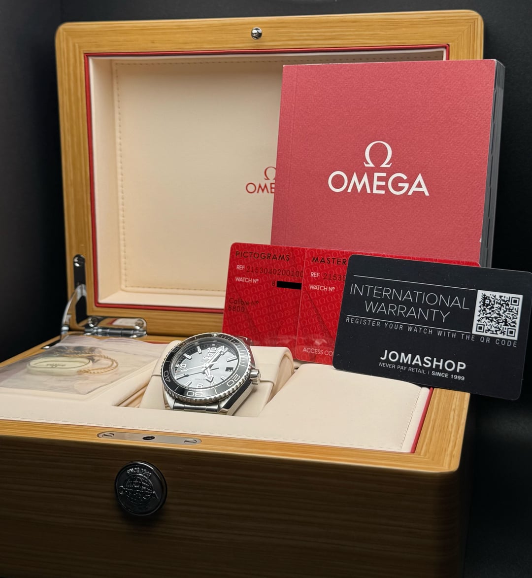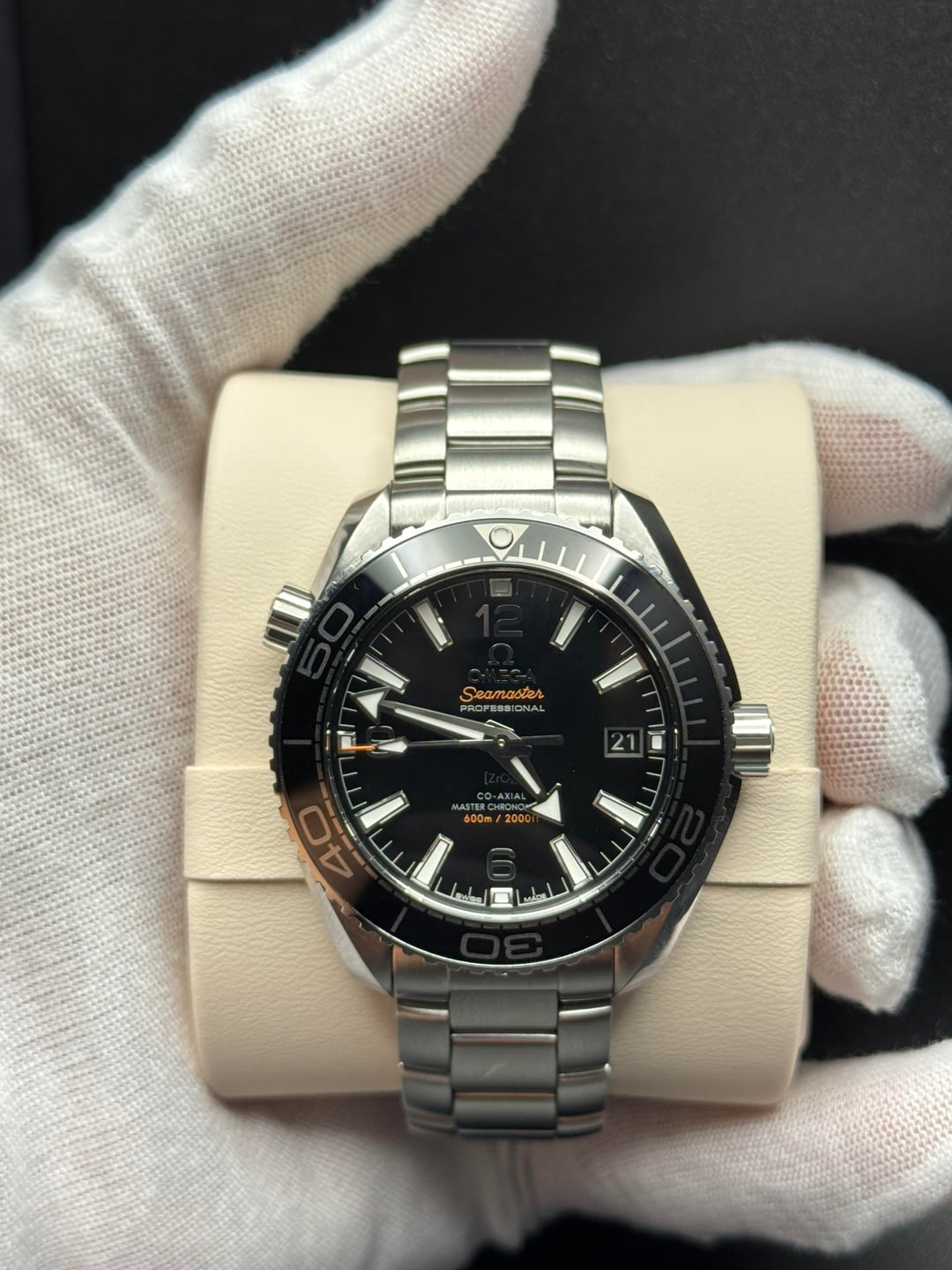 This is the first Planet Ocean generation to introduce the 39.5mm case size making it one of the most desirable and collectible versions in the long term. Reference: **215.30.40.20.01.001** **Under warranty until 2028 with Jomashop.** International Jomashop warranty card instead of the Omega factory card, as the watch was originally purchased through Jomashop. This timepiece comes **Full Set** with: Omega presentation double boxes, manual, extra links, white tag, Certificate Chronometer card, Pictograms card and Jomashop warranty card valid until 2028. **Conditions:** - Very good pre-owned condition - Case and bracelet show minimal signs of use (nothing major). - Sapphire crystal is flawless with no scratches - Gloss black ceramic bezel is clean and free of marks. - Dial is perfect with strong lume and no imperfections. Price: **$4,250 Shipped CONUS** Professionally packaged and shipped fully insured. We usually ship the very next day, so you get your watch quickly and without delays. **I’m always happy to help** with any questions and provide additional photos or videos