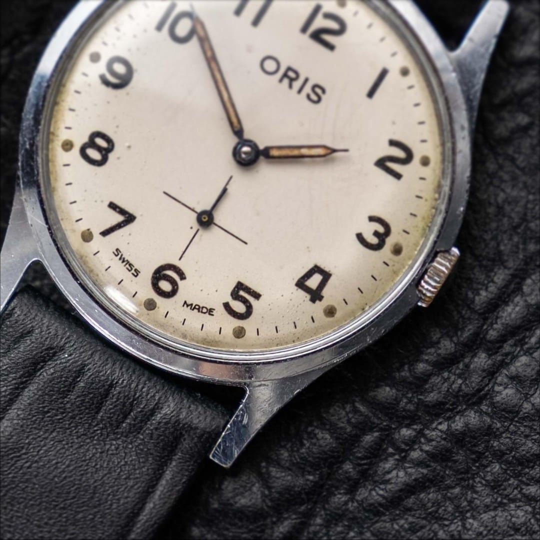 A relic of postwar practicality, this 1950s Oris field watch blends military clarity with Art Deco grace. The full Arabic numeral dial—rendered in a warm patina—channels legibility at a glance, while the long leaf hands and minimalist sub-seconds register bring symmetry and softness to the utilitarian design. At just 33mm, this watch speaks quietly but confidently. The domed crystal and slim polished case offer a vintage silhouette that slips effortlessly under a cuff, yet still holds its own with modern-day wrist presence. A field watch for thinkers, writers, and weekend explorers. For reference, my wrist is 17cm (6.69 inches) and this piece wears comfortably with understated charm. Approx. Year: 1950s Diameter: 33mm Thickness: 9mm Lug to Lug: 40mm Wrist shown: 17cm / 6.7in Timestamp: https://drive.google.com/file/d/1WiJhcHu4r3Kn1-5HG_fbwLMk_R211hf9/view?usp=drivesdk Pricing, Payment & Shipping 💵 Price: $299 + shipping 📦 Shipping: $50 (UPS Express 3-5 days with tariffs taken care by me!) 💲 Payment: PayPal F&F or G&S (buyers add 4.6%) 🚫 No trades at this time For more vintage pieces, check out my Instagram: vintagewatch.lab Thanks for looking!