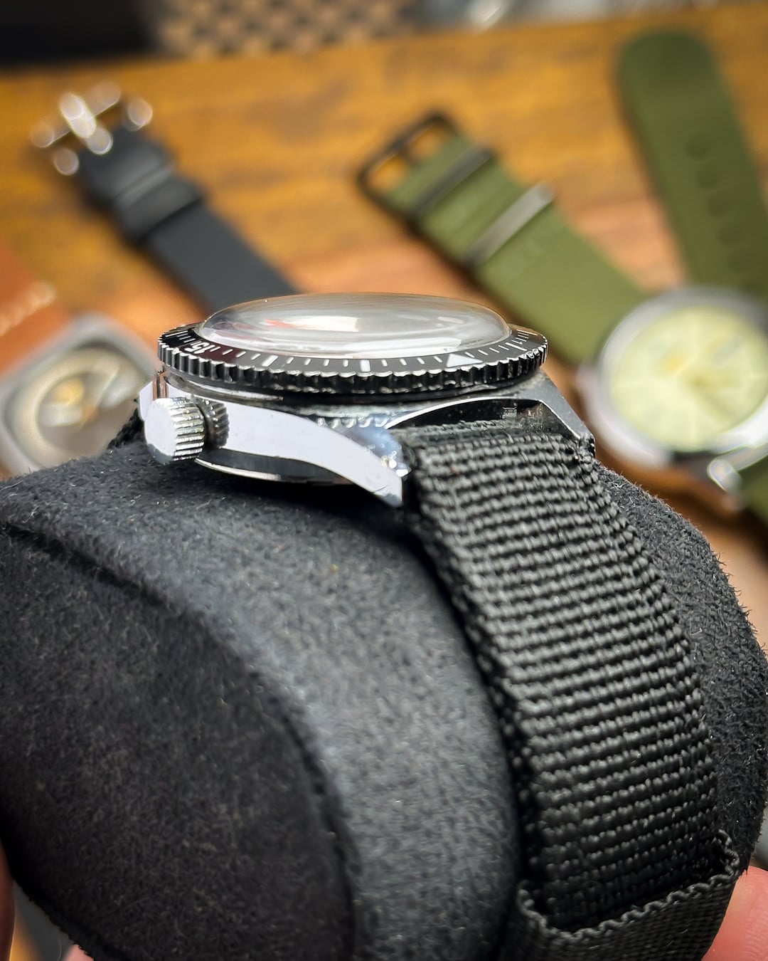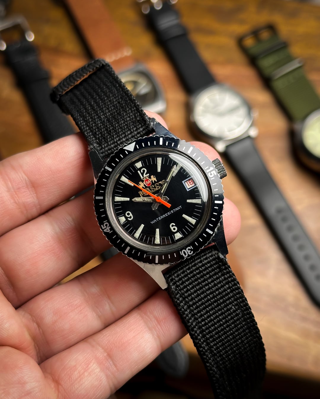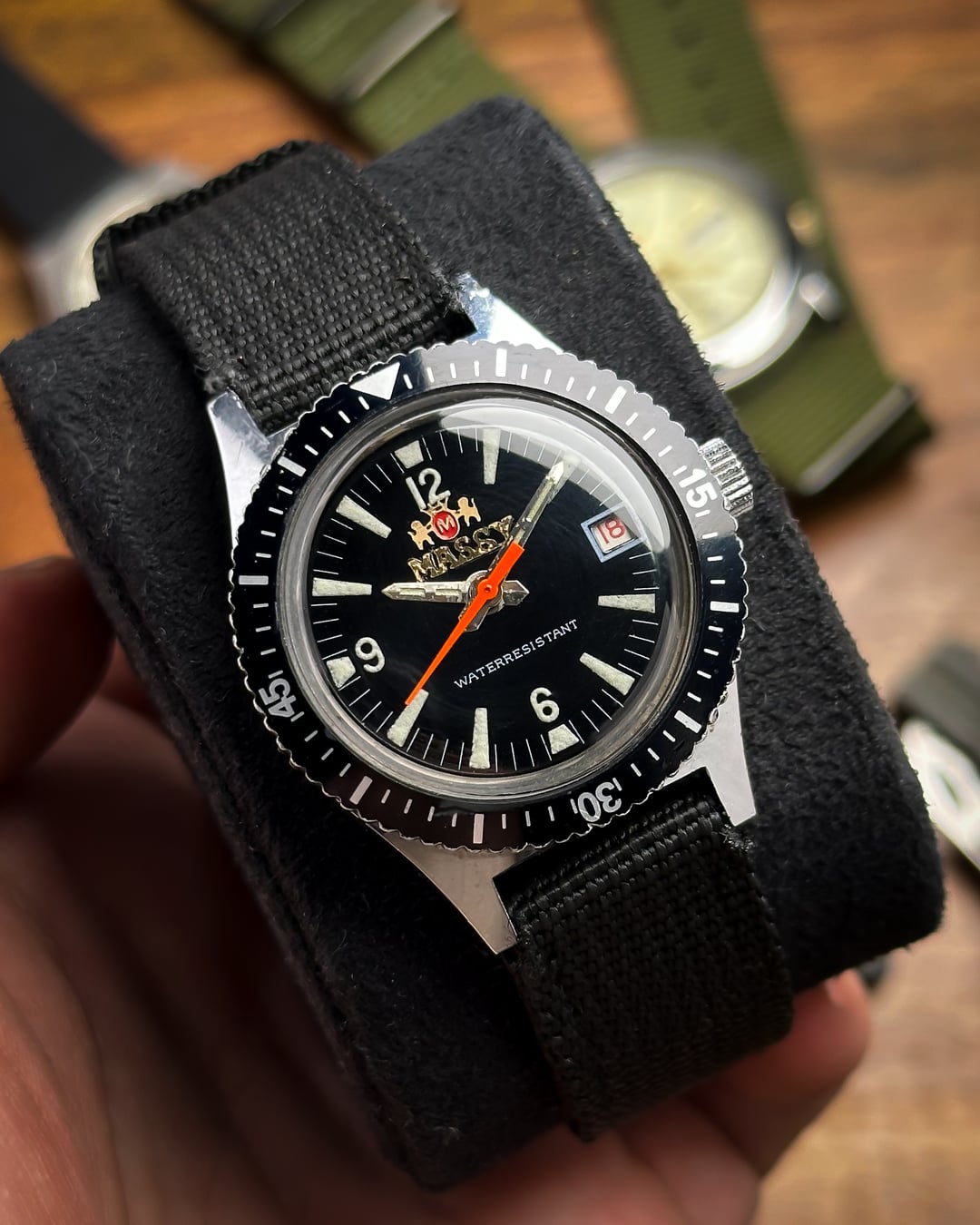 [Timestamp](https://postimg.cc/hXzHTtmB) Hey Watchexchange! This is the **Deep Orange Tango**—a nickname we gave this charming, manual-winding Swiss timepiece to celebrate its bold black dial contrasted sharply by the high-visibility orange second hand and red date wheel, a vibrant color combination reminiscent of the Tango. This watch stands out with its classic 1970s **"skin diver" aesthetic**, unidirectional bezel, and reliable movement, making it an excellent and affordable entry into vintage diving watches with real character. As a brand focused on the mass market, **Massy** was one of many smaller Swiss companies during the 60s and 70s that specialized in **inexpensive** but reliable tool watches. Massy often sourced robust mechanical movements to produce fun, distinctive diver styles like this one. While detailed historical records are sparse, this watch represents a great piece of affordable vintage Swiss watchmaking that retains the bold style of the era. Up front, the dial is the star: a deep, **flat black color** that is reflective yet incredibly legible. The dial features crisp **lume indices** and bold Arabic numerals at 12, 6, and 9, giving it a classic military look. The lumed hands are highly visible. The highlight is the **bright orange second hand**, which delivers the perfect visual **"pop"** against the dark dial. (Note: The second hand is non-luminous; in lume shot, it may appear to glow, because it's taken under UV light). A functional date window at 3 o'clock displays **red numbers**. The watch features a classic 1970s diver case with a unidirectional rotating bezel that has a clean black insert. As a hand-wound mechanical watch, it has a beautiful, audible ticking sound. It’s paired with a durable black two-piece NATO-style strap that complements the bezel and dial perfectly, ready for everyday wear. # 🔹 Dimensions * **Case Diameter: 34mm** (without crown) * **Lug-to-Lug: 43mm** * **Thickness: 11mm** * **Lug Width: 16mm** 💵 **Price: $135 shipped** 🚢 **Shipping: UPS (Worldwide)** 📦 **Payment: PayPal F&F** or G&S (**+4.5% fee by buyer**) or **bank wire** (US banks accepted) 📩 DM me for more pics or a custom timestamp. If you’re after a bold, authentically 70s Swiss mechanical diverwith a great ticking sound and that signature orange pop, this Massy delivers beautifully. Follow my Instagram **(link in bio)** and Reddit profile for more vintage drops and upcoming listings.