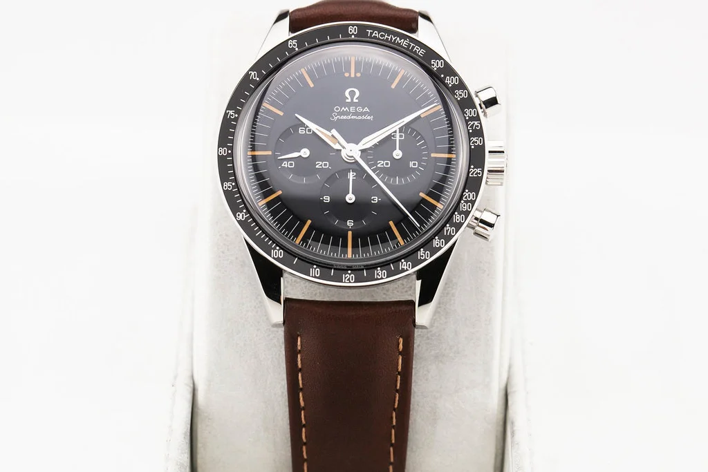 Up for sale is a brand new Omega Speedmaster 3861 Anniversary Series 39.7mm First Omega in Space ( FOIS ) on Brown Leather Strap, reference # 310.32.40.50.06.002. It comes complete with all boxes, papers, booklets, hang tag, and Omega Warranty Card dated September 2025.