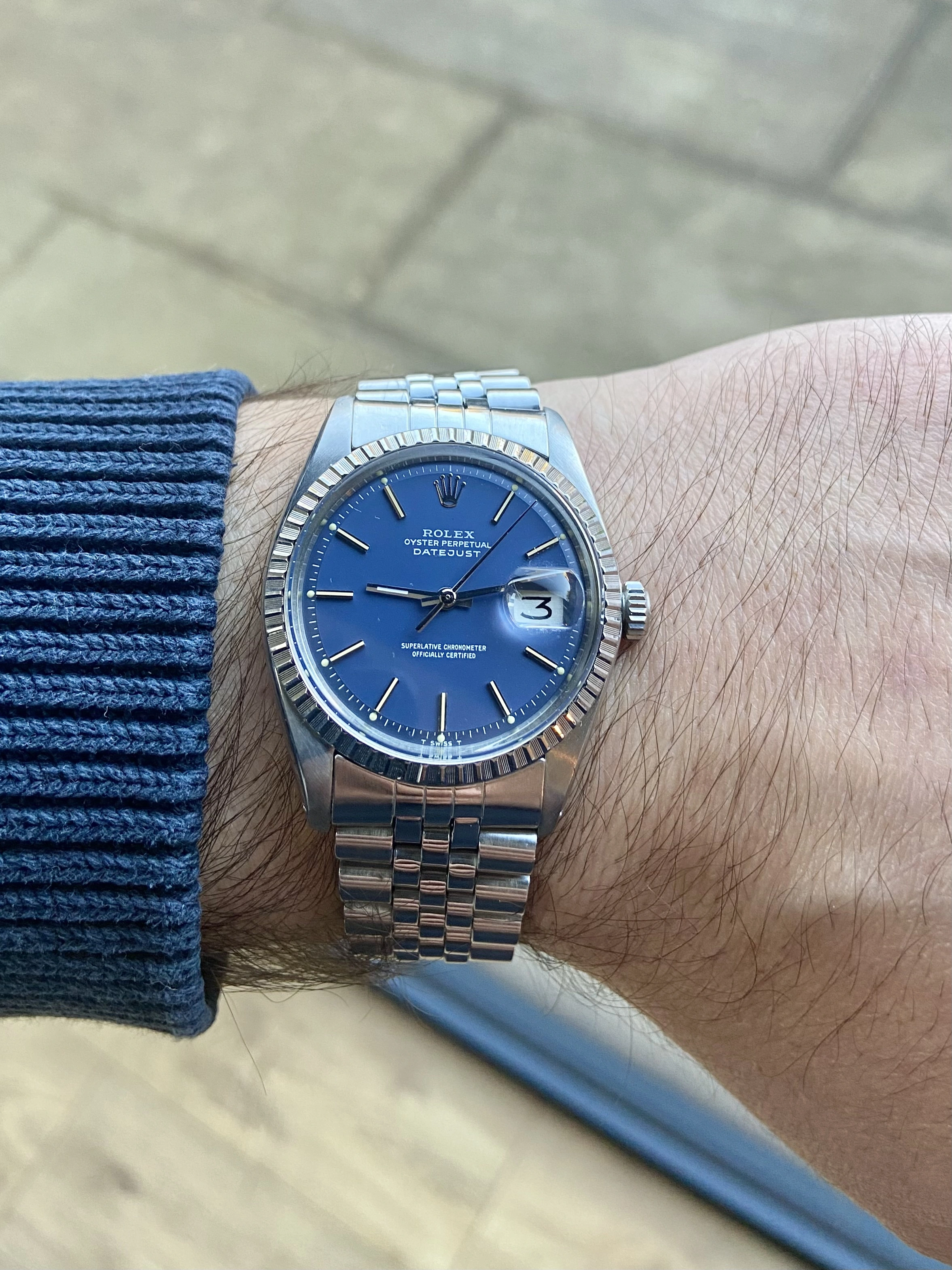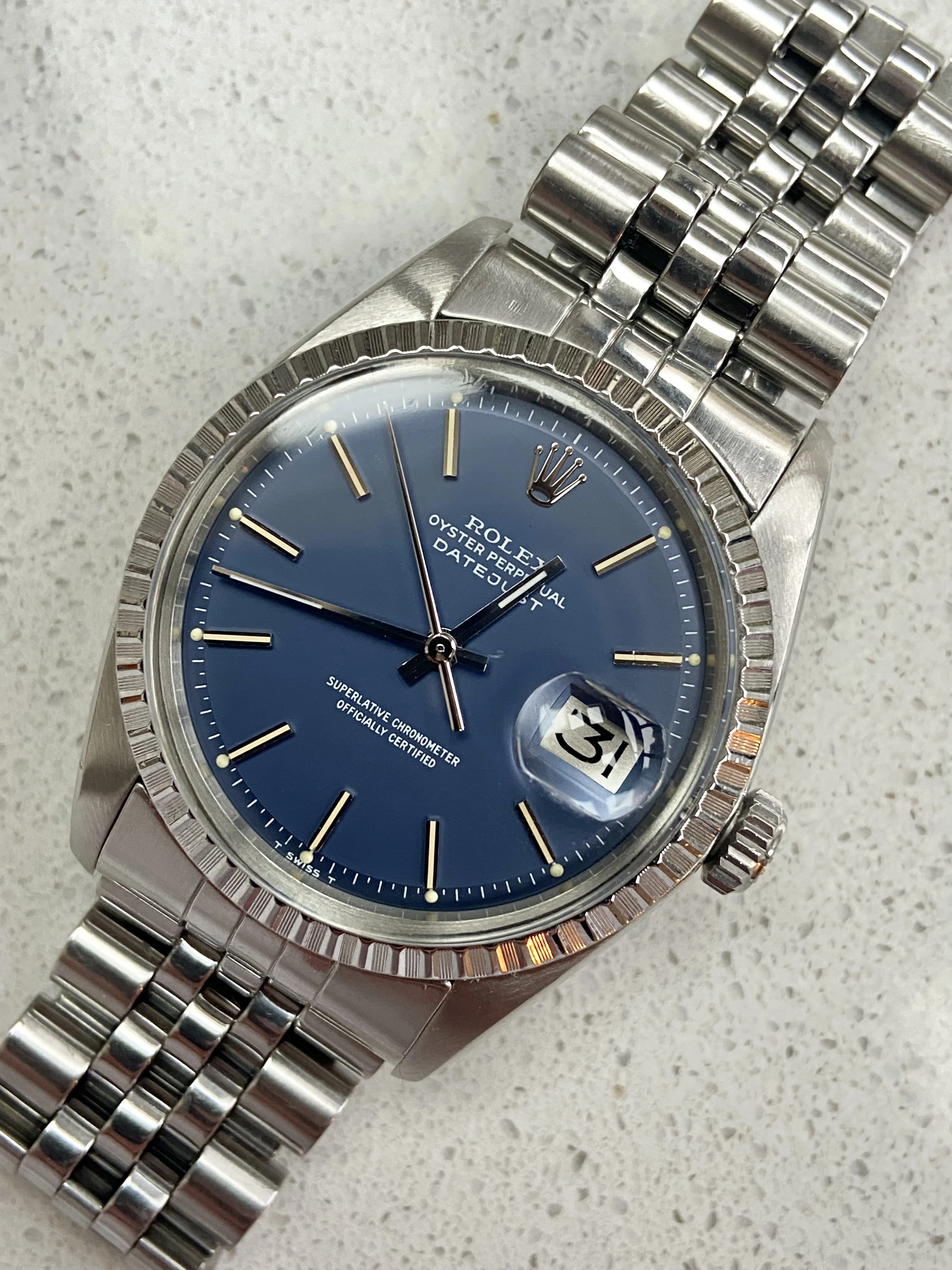 Vintage Rolex DateJust 1603 with Blue Dial and 62510H Jubilee Bracelet. Rolex Service History