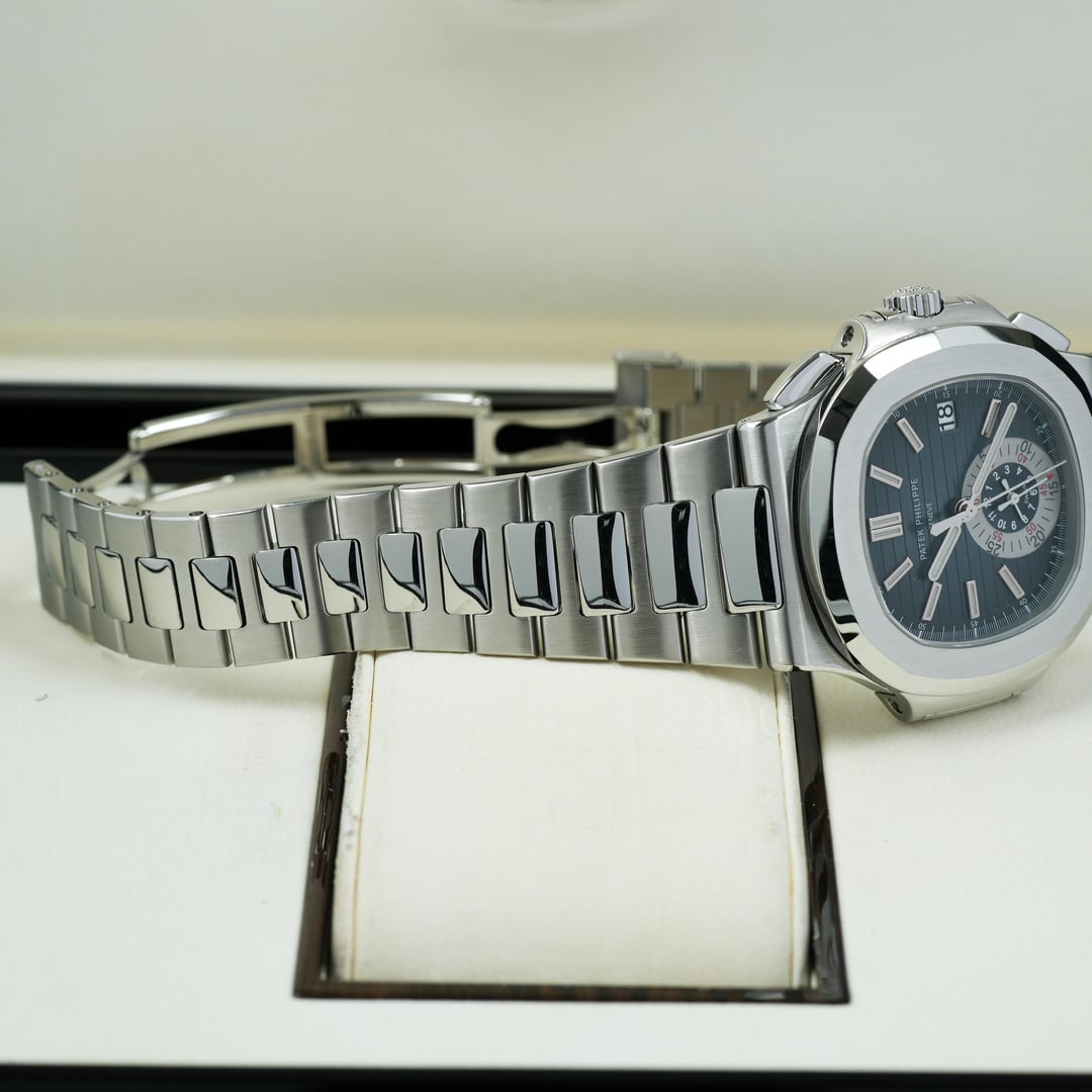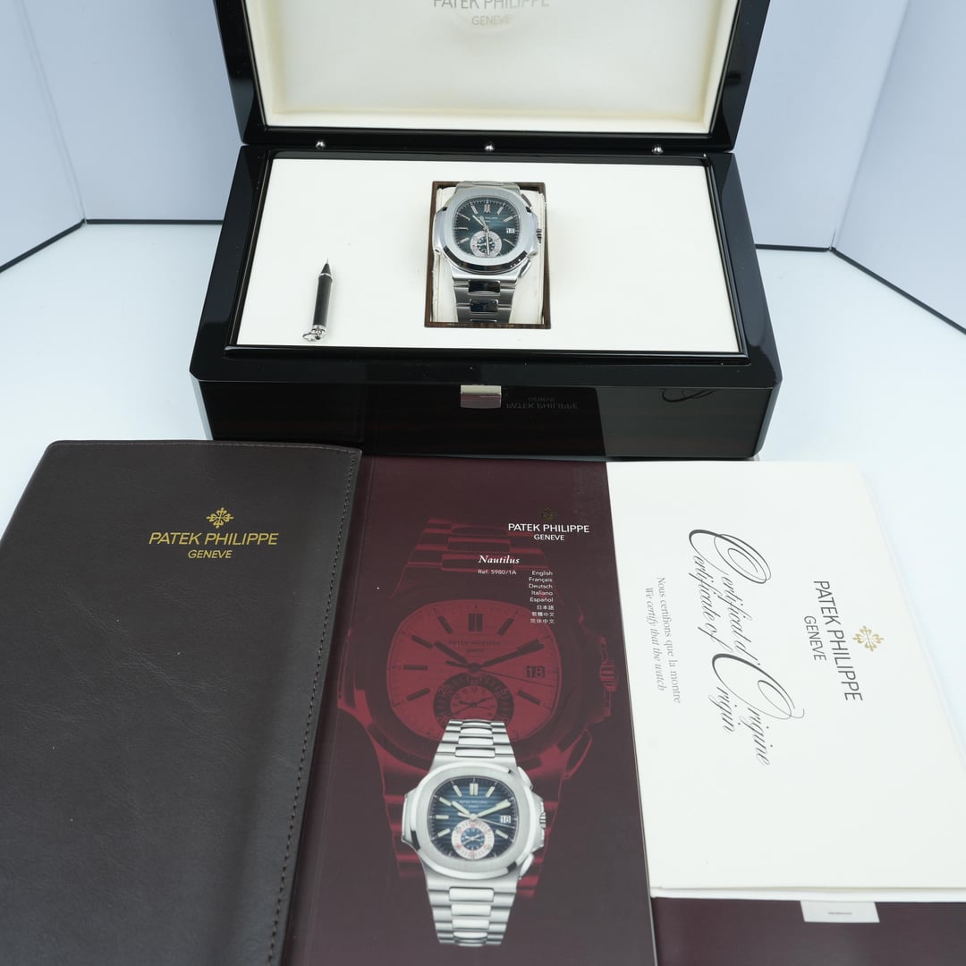 2008 Patek Philippe Nautilus 5980/1A-001 Blue Complete Set Timestamp: [https://imgur.com/warkTEL](https://imgur.com/warkTEL) The Patek Philippe Nautilus 5980/1A-001 is a modern icon that perfectly blends sportiness and sophistication. Crafted entirely from stainless steel, its 40.5mm Gerald Genta–designed porthole case features a refined mix of brushed and polished surfaces. The gradient blue dial adds depth and elegance, highlighted by applied white gold markers and a single sub-dial that unites both 60-minute and 12-hour chronograph counters. Powered by the self-winding Caliber CH 28-520 C, a column-wheel chronograph with a vertical clutch, it offers smooth precision and reliability. A sapphire caseback reveals Patek Philippe’s meticulous finishing, while the integrated steel bracelet with a folding clasp ensures both comfort and balance—making this Nautilus a true everyday masterpiece and a collector’s favorite. Watch comes as a Complete set, Inner/Outer Box, Certificate of Origin, Booklets, Pusher This timepiece is overall in excellent condition. Please look over my pictures closely as I like to properly represent the watch you will be receiving. **Offered at $112,999 shipped in US or OBO.** Payments accepted: Wire or Direct Bank Transfer (Bank of America). Shipping is always FedEx/UPS overnight, fully insured. I am an avid enthusiast and collector and am not affiliated with any watch brand I post. **Always open to trades or purchases! Looking for Audemars Piguet, Rolex, Patek Philippe, FP Journe, Vacheron Constantin, and other luxury brands.** I guarantee every watch I sell to be 100% authentic. Follow me on IG: JJ\_Timepiece\_Co Call or text (941) 800-3931