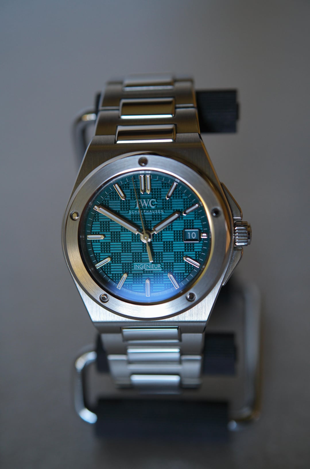 Hey All, Selling my beautiful IWC Ingenieur with the aqua dial, reference IW328903. I absolutely love the color and texture of this piece and think this will be a future grail for many. It just sits in my drawer however as I never really wear nice timepieces anymore. Figured I'd pass it along to someone else who will get some use out of it. Registered in September of 2024 with a warranty good until September 3, 2032. Comes with the original box, papers, warranty card, etc. I'd give it a 9 in condition as with any piece with polished steel piece, there are some hairline scratches on the middle links. The crown and glass are flawless otherwise. Selling for $9,400 net to me. I can give a little discount if you're local to the California bay Area. Feel free to reach out with questions! Not accepting watch trades currently, as I'm downsizing.