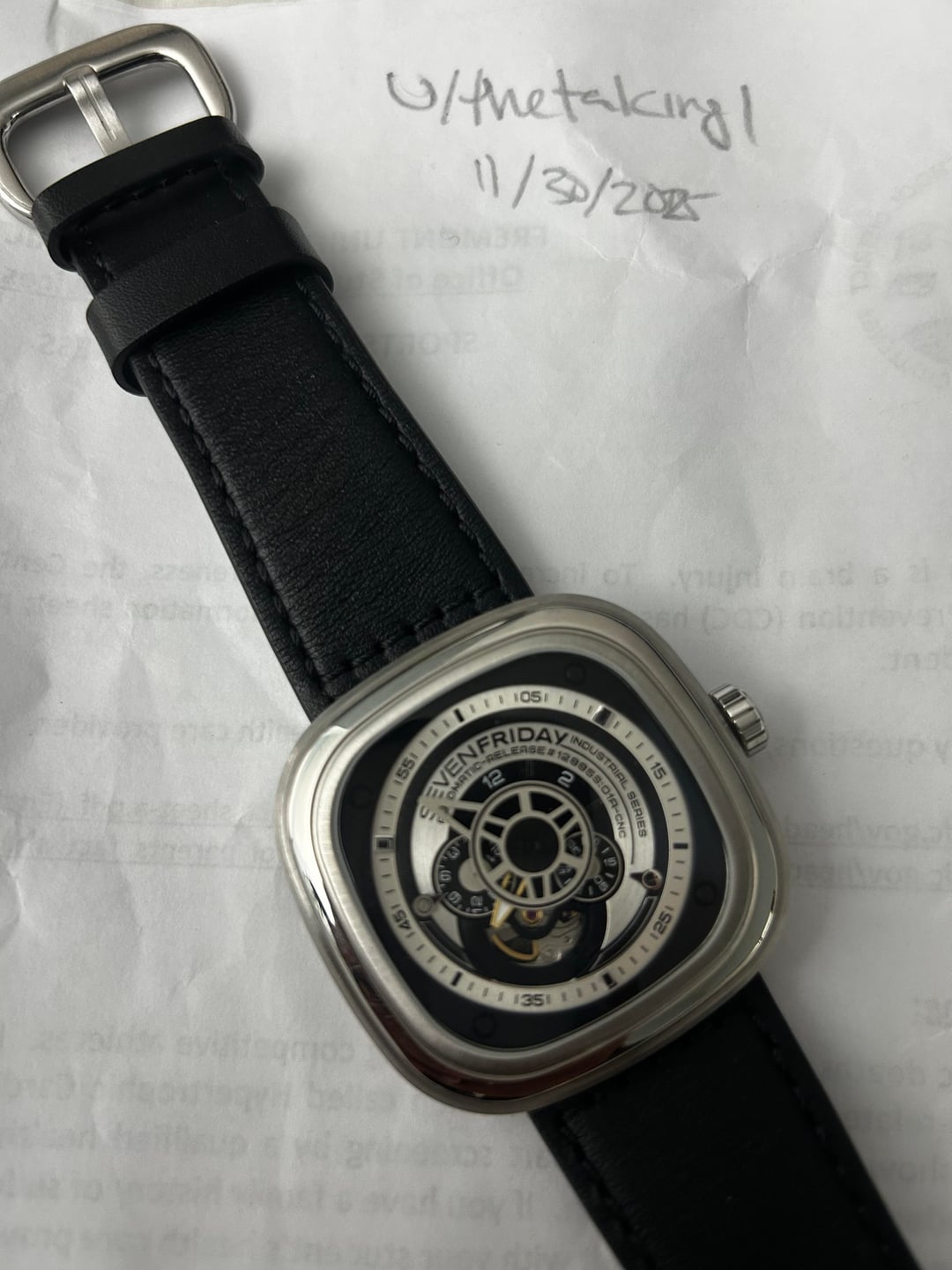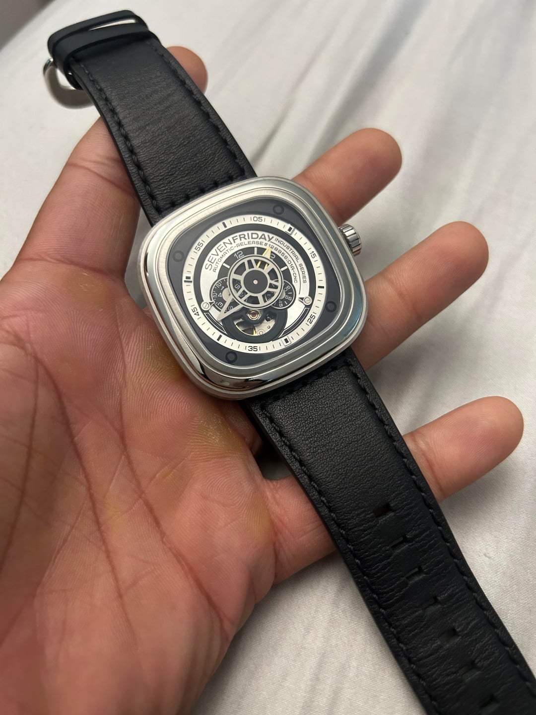 Letting go of this super fun SevenFriday P1B—the watch that kicked off the whole industrial-design craze. If you know SevenFriday, you already know the vibe: bold, mechanical, and way more interesting on the wrist than anything else at this price point. Condition is solid and it runs great. The multi-layer dial gives you that signature depth and “machine room” look, and it wears surprisingly comfortably despite the big-boy presence. If you want something that actually stands out in a sea of safe, boring watches… this is it. $325 + label costs takes it. Trade value $400 if you’ve got something cool—open to interesting offers but not the usual filler stuff. No drama, no nonsense. Let’s get this one moving.