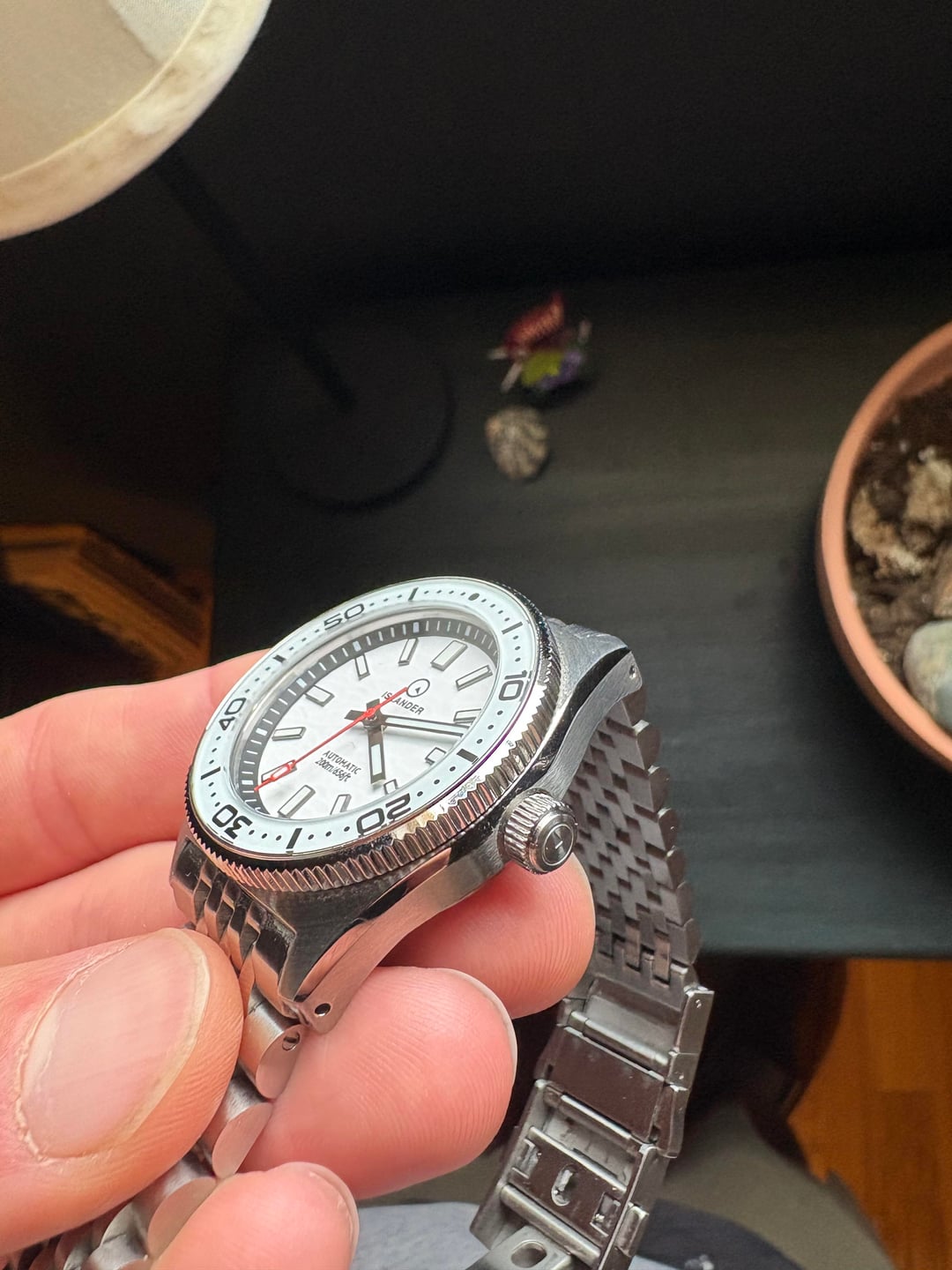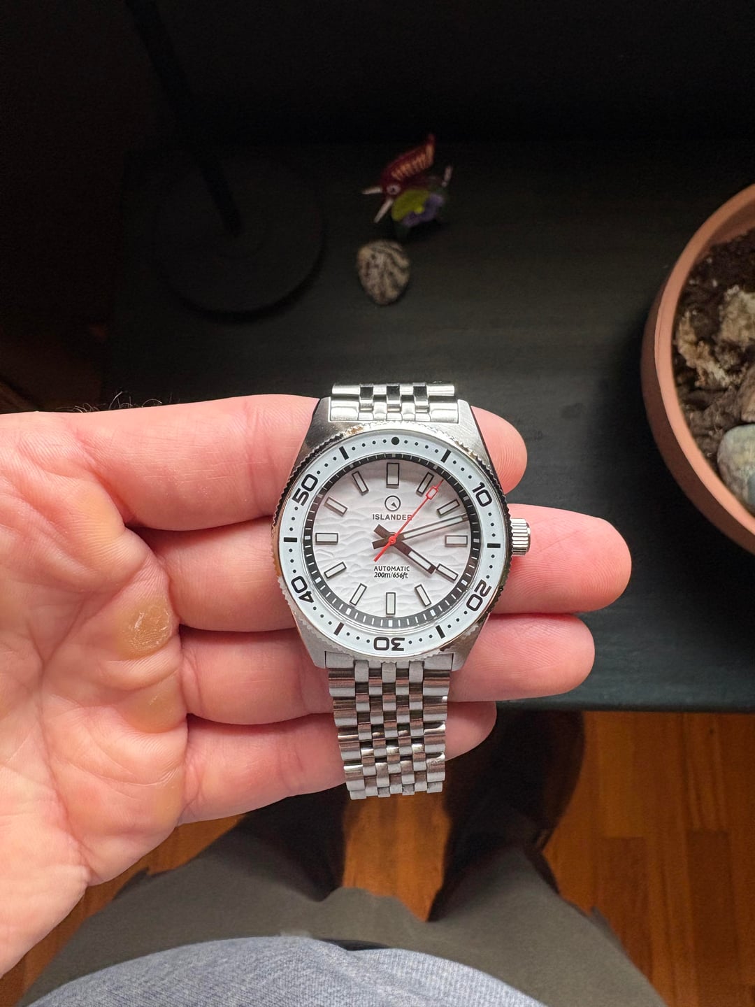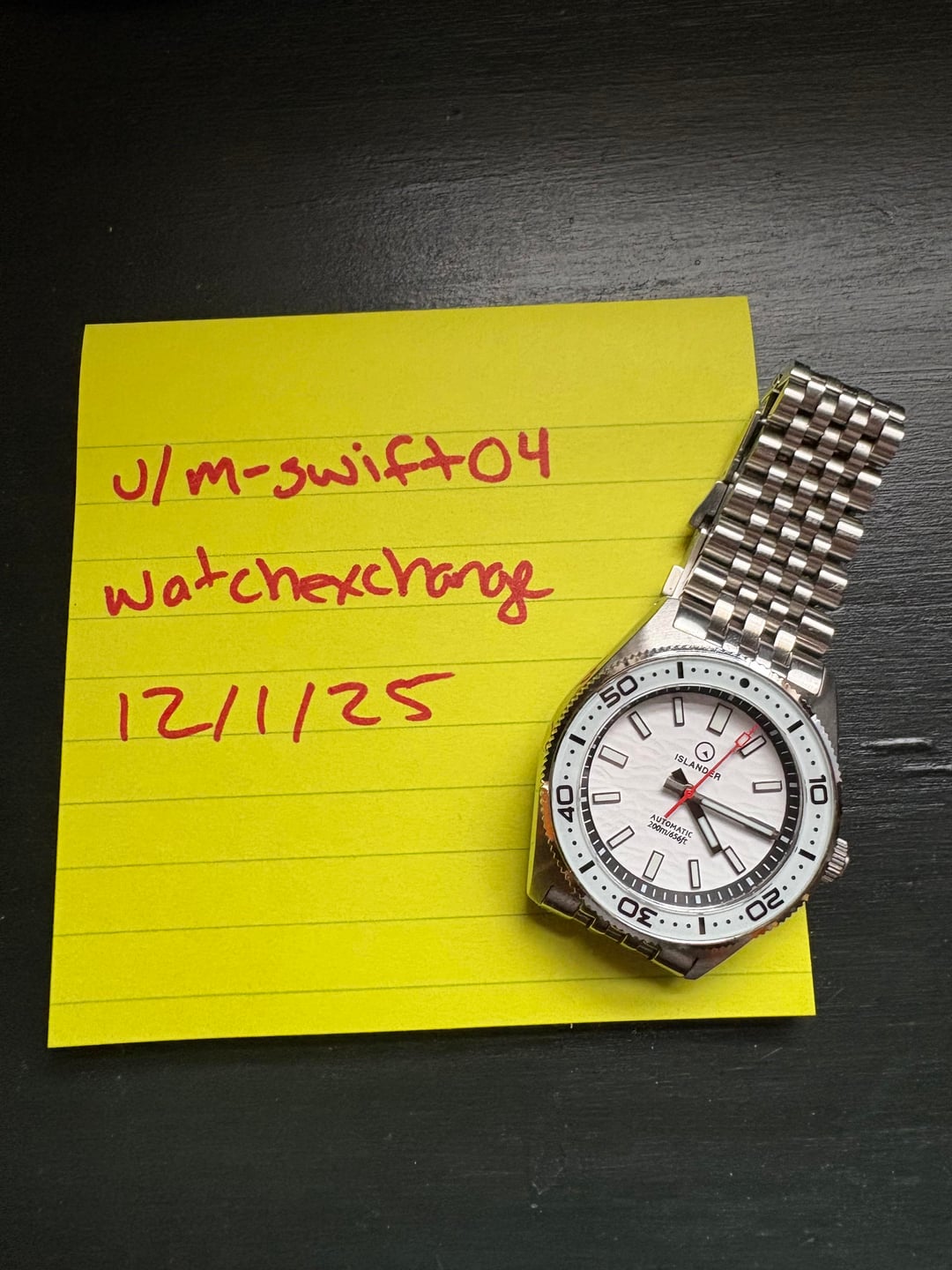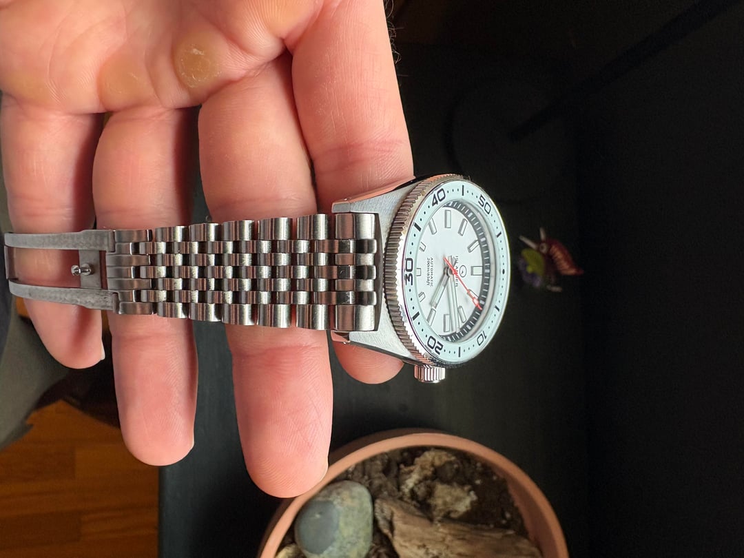Timestamp in first image. Hey all, selling my 37mm Islander Northport in white. It's still in great condition, I don’t notice any damage to the crystal, bezel, and the lume is great. The bracelet is definitely scratched up, really only noticed on the clasp, which has micro adjust. Asking 275 shipped CONUS. Venmo preferred. Original box, and all original links are included. Let me know if you’d like any additional pictures or have any questions. Thanks for looking!