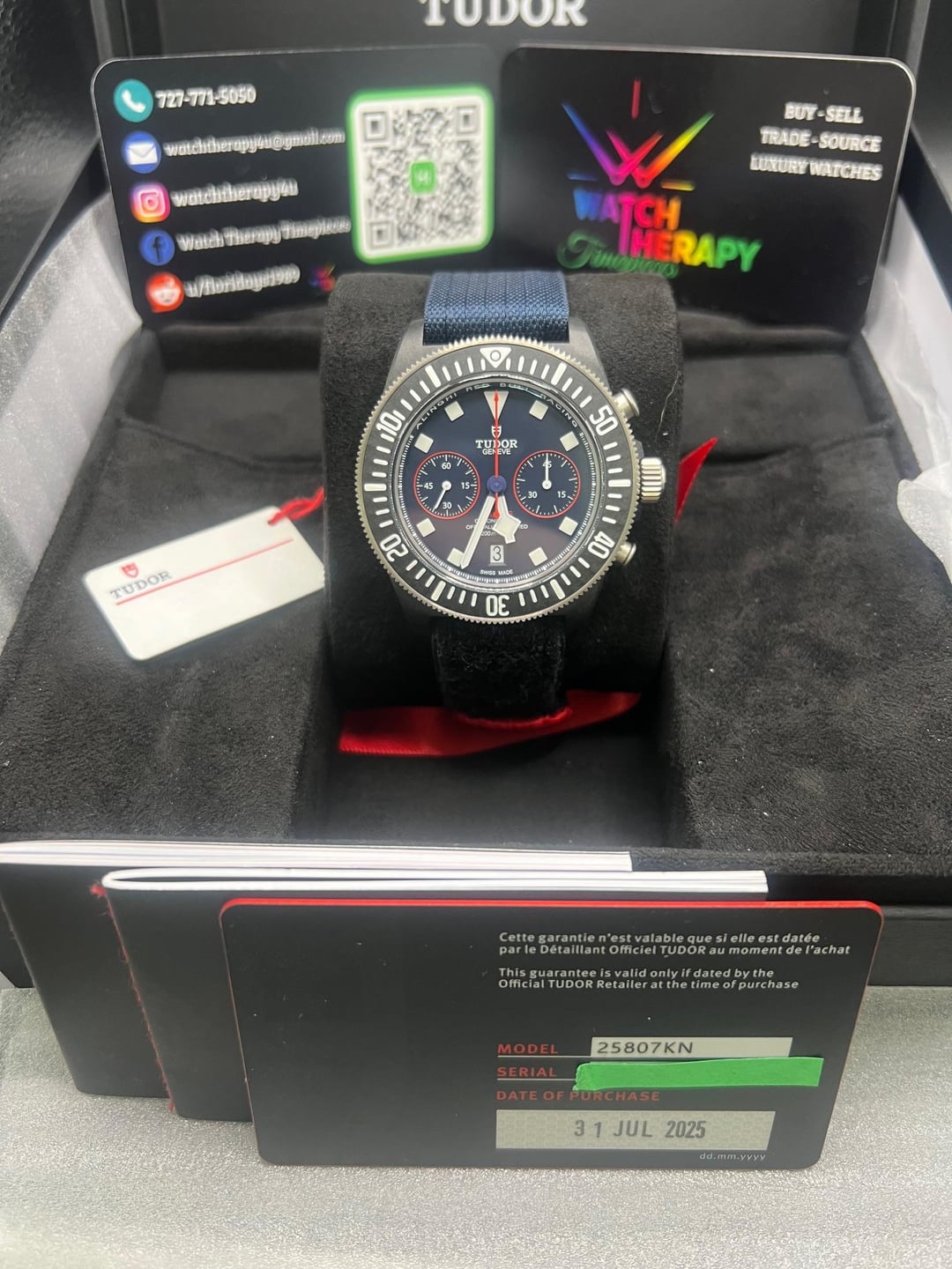 **F/S: Tudor Pelagos FXD Alinghi Red Bull Racing Edition Chrono 7/25 Ref. 25807KN** **Holiday Special \*\*$3,399.00\*\* Firm! Shipping from Florida.** **Specs:** \* Beautiful blue matte/w red accents sub dials \* Automatic self-winding \* 43mm carbon case w/titanium bezel and black carbon insert \* Blue fabric strap \* 200M Water Resistance \* 70-hour power reserve \* MT5602 (COSC) movement **Includes**: Warranty card 7/25, double boxed, booklets, tag. **Condition:** 10/10 BNIB **Price: $3,399.00 + Insured shipping to your local FedEx for pick-up in Con US**. I am also open to a face-to-face public transaction in or around the Tampa Florida Region, within reason. I have many strong and viable references within Reddit and from Buy/Sell/Trade Watch Facebook groups. Always willing to jump on a call or meeting link to show you the watch. Thank you and please reach out if you have any questions or concerns. Florida residents may be subject to sales tax w/o a valid reseller cert. ***No Trades, TY*** **Location**: Tampa Florida **Payment:** Zelle or Wire Timestamp: [https://imgur.com/a/GpPOO1j](https://imgur.com/a/GpPOO1j) FB: Watch Therapy Timepieces IG: [@watchtherapy4u](https://www.reddit.com/u/watchtherapy4u/)