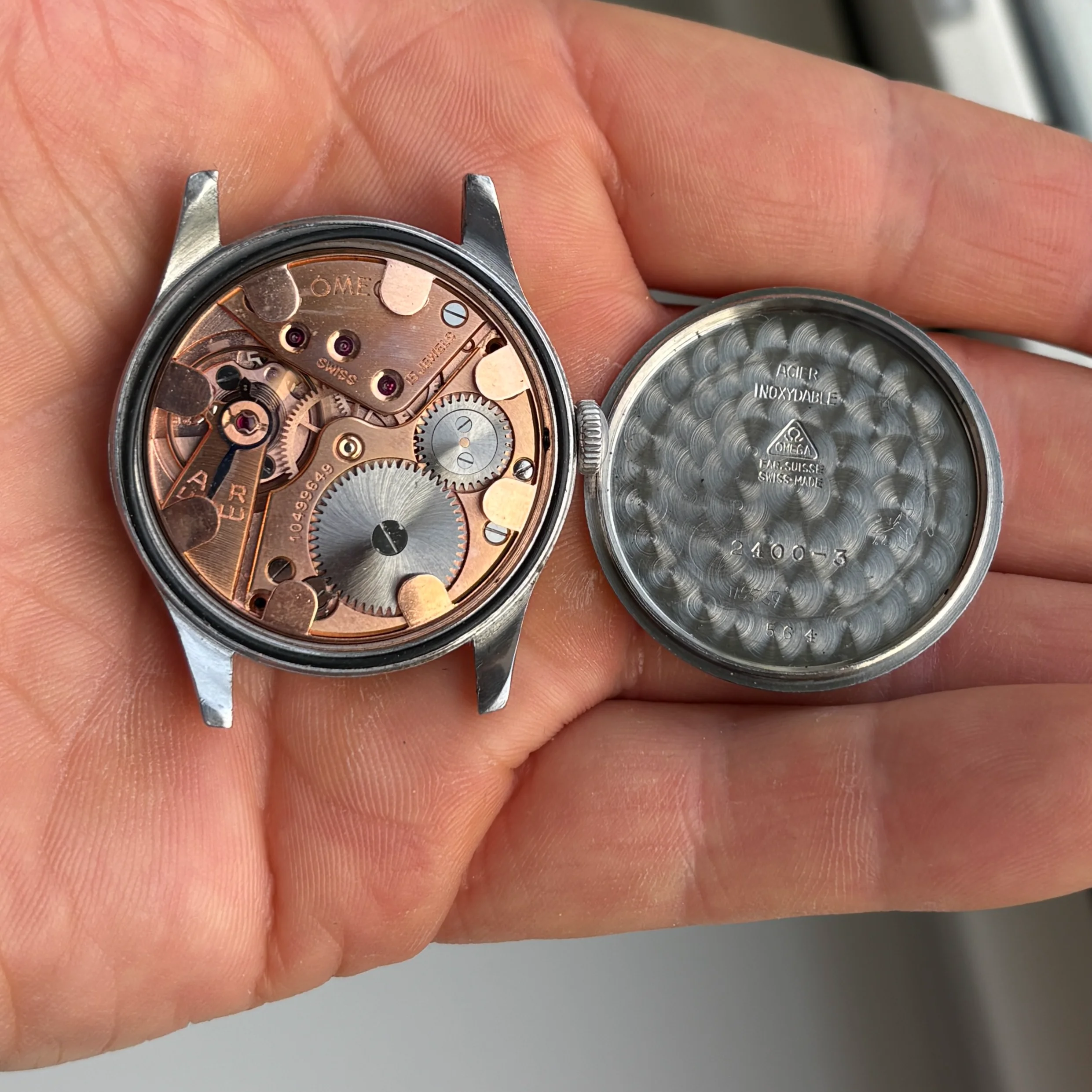 The case had three generations and this is the first generation with no "Suverän" text on the caseback, making it an early example and produced probably 1944.