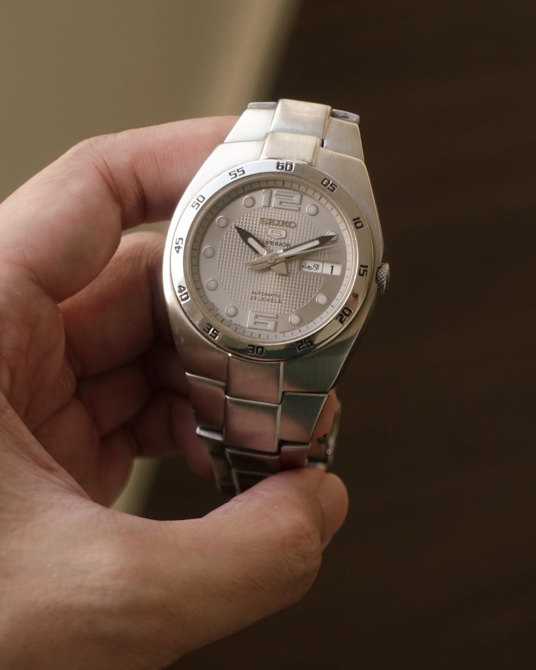 Hello WatchEx! Up for sale is this rare Seiko 5 Superior. This comes with a silver waffle dial with luminous indices. The watch is in great condition for its age. The dial is in great condition. The lume on the indices are still very strong. The case and bracelet are unpolished. It has an exhibition case back which showcases the 7S36 automatic movement. The daywheel is a bilingual English/Arabic one. It comes with the oem Seiko integrated bracelet which fits up to a 7” wrist. This piece rarely comes up online. Sold as watch only and will be shipped in a replacement box. Reference: 7S36-01N0 Case: 36mm w/o crown Lug to lug: 40mm Lug width: 19mm Thickness: 10mm Price: USD160 net SHIPPED CONUS Shipped internationally using FedEx. Paypal F&F or G&S (+4.5% International Paypal G&S Fees) Album: [https://imgur.com/a/MWEBgCw](https://imgur.com/a/MWEBgCw) Timestamp: [https://imgur.com/DbI6IuH](https://imgur.com/DbI6IuH) . . **1) Please COMMENT FIRST before sending me a pm or chat.** **2) PayPal F&F is preferred. I will only allow G&S for users with successful transactions here on WatchExchange** **3) I welcome requests for custom timestamp photos.** **4) All watches are sold “AS IS” with no personal warranty. I will only accept returns/refunds for issues that are undeclared on my end.** **5) Feel free to ask me any questions regarding my listings! You can also check my 180+ successful transactions here using the WatchExBot.**