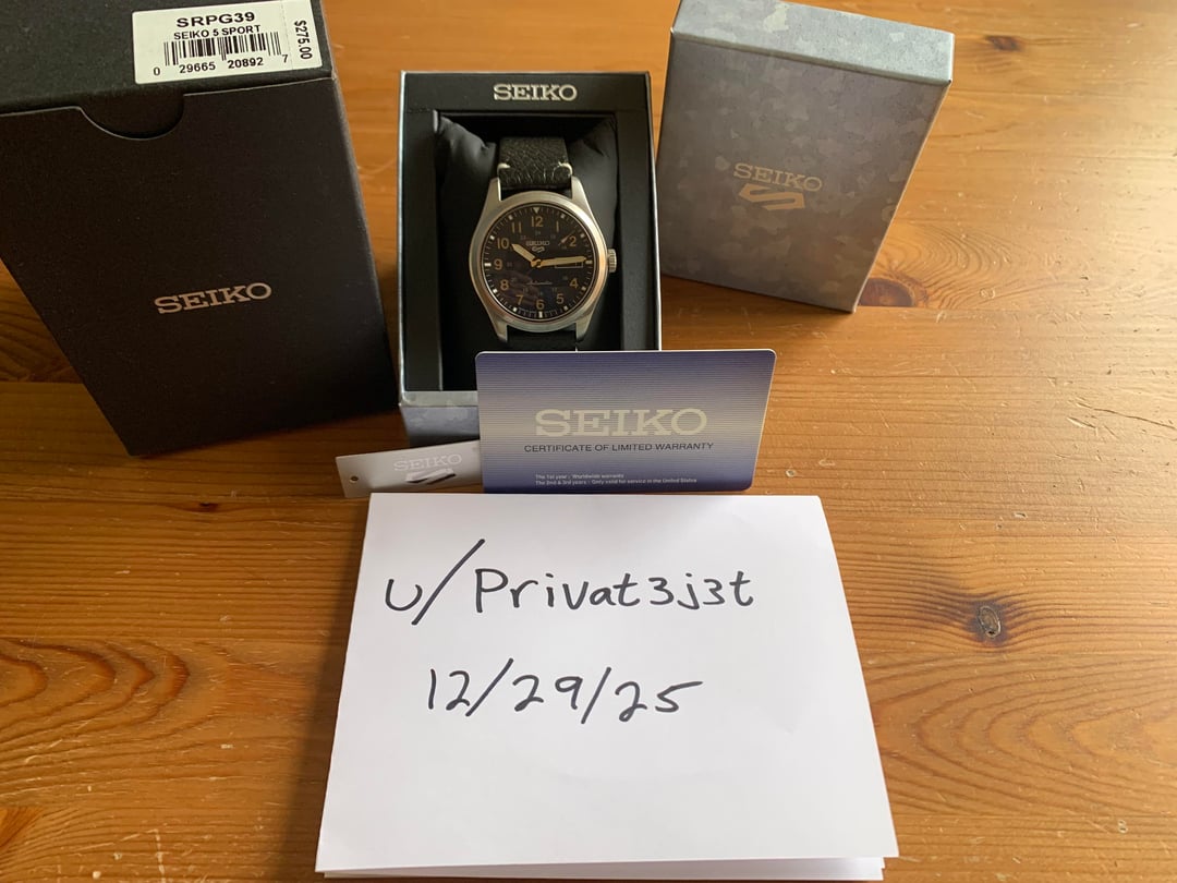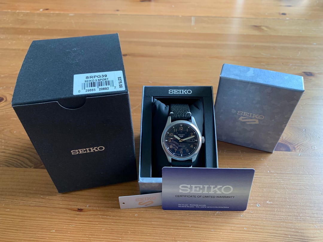 Up for sale is my Seiko SRPG39 watch in excellent condition. Original box, warranty card, and tag are included. Asking $180 shipped in CONUS via PayPal F&F or Venmo. Please reach out with any questions or offers! Case Size: 39mm Lug Width: 20mm Water Resistance: 100M Movement: 4R36 Power Reserve: 41 hours Album and timestamp: https://imgur.com/a/24XkB5r