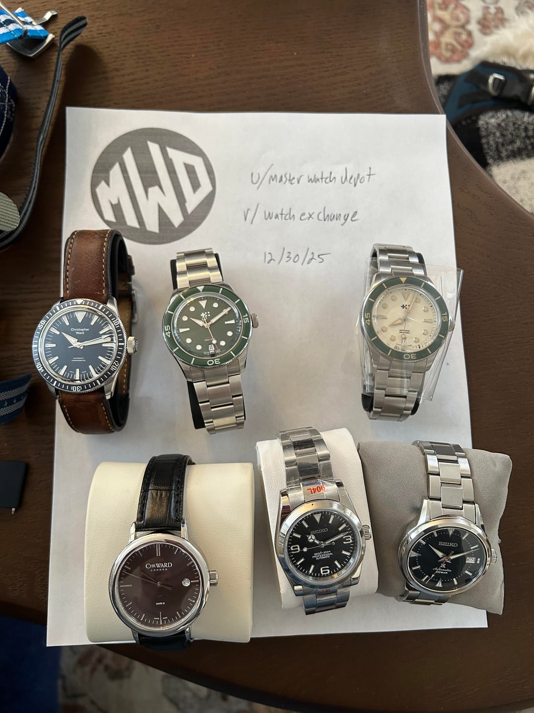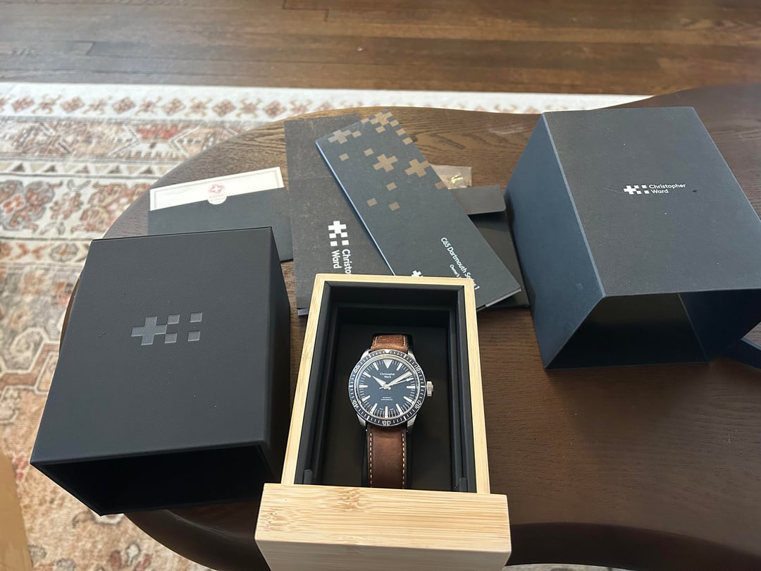 Hi WatchExchange, 🔒 All watches are thoughtfully priced based on current market comps, and firm. 📦 All watches ship same or next business day. 📞 Happy to FaceTime. 🤝 250+ references across multiple platforms — deal in confidence. Christopher Ward C65 Aquitaine – Cream Dial / Green Bezel (41mm) $839 + 🏷️ Good pre-owned condition. Full kit ⸻ Christopher Ward C65 Aquitaine – Green Dial / Green Bezel (41mm) $859 + 🏷️ Pristine condition. Full kit. ⸻ Christopher Ward C5 MK II Malvern Quartz – Charcoal Dial $349 + 🏷️ Very rare model with the charcoal dial. Slim, elegant case with applied indices, sapphire crystal, Swiss quartz movement, and classic Malvern proportions. Full kit. A classy, understated CW collector piece you don’t see often. ⸻ Seiko Alpinist SPB249 (Lake Blue Dial) $379+ 🏷️ Pre-owned, good condition. Includes Seiko box, no papers, all links included. Cheapest available online — MSRP $750, Jomashop ~$670. ⸻ Seiko Explorer Build – NH35 (39mm) $169 + 🏷️New in box (3 available). NH35 automatic movement, sapphire crystal, clear caseback. ⸻ Christopher Ward Series One Dartmouth COSC $739 + 🏷️ Pre-owned condition, priced accordingly. Scratches on the caseback and some bezel wear — all visible in photos and fully reflected in price. Despite this, it wears extremely sharp on the wrist (see picture). A rare bird and collector’s piece from CW’s early tool-watch era. Includes full kit, COSC papers, original CW strap plus multiple additional straps, including the CW anchor clasp (≈$50 value ⸻ Payment: PayPal F&F, Zelle, or Venmo Shipping: Buyer pays label (you choose speed/cost - usually $15) Trades: No Thanks for looking — happy to answer questions or provide additional photos, FaceTime, etc.