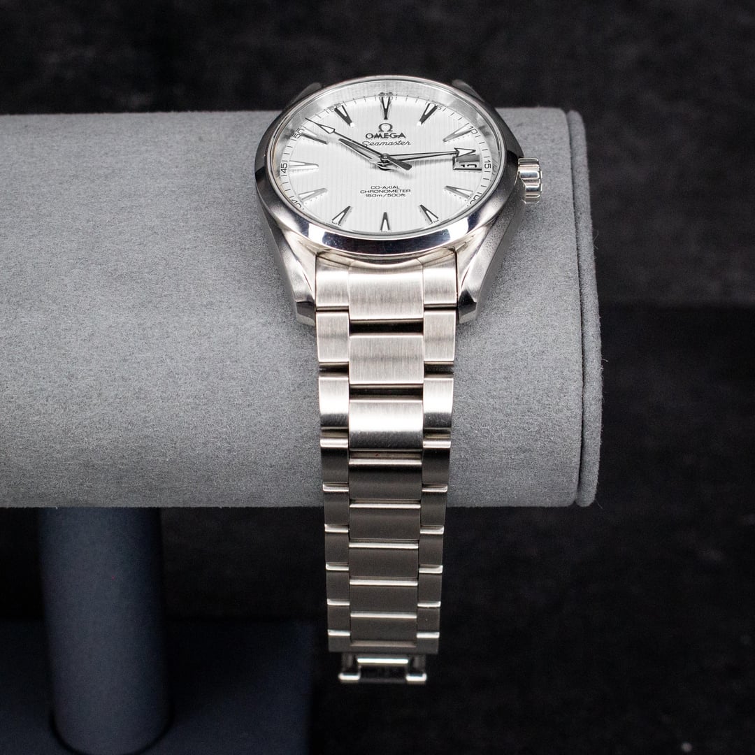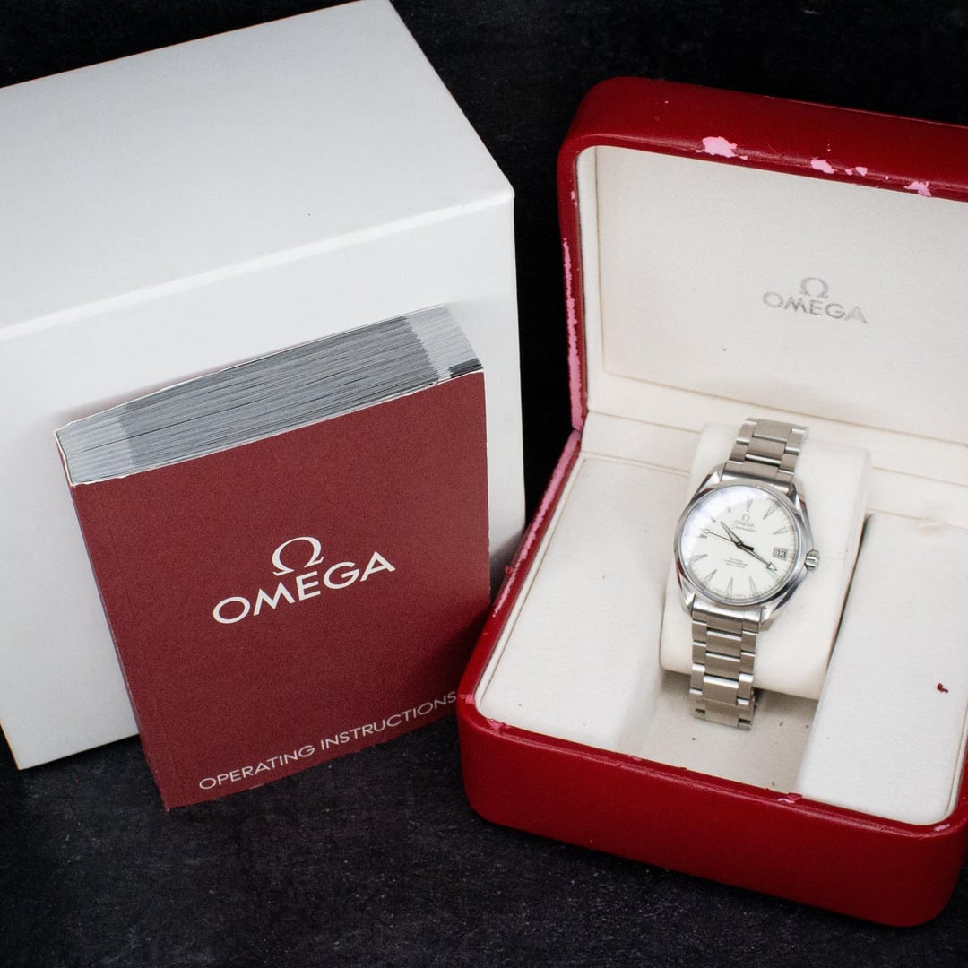 The Omega Seamaster Aqua Terra is a Fan favorite amongst the Seamaster Line! A Sleek and beautiful design, this Omega Seamaster Aqua Terra is 38.5mm in size, the rare more popular size of the Aqua line! 📦double boxed, none of the omega cards are available. ✅Great Condition, Runs Strong no major dents or scratches on the watch or crystal it fits 6 ¾ wrist. 2999 + lbl Firm 🛄Fully insured Shipping to all US States The Oasis Gallery strives to provide excellent customer service, we’ve completed many deals on all platforms. Any New York Resident is subject to paying sales taxes unless you can provide a reseller certificate. Timestamp https://www.dropbox.com/scl/fi/0fcsfdiqrh5q8nf2igvwo/Omega-Aqua-Terra-38.5-White-Dial.jpg?rlkey=h18mvu90kiqkrklhc4eu74f9n&st=ddh16udz&dl=0
