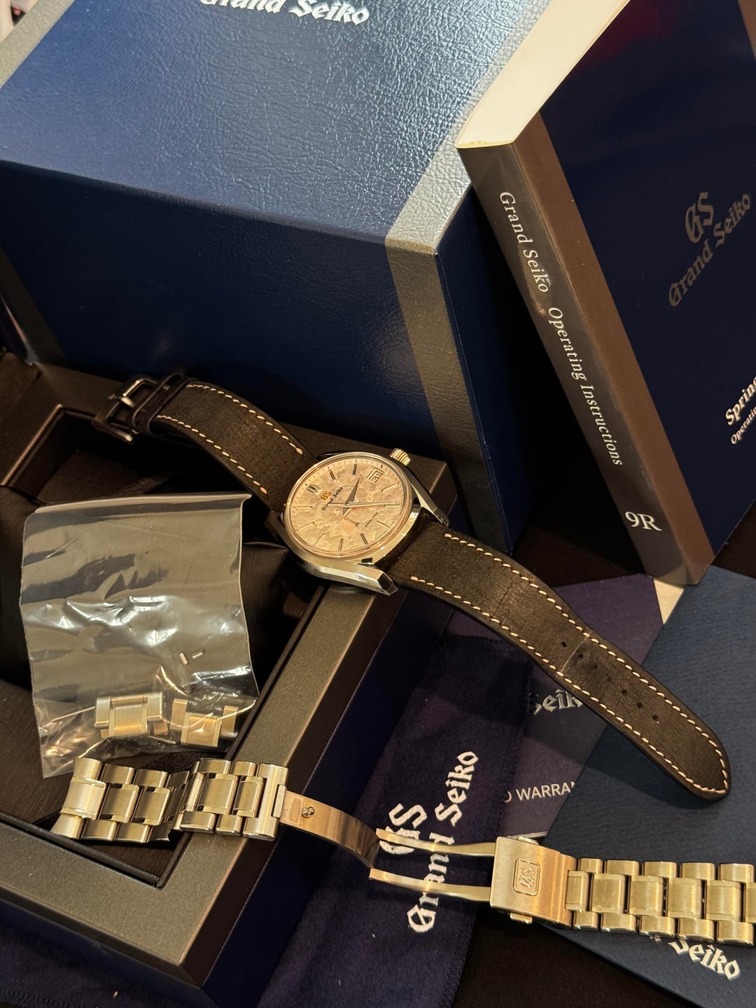 Hello! Listed is the well-known Grand Seiko SBGA413 Shunbun aka Cherry Blossom Spring Drive for sale. Timestamp: https://imgur.com/gallery/qCtZdXx#43vwIL0 Link to photos: https://imgur.com/a/qCtZdXx By now I figure everyone knows about this watch so I’ll just like to Grand Seiko’s website. https://www.grand-seiko.com/us-en/collections/sbga413g This watch was originally purchased in 2020 as you can see on the warranty card. Includes full kit with outer and inner boxes, warranty card, extra links, original titanium bracelet, custom “grey linen with pink stitching” watch bands… everything as pictured. I’m located in Los Angeles and happy to meet up in person or can ship via FedEx with payment via Zelle, or PayPal. Asking $4990 net to me.