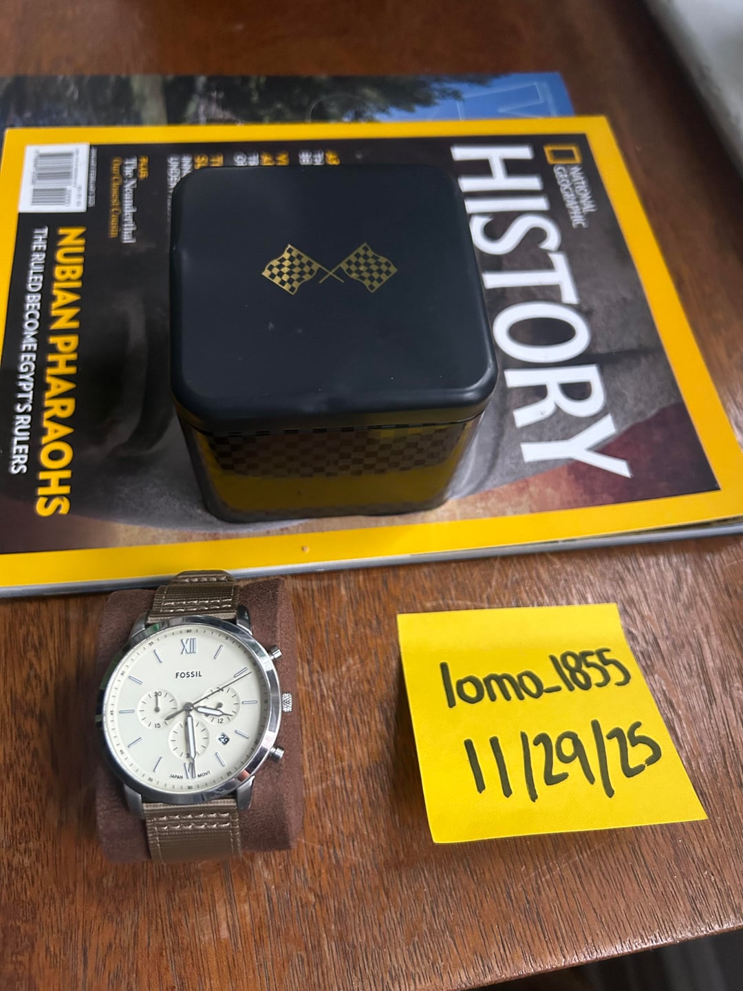Fossil Neutra Chronograph with date window For sale: $85 obo + shipping CONUSA Or pickup in Chicago, Illinois Accept Venmo or Zelle Movement: Quartz Case Size: 44mm Stainless Steel Case with new quick release strap