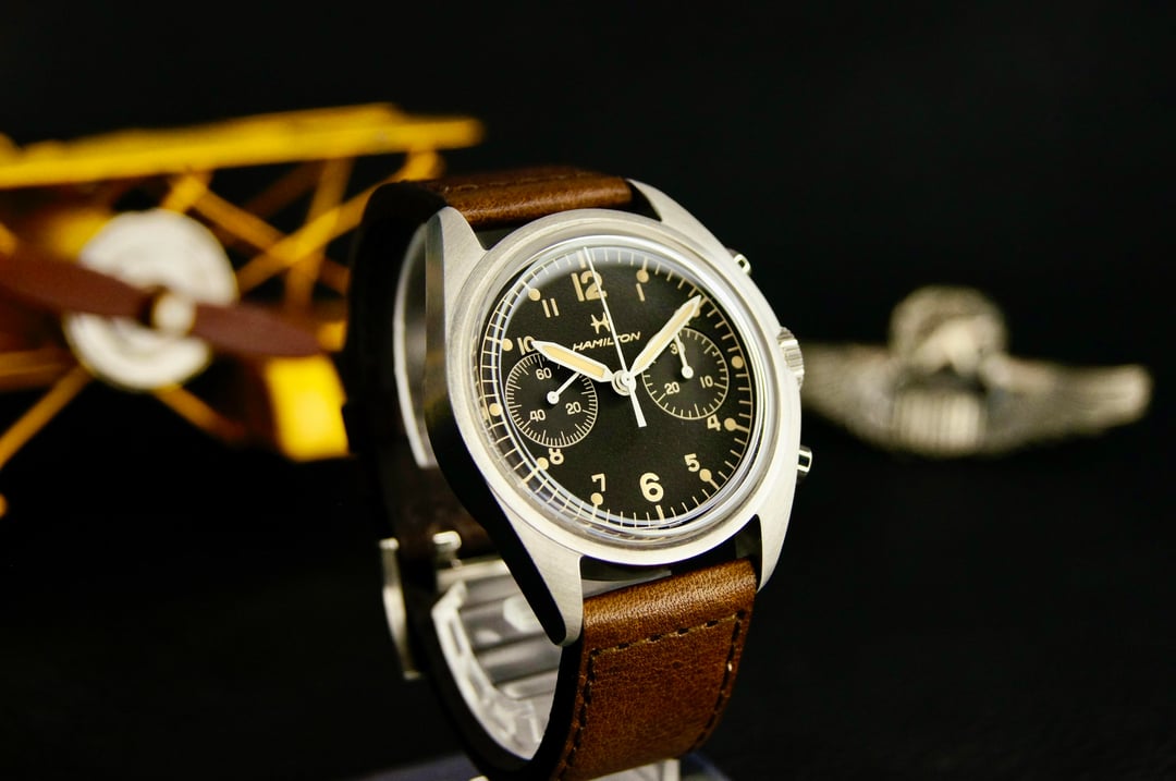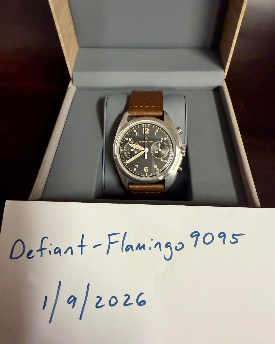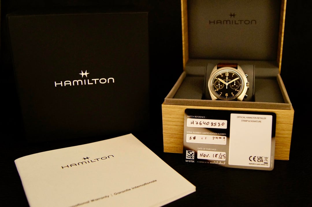 **\[WTS\] HMLTN Khaki Aviation Pilot Pioneer Chrono - NEW** **Brand New, Unworn, Full Set, 40mm, Mechanical, Chronograph, Swiss Made, Swiss Movement, Aviation** **Reference Number: H76409530** **PRICED TO SELL:** * $1995 - Free Shipping * (MSRP $2400) * Full Set: outer box, inner box, warranty card, manuals. * Open Warranty card Dated 11/18/2025 * New In Box, Unworn. Perfect 10/10 condition. **BRADLEY’S TAKE:** Brand New, never worn. 2025 Model Year. This Hamilton Pilot Chrono is gorgeous. This Swiss Made Chrono can’t be beat. Its aviation heritage goes back to the British Spitfire days. It look amazing on the leather strap. The Chrono large second sweep is beautiful. The textured dial with the circular sub-dials contrast nicely. The Lume is bright and vibrant. This watch looks great with your bomber jacket, a suit or just some jeans and a Tee. The hand wind mechanical 60 hour power reserve will keep you engaged and ready to wear for days. Never fear of ditching, this watch has 10 bars of water resistance. With a 2 year warranty active until November 2027 you are ensured service for years. Hamilton has storied American heritage with current Swiss ownership, craftsmanship and service. Hamilton’s extensive work in Hollywood makes it recognizable around the globe. Heritage, Swiss building, and value; this watch has it all.