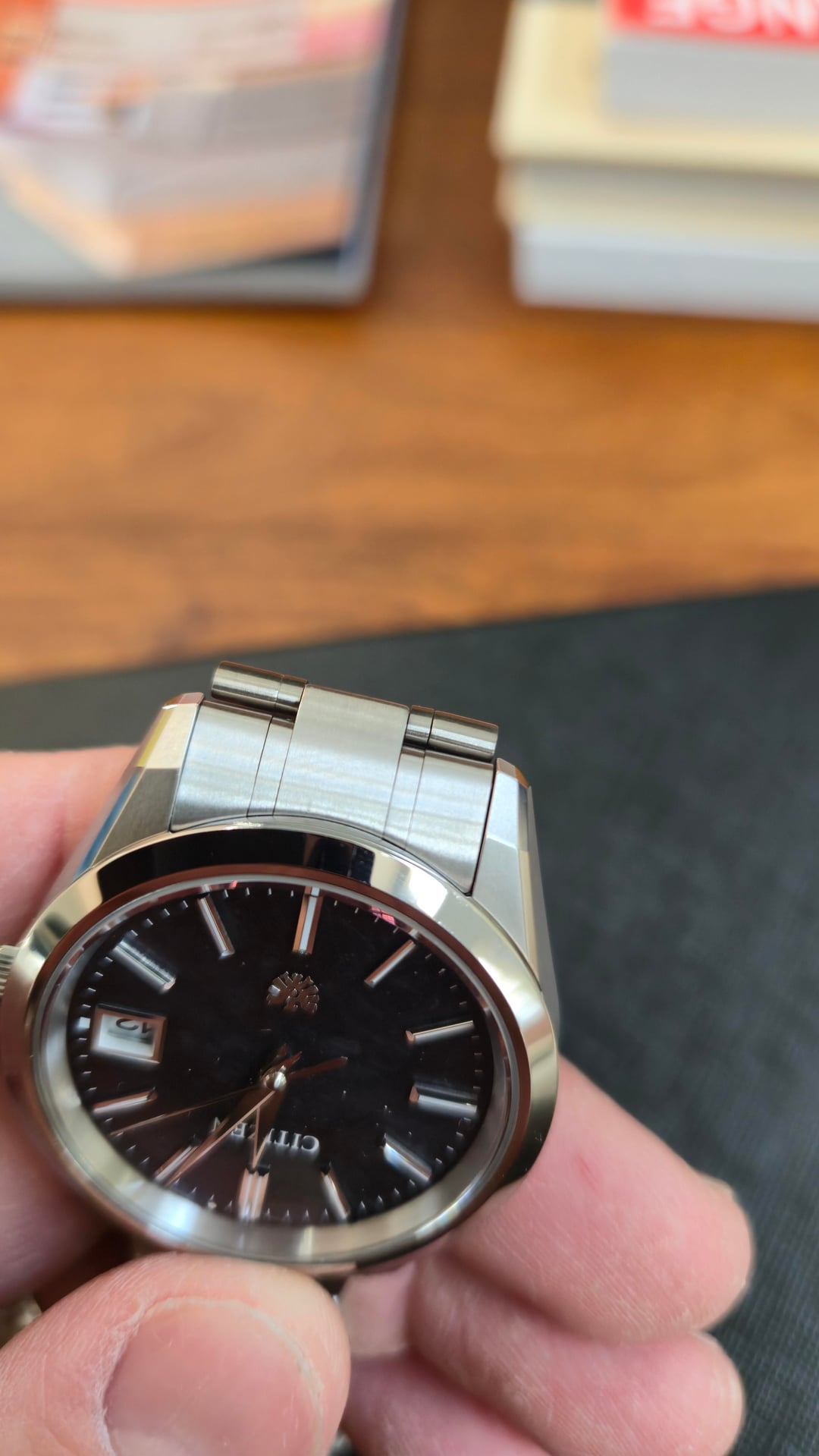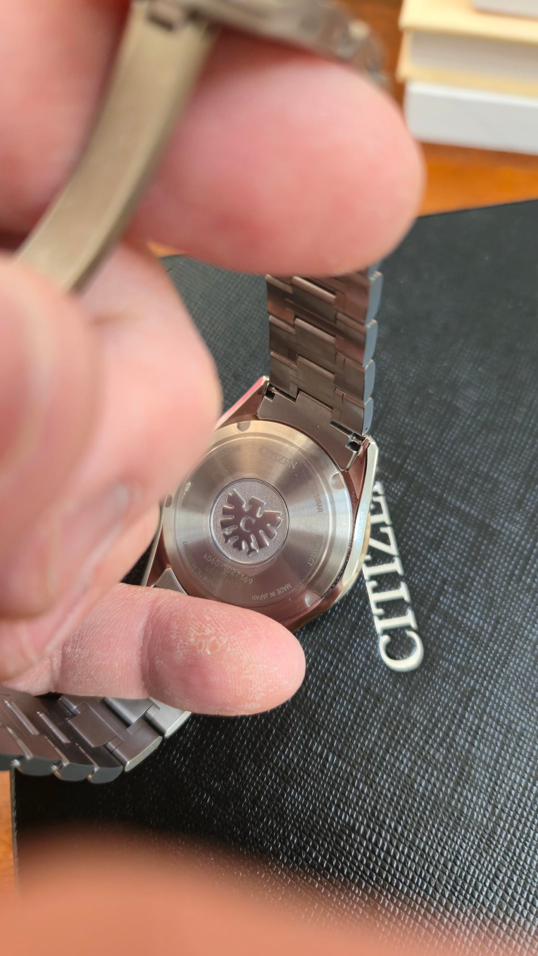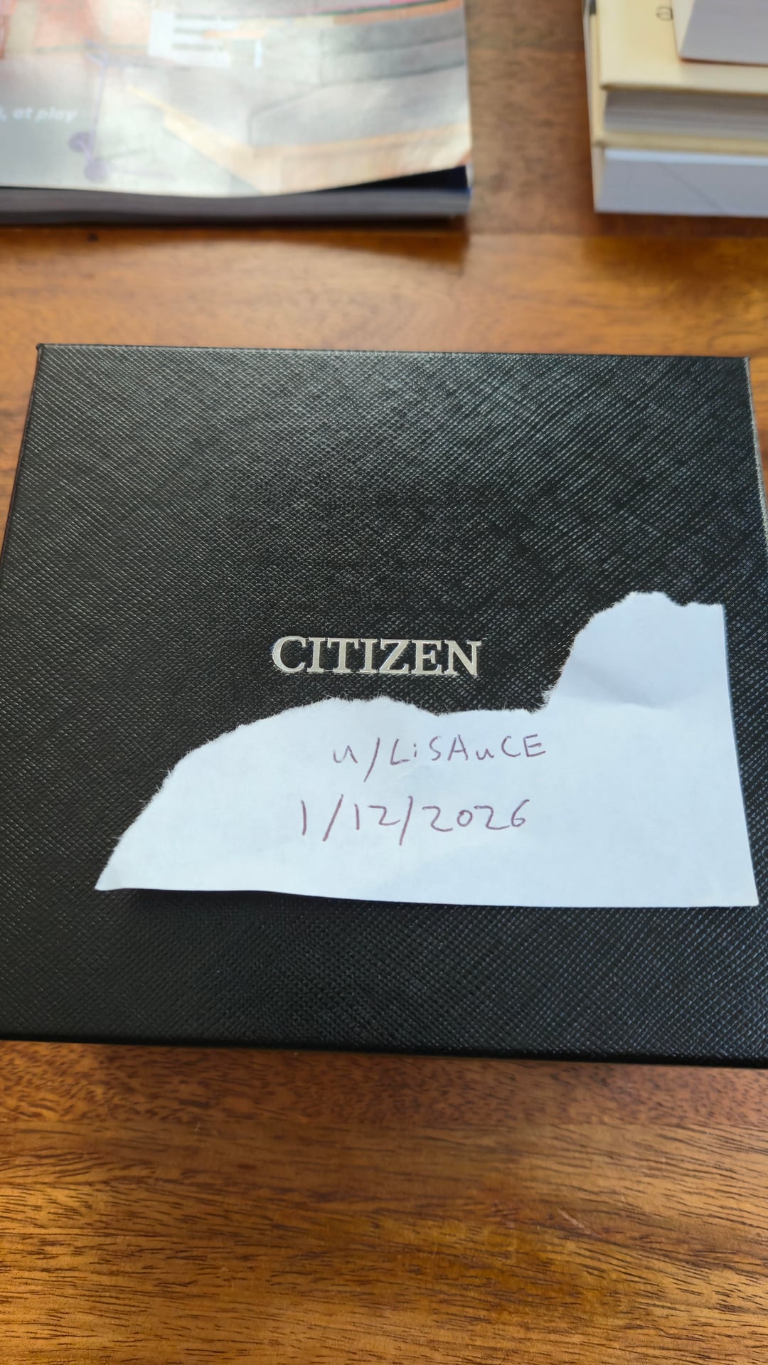 Hello all, newcomer here, I wanted to start off my WatchExchange participation with a listing for sale. Sorry for the repost, forgot to include username/timestamp picture and picture of the box. I have a Citizen "The Citizen" AQ4100-57E watch for sale. I bought it new off ebay from a highly rated Japanese seller, with ebay authentication. It's a quartz movement with stellar finishing, rivaling that of Grand Seiko. I'm selling because I took a risk buying without trying, and when it arrived it just wears too small on my 7.5" wrists. I tried getting over it, but truth be told I've only worn this watch 3 times and the condition shows. Citizen website details: [https://www.citizenwatch.com/us/en/product/AQ4100-57E.html](https://www.citizenwatch.com/us/en/product/AQ4100-57E.html) \- Case: 38.3mm Two Tone Super Titanium \- Bracelet: Titanium \- Movement: A060 Eco-Drive" Original Ebay seller: [https://www.ebay.com/str/himeannesshop](https://www.ebay.com/str/himeannesshop) I would rate the condition 9.5/10. There are very hard to see marks on the clasp where the "Citizen" logo is, I tried my best to take pictures. We all know good pictures magnify flaws but hopefully my pictures show how good the condition is. The plastic is still on the rear case. Asking $2400 shipped, with me paying for Paypal G&S. Comes with original box, papers, and ebay authentication guarantee certificates. Happy to show more pictures or do a video call showing the watch, or whatever verification method that helps ease of mind.