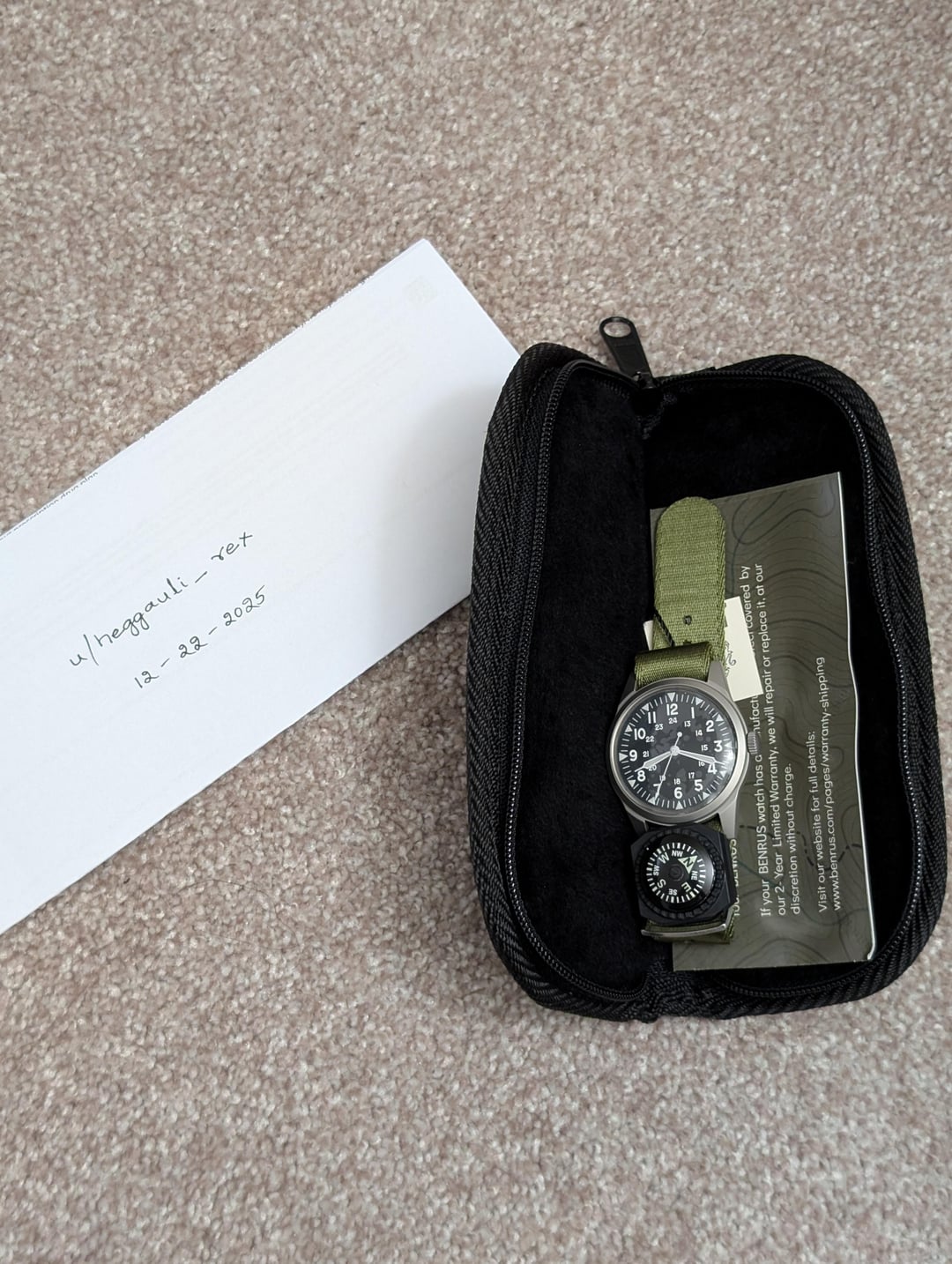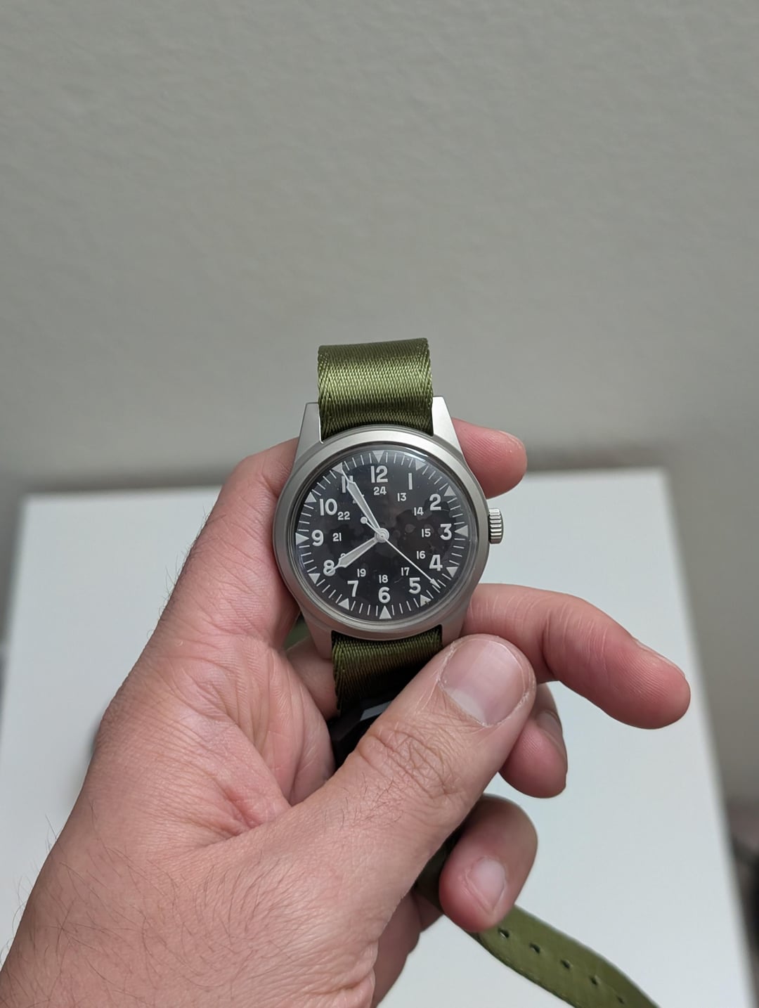 Hi, I'm selling my Benrus DTU-2A/P 39.5mm watch with a Sellita SW200 Automatic movement that I got sometime in December. It's just too big for my 6.25in wrists and sits a bit higher which, I don't really like. I haven't used the watch at all and it has the tags + original packaging it came with intact. It also comes with a compass and a nice Benrus watch cover. Asking price is 200$ + shipping. I'm currently located in the SF Bay area and if anybody is interested in picking it up F2F, we can discuss about that option as well. Here's a link to the worn and wound review of the same watch - https://wornandwound.com/benrus-gives-the-dtu-field-watch-a-new-lease-on-life/ From what I understand, it's a discontinued piece.. so you'll not find it on the official Benrus website anymore.. But watch gang, grand central watch currently have it listed for 595$.
