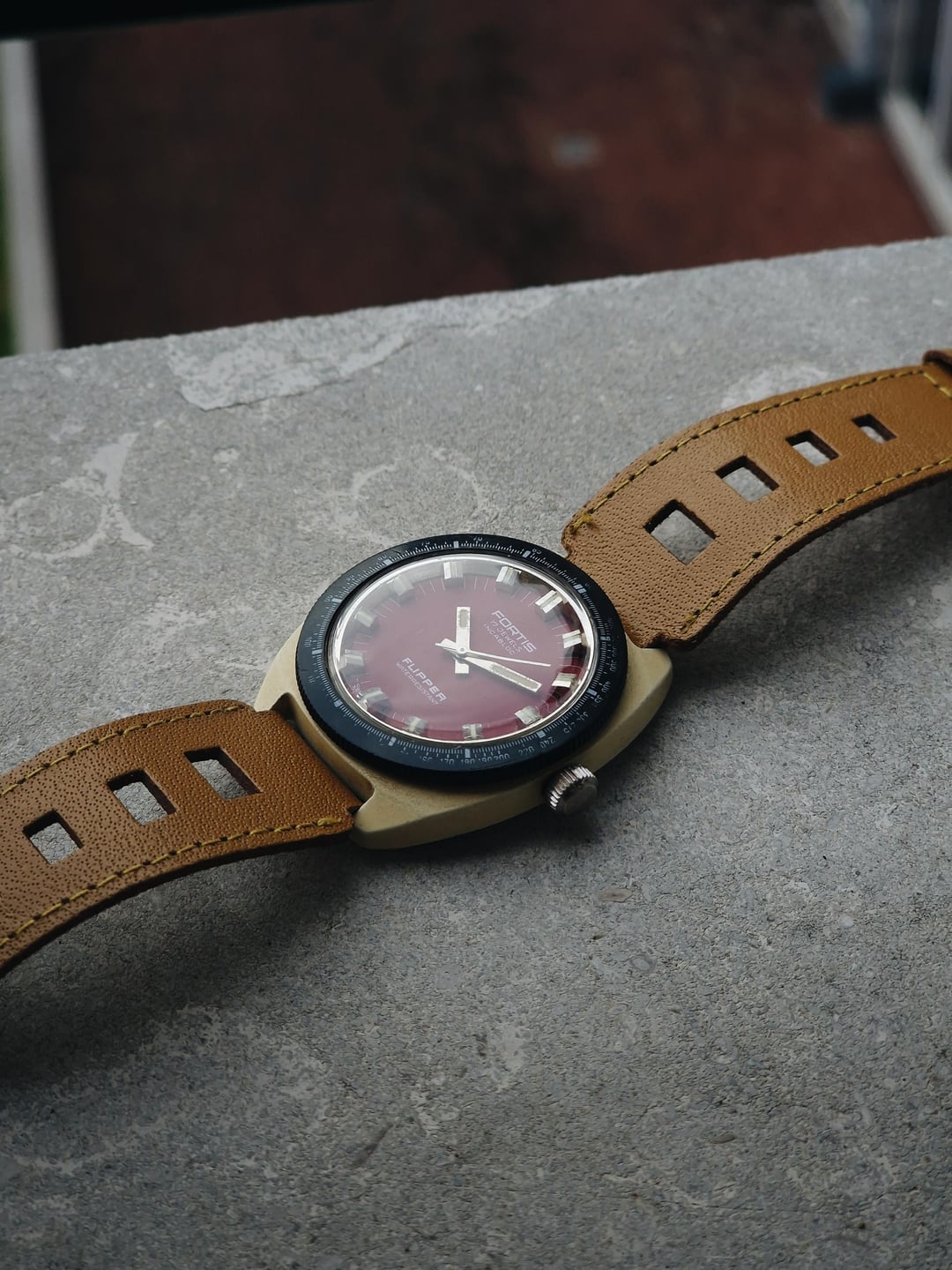 The Fortis Flipper is pure late 60s attitude – a red dial stuffed into a chunky plastic case that doesn’t pretend to be anything but fun. It’s lightweight, loud, and retro, but still packing a punch as these were rated to 600 feet. Apparently, it was made for the 1968 Olympics. Inside is a simple manual wind movement. Nothing complicated or delicate, just a playful vintage beater with a ton of charm, the kind of oddball that’s worth collecting. It also seems to come with the original leather strap, or at least a very good modern version. **Condition:** Good condition for its age. The case and bezel have some wear, but nothing major. The acrylic crystal looks very good. Please see the pictures for full condition and clarity. **Case Size:** 37 x 42.8mm plastic case with a thickness of 12.9mm and a lug width of 18mm. **Movement:** Swiss 17-jewel manual wind movement. Service history is unknown, but everything is working as it should. **Other Information:** * It seems to have the original leather strap, or at least a very good modern version. **Price:** Asking $280. Please add $25 for worldwide shipping. Payment methods include Wise, ACH transfer, Revolut, Bitcoin (On-Chain or Lightning), or PayPal G&S for buyers with solid references. Add +7.5% for currency conversion fees on the latter. Portugal has suspended all local post shipments to the US, but I can still ship with UPS ($120). Established seller with over 220 transactions – buy with confidence! Make sure to follow me on Instagram (@daily.worn) to check out the newest additions. [Pictures](https://imgur.com/a/ekUOsBs) [Timestamp](https://imgur.com/a/lT5t5vT)