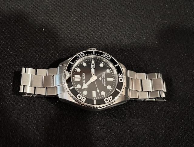 Selling my Citizen Promaster Eco-Drive dive watch, model BN0261-51E. Great condition, rarely used. Purchased new directly from Citizen in August 2025. Comes with original box & papers. Black dial, 41mm case, 20mm lugs. Watch has been worn, so there are some scuffs on the bracelet clasp. Overall the watch is in great condition. Looking for $299 USD, which includes shipping to ConUS and Canada. Great bargain compared to the current $450 price. Payment accepted through PayPal.