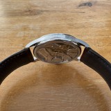 Das schlichte Zifferblatt verfügt über eine kleine Sekunde bei 6 Uhr sowie arabische Ziffern. Das Modell wird durch das Handaufzugskaliber 9828 angetrieben, das durch den offenen Gehäuseboden sichtbar ist.