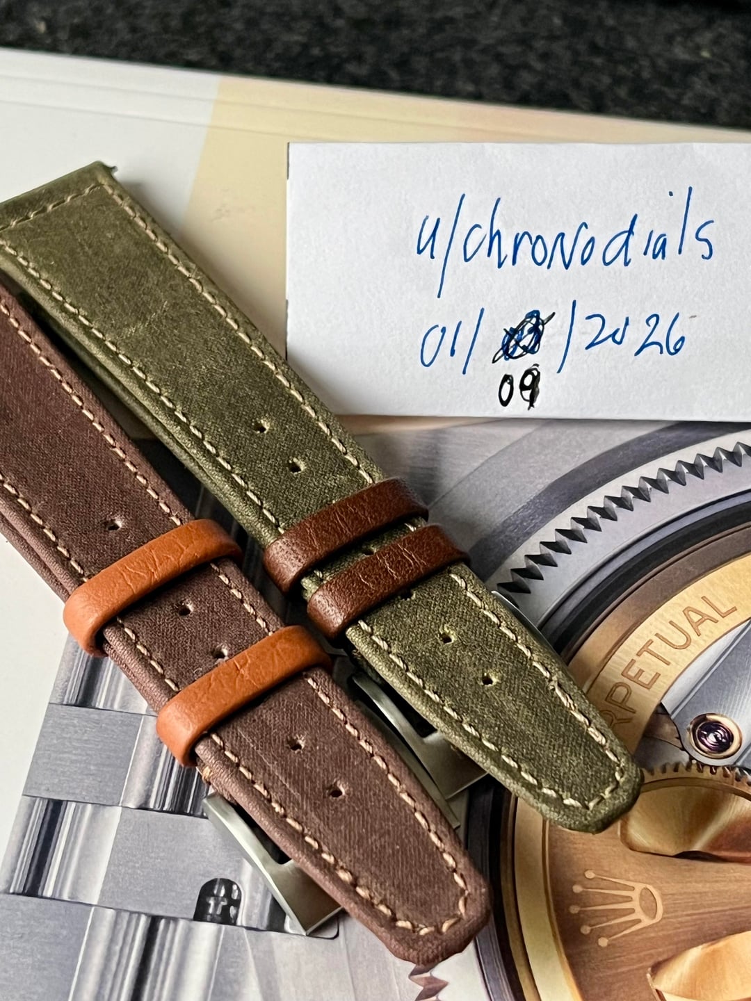 **1. The Highlands Watch Strap** \- Made of Vintage Barbour Fabric [https://bulangandsons.com/products/the-highlands-watch-strap-made-of-vintage-barbour-fabric-jubilee-edition](https://bulangandsons.com/products/the-highlands-watch-strap-made-of-vintage-barbour-fabric-jubilee-edition) **2. The Manchester Watch Strap** \- Made of Vintage Barbour Fabric [https://bulangandsons.com/products/the-manchester-watch-strap-made-of-vintage-barbour-fabric-jubilee-edition](https://bulangandsons.com/products/the-manchester-watch-strap-made-of-vintage-barbour-fabric-jubilee-edition) Regular Length: 115 + 75 cm (4.53 + 2.95 in.) Lug width 20 mm = 16 mm buckle. The strap has a thickness of \~2,4 mm (0.094 in.). Both are New in Box. **$135 Shipped Each.** Save over New. Pics & timestamp in listing. Zelle or Venmo FF