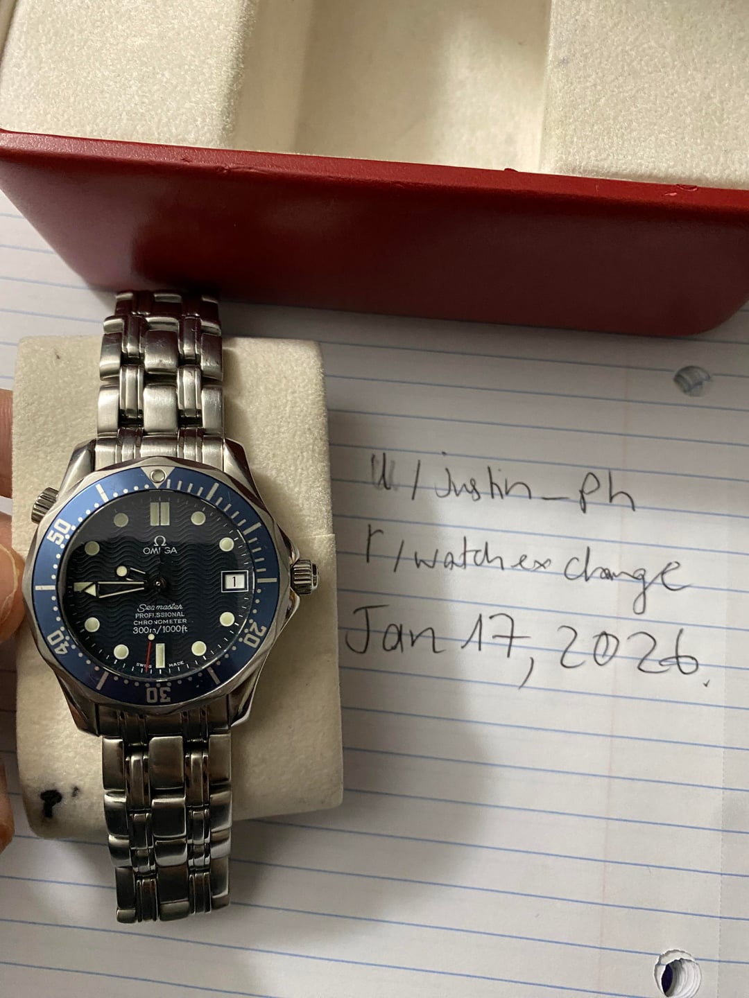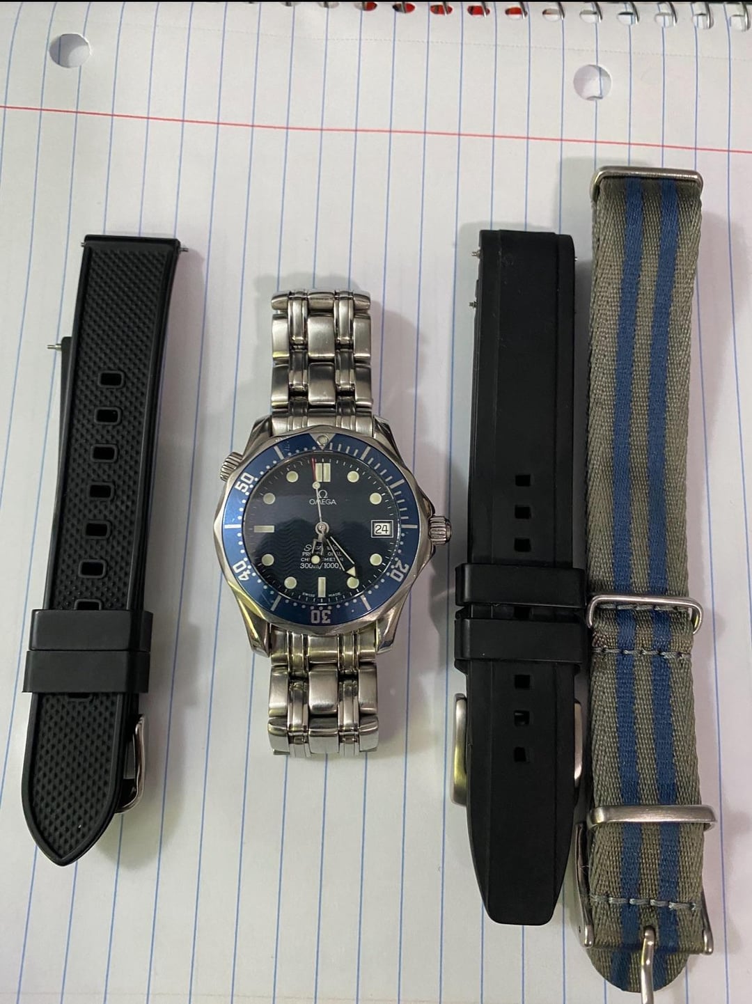 Hi watchex! Selling from my personal collection my Omega Seamaster Bond Midsize 2551.80. 36mm Watch keeps great time. I have owned the watch since 2021 and serviced it in 2022. Currently keeps time within reasonable specs with no drastic variation. Timekeeping should be within COSC or close to it; there shouldn’t be concern for a service. Good condition as pictured. The watch comes with inner, outer boxes, hang tag, booklet and links to fit up to 7” wrist. Currently sized for my 6” wrist. I will also include two rubber straps and a nato as pictured. Offered for US$1795, equivalent CAD 2500 + shipping cost Payment: Paypal F&F or G&S (+ 3.9% fees) Location: Ontario, Canada. Shipping at buyer’s expense. Shipping to Canada and USA. Please reach out to me if you have any questions. I can show me detailed videos/ proof of possession/Facetime available. Thank you!