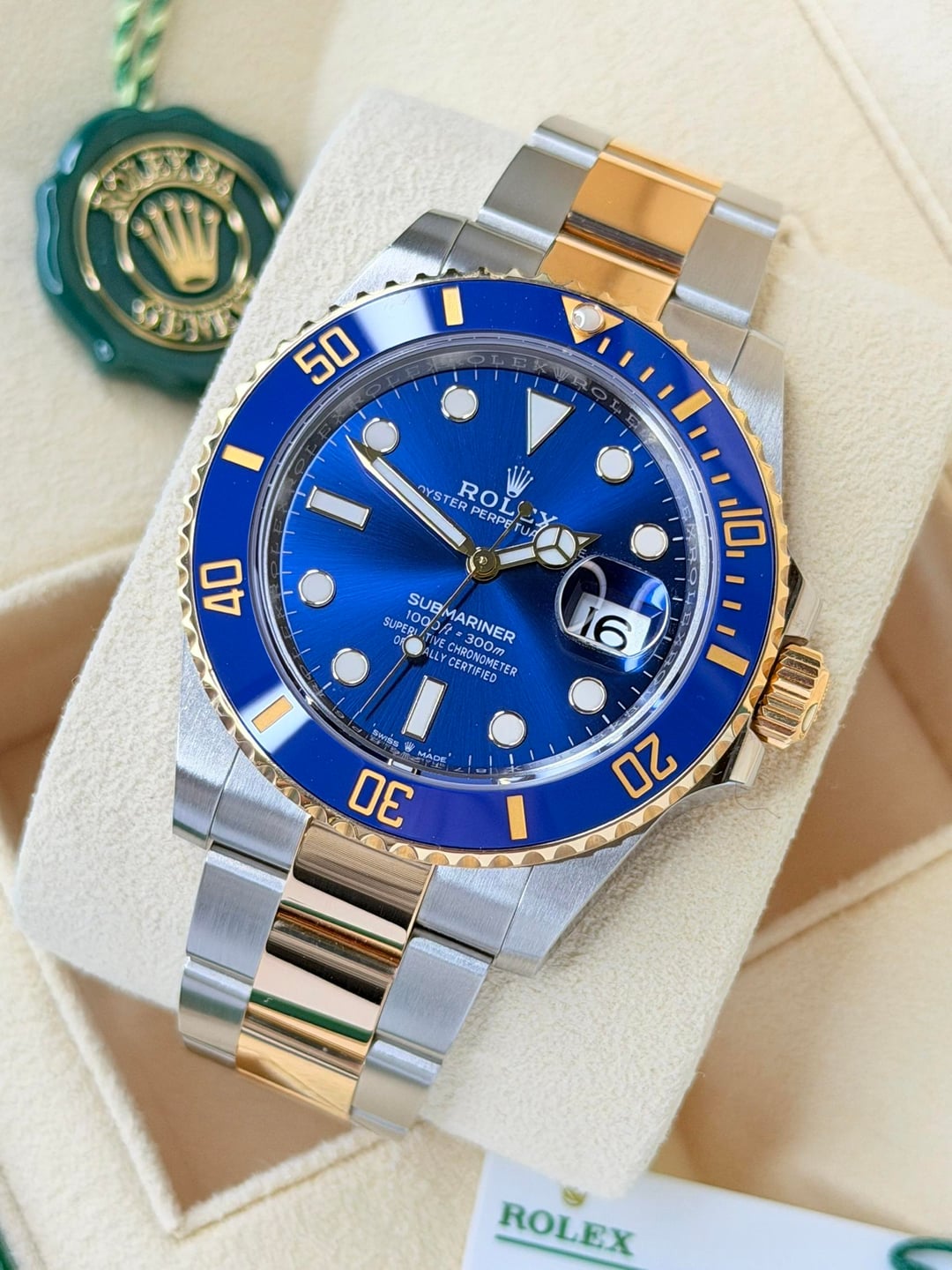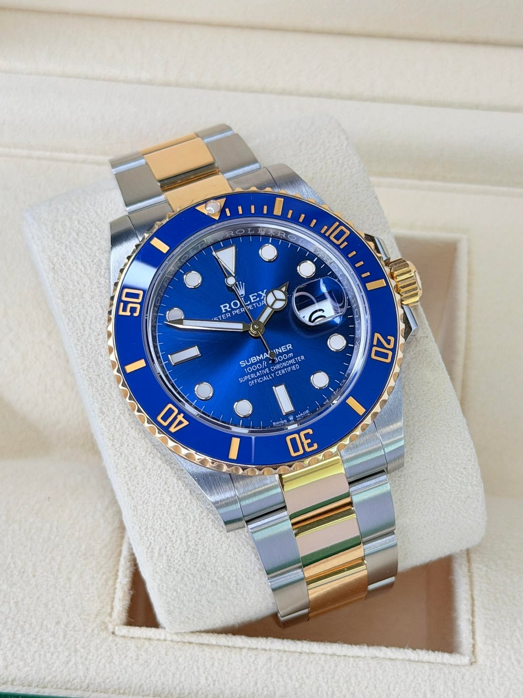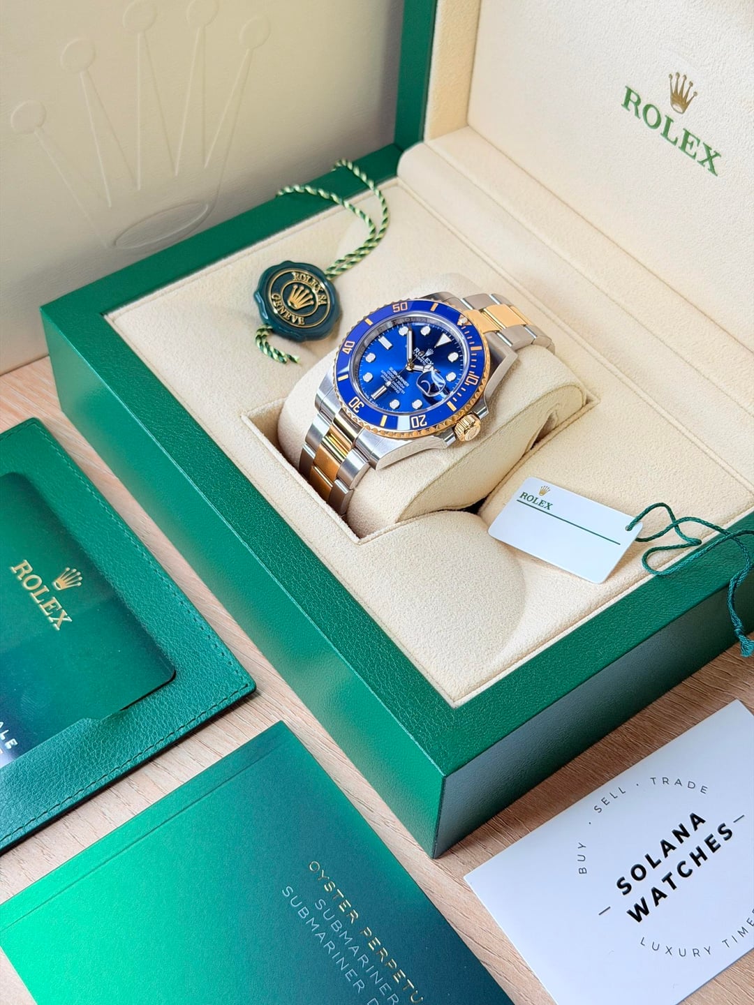 Selling this 41mm two-tone Rolex Submariner reference 126613LB / 126613 with the beautiful blue sunburst dial, also known as the Bluesy. **This Bluesy is in great condition.** **It comes as a complete set**, including the Rolex green box, outer box, booklet, warranty booklet, leather wallet, warranty card dated 2024, the serialized tag, and the hangtag. **Photos:** * [Album](https://imgur.com/a/2024-bluesy-jan2026-EPtY6mk) * [Timestamp](https://i.imgur.com/O0lInkc.jpeg) * [More on my Instagram @SolanaWatches](https://www.instagram.com/solanawatches/) **Price is $17,300 delivered** in the US. **I’m a full-time watch dealer** with a private showroom located in Carlsbad, CA. Feel free to **Google “Solana Watches reviews” to see what others have to say about me** and my services. If you are local, don’t hesitate to reach out to schedule an appointment. **Feel free to contact me** via PM here so we can exchange numbers and get on the phone or do a video call. You can also [find me on Instagram @SolanaWatches](https://www.instagram.com/solanawatches/). _Private showroom located in San Diego, CA. Reach out to schedule an appointment._ _All my watches are guaranteed 100% authentic, and I will stand by their authenticity. _ _California buyers without a seller’s permit are subject to sales tax. _
