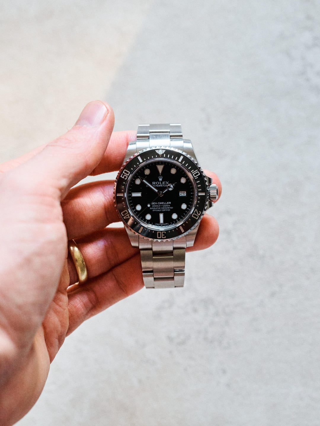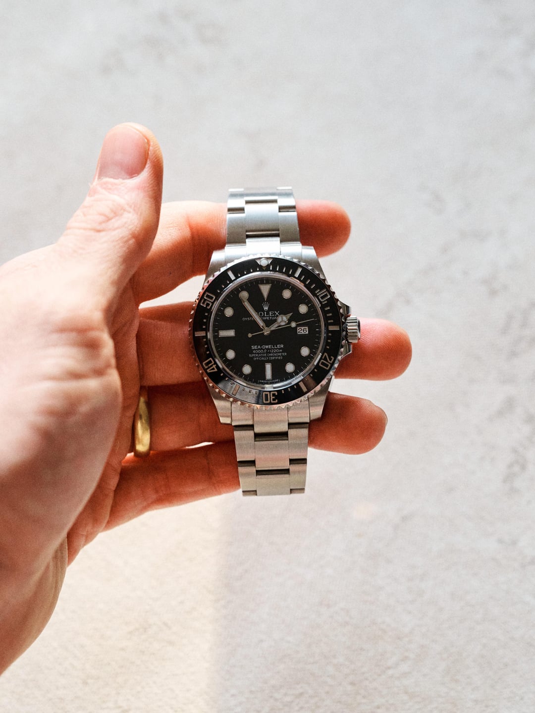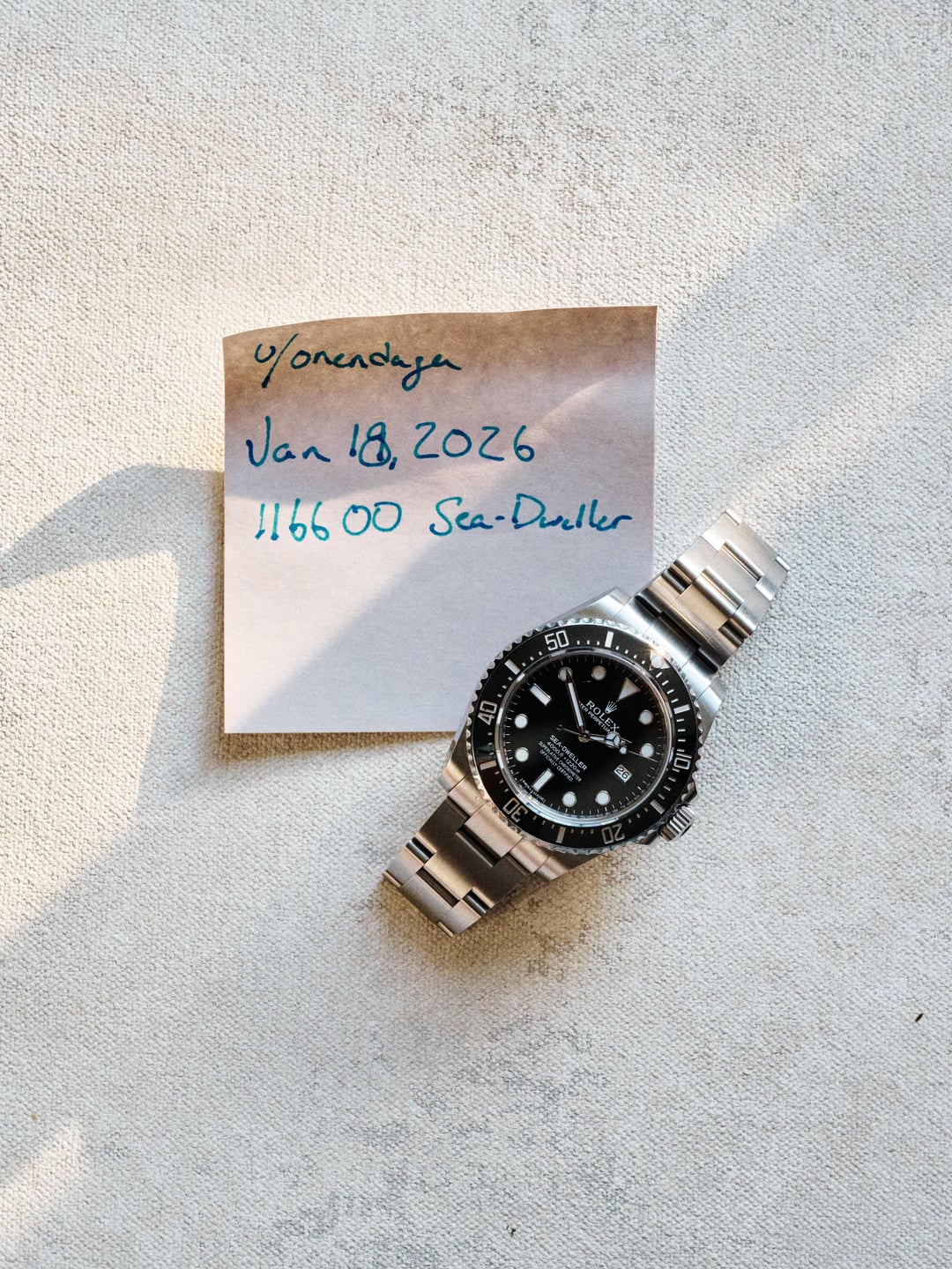 Intro: It’s laughable on its face to say that any steel sports Rolex is rare, that said, for a company that makes 1MM+ watches a year the 116600 is about as rare as they come. Produced in an uncharacteristically short run from 2014 through 2017, fewer than 30,000 units were made per Rolex. The “SD4K” was the last of the 40mm Sea-Dwellers. It bridged the gap between overbuilt but still anachronistic new-vintage models with aluminum bezels and jingly bracelets (and sh\*tty claps) and the 43mm 126600 which. It was the last Sea-Dweller to \*not\* use a cyclops for the date window which is notable and the purists choice. I doubt it sold well, it was a time before Rolex was white hot—it had to sit in a case alongside Submariners and Submariner Date models at a fraction of the price. I turned one of these down at an AD circa 2016, I didn’t have two cents to rub together at the time. Condition: This was purchased NOS by me in 2024. Full stickers. Full kit. The stickers have gone but the factory finish remains. I’m a stickler for original finish, so buying NOS was the only way to ensure this had never been polished. This watch has never been polished, I hope it never is. The watch has been professionally resized by my AD when I got it. Otherwise it’s been worn and that’s it. Hairline scratches and scuffs primarily on the bracelet and claps. No dings large enough to catch your nail on. It has not been abused. Please check out the pictures and let me know if you have any questions. Kit: This includes the beige Rolex outer box, green previous generation inner box (now two generations old I believe). Little card wallet thing, warranty card, chronometer tag, hangtag, and all original links. Again, see pictures. Terms: I’m asking $13k shipped within CONUS with FedEx, insured, signature required. Payment via wire. I am not interested in any trades and I am not in a rush to move this if the deal isn’t right. Why I’m selling: Glad you asked. I’m selling because I have a strict one-in-one-out policy and I’m about to take a bath on a $40,000 Ulysses Nardin Diver Air. I got it on my wrist a year ago and can’t get the damn thing out of my mind. Wish me luck. Anywho the allocation isn’t expected for a few months so I’ve got time to make room in my watch box. I may part ways with an Explorer (124270) in the coming days as well if you’re interested. Timestamp: [https://imgur.com/a/besT938](https://imgur.com/a/besT938) Pictures: [https://imgur.com/a/zcTIg1T](https://imgur.com/a/zcTIg1T)