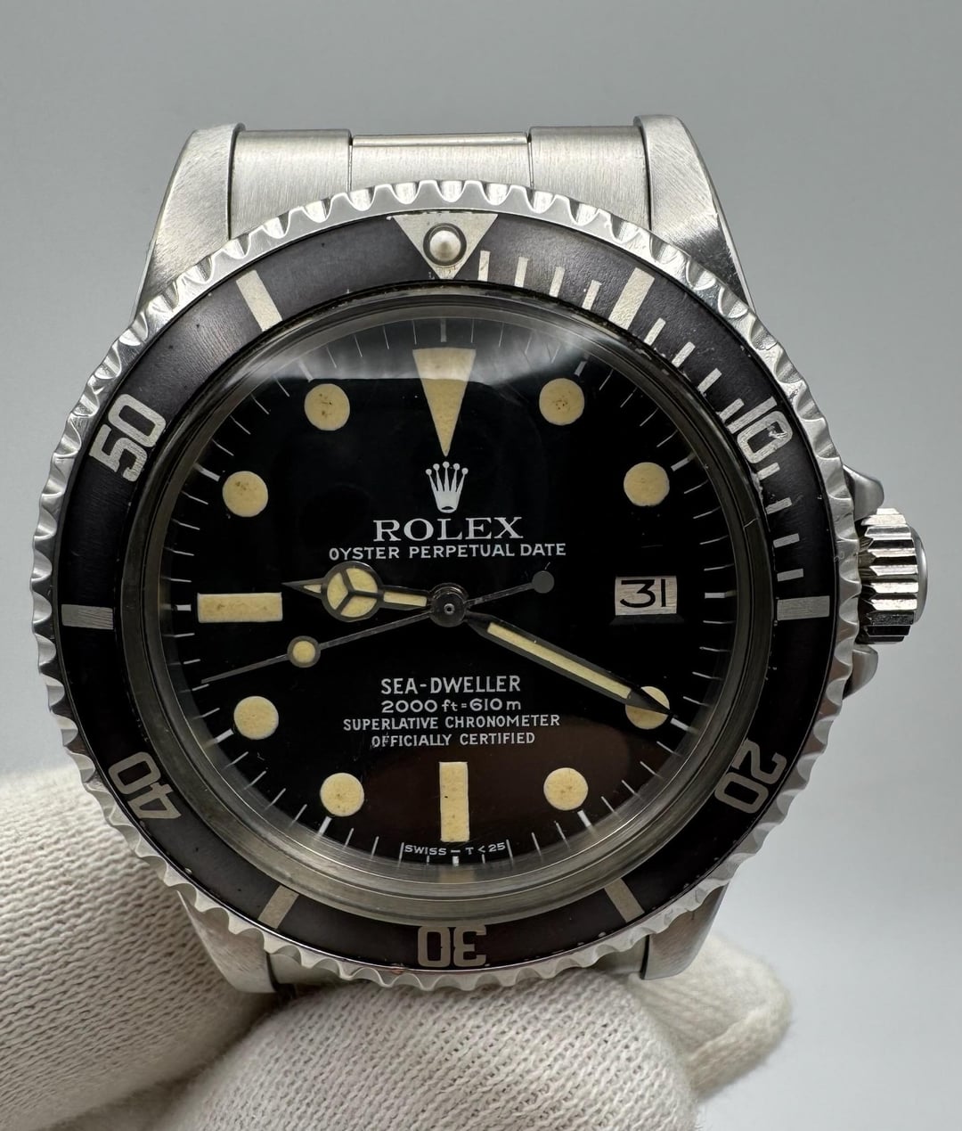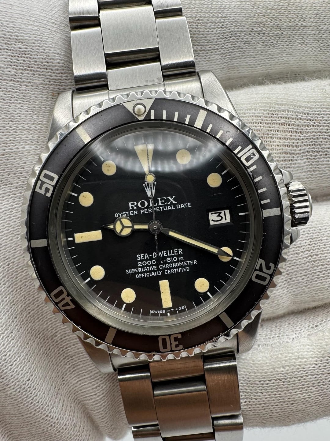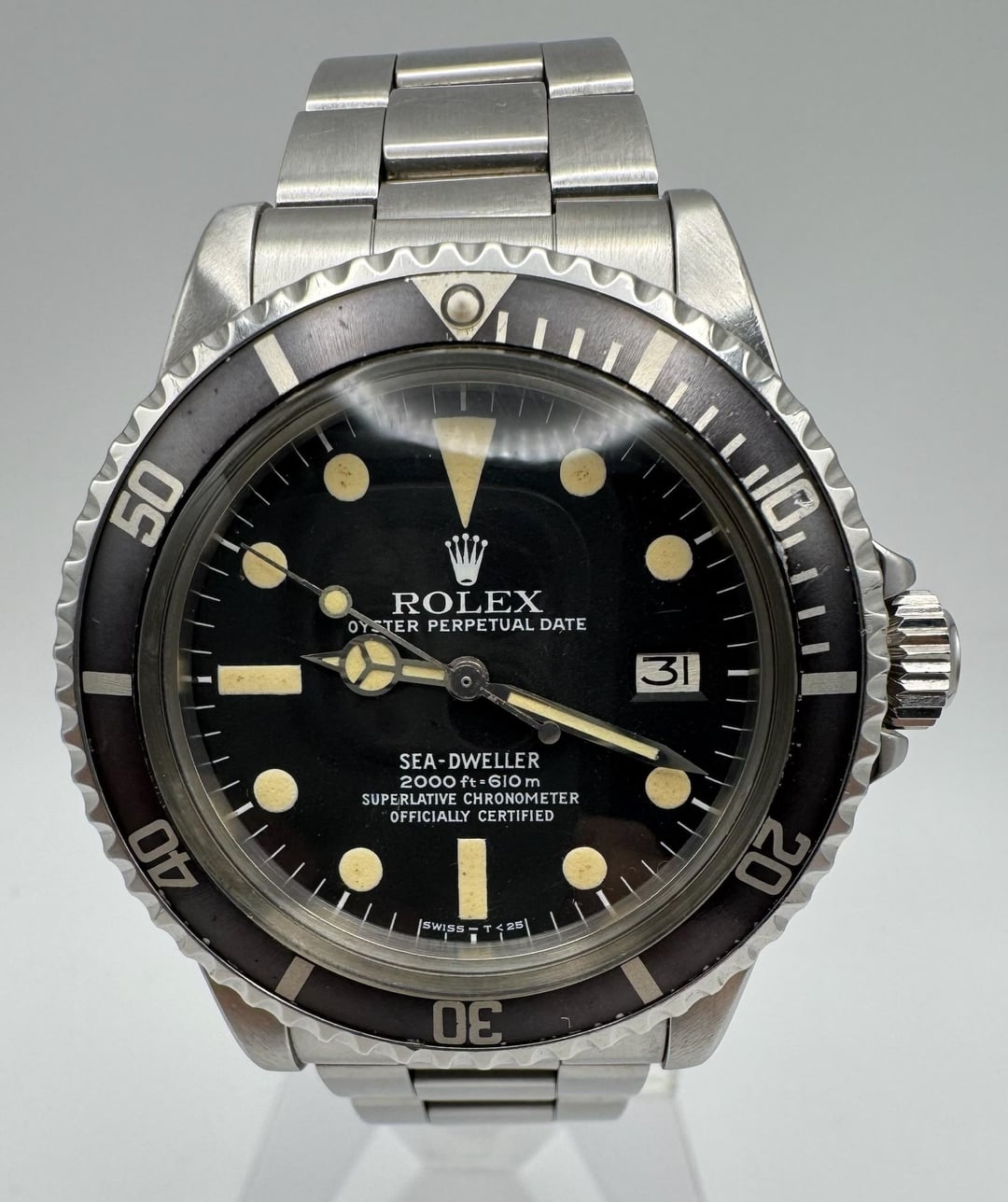 This vintage Rolex Sea-Dweller reference 1665 is presented in all-original condition and remains a highly respected example of Rolex’s professional dive watch heritage. Crafted in stainless steel, the case retains thick, sharp lugs and shows only minimal signs of wear, reflecting careful ownership over the years. All case numbers are crisp and fully intact, with a 6.1 million serial placing production around 1979. The original dial displays a beautifully even yellow patina across all hour markers, complemented by matching hands. The tritium lume remains responsive under UV light, confirming originality and consistency throughout. Completing the classic profile is the correct fat-font bezel insert, which has naturally faded to a soft grey tone and features a matching pearl pip, adding depth and character to the watch. The original Oyster bracelet is in excellent condition with 11 links and shows almost no stretch, which is exceptional for a piece of this age. Additional links can be provided upon request. The movement was professionally serviced in December 2025 and is running properly. This Sea-Dweller is accompanied by its original box and papers, making it a compelling and well-preserved example of a landmark Rolex tool watch. **Reference:** 1665 **Size:** 40mm **Year:** 1979 📜 Includes: Original box & papers 💵 Price: $20,900 + FREE overnight shipping with FedEx fully insured. [Timestamp](https://imgur.com/a/5p5OBEp) 🔗 Other Listings: [profile](https://www.reddit.com/u/BoghossianJewelry/s/vm81HAdB7o) | [watchrecon](https://www.watchrecon.com/?query=BoghossianJewelry&last_days=0) 🔥 Follow us on [Instagram](https://www.instagram.com/bogossiajewelers) 📍 Location: New York 🔒 Authenticity: 100% guaranteed, buy with confidence. We have 160+ reviews on Chrono24 with 180+ transactions, and Excellent rating score on Trustpilot. Visit our [profile](https://www.reddit.com/u/BoghossianJewelry/s/vm81HAdB7o) for links and references. 📦 Domestic Shipping: Ships with FedEx overnight, within 24 business hours of payment, from New York, NY to CONUS. The shipment is fully insured against damage, loss or theft. 🌍 International Shipping: Incurs an additional $100. 💳 Payment: Crypto (+2%), PayPal/CC (+4%), Web, or Face-to-face deal in NY. 🔐 [Seller References](https://bogossia.com/authenticity) 📸 [IG: @bogossiajewelers](https://www.instagram.com/bogossiajewelers)