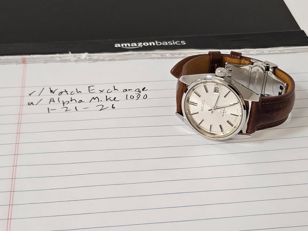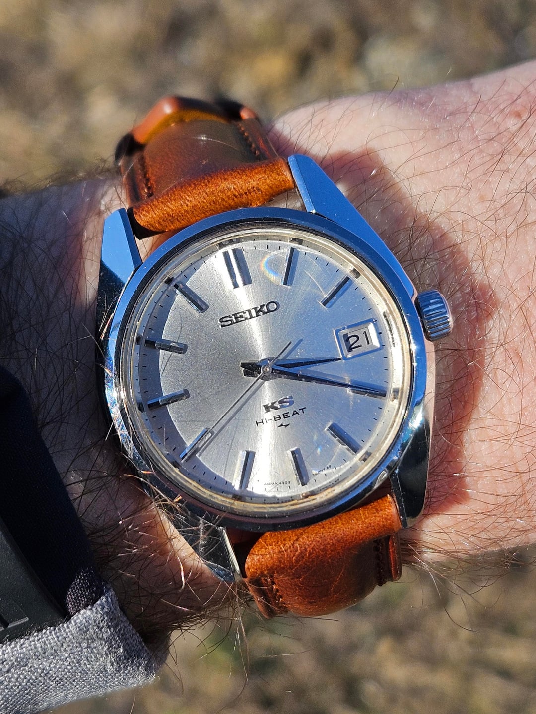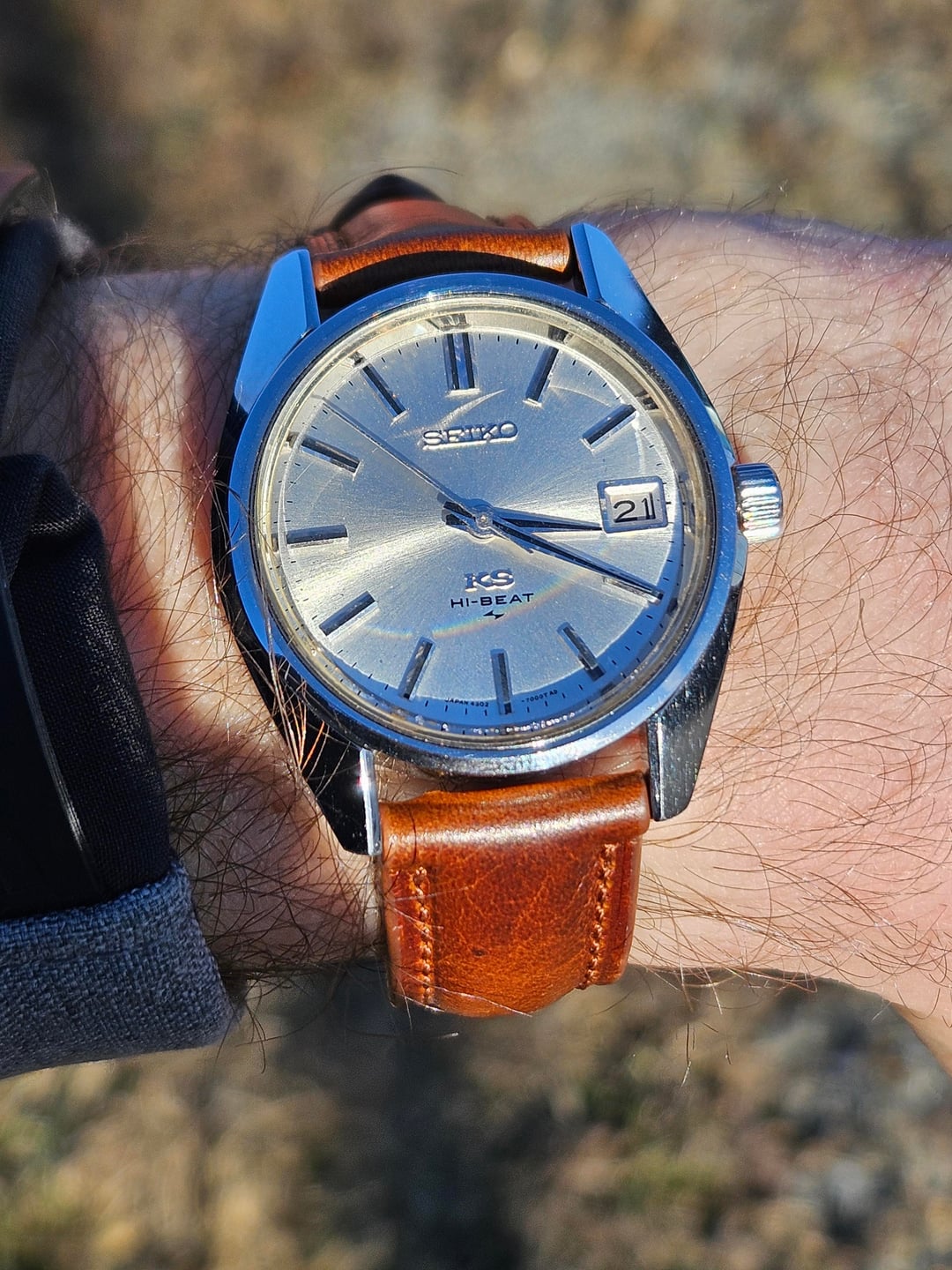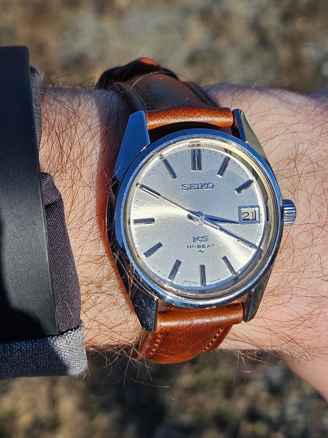 Hey there! For sale is my vintage King Seiko, reference 4502-7001. The watch is from 1972 and is in spectacular condition for its age. The watch was claimed to be serviced when I purchased it several months ago, although I do not have service papers. The watch is in excellent external condition as the pictures indicate, and I’m happy to answer any questions. Internally the watch is running very well, keeping great time, and with all functions working correctly. The watch comes on an aftermarket brown leather strap with deployant clasp. Timestamp: [https://imgur.com/a/yM2aWTm](https://imgur.com/a/yM2aWTm) Asking $599 which will include insured CONUS shipping. PayPal or Zelle. Might be interested in trades down for other dressy/GADA Seikos. Thanks for looking!