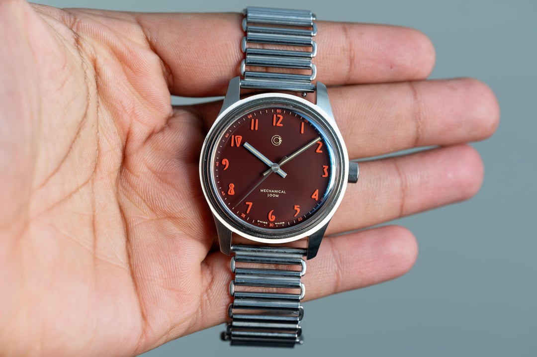 Up for sale today is my Camp Fieldtimer manual wind with a Malaga red dial. This is very well designed watch that is extremely comfortable to wear. Watch comes from an LA based industrial designer and it has a very cool side profile along with a stepped bezel that makes the design stand out. Star of the show is a Swiss Berlac lacquer dial and it has 15 layers. This gives the dial and amazing sense of depth and it's very cool to see from different angles. Watch is in excellent condition and there are no scratches or dents at all. It's a full kit and straps are unused. I used the bracelet slightly and it fits wrists above 6.75 inch only. Watch was purchased in Nov'25 and has a 2 year warranty until Nov' 27. No trades please. I am selling all my watches, again. More Information:https://campwatches.com/products/malaga-red Timestamp and Album: [https://imgur.com/a/camp-fieldtimer-XvIJwgo](https://imgur.com/a/camp-fieldtimer-XvIJwgo) Price: 675 including insured shipping within the US Payment: Paypal F&F Shipping: Insured USPS/UPS/FEDEX within CONUS I am open to FaceTime calls to show the watch