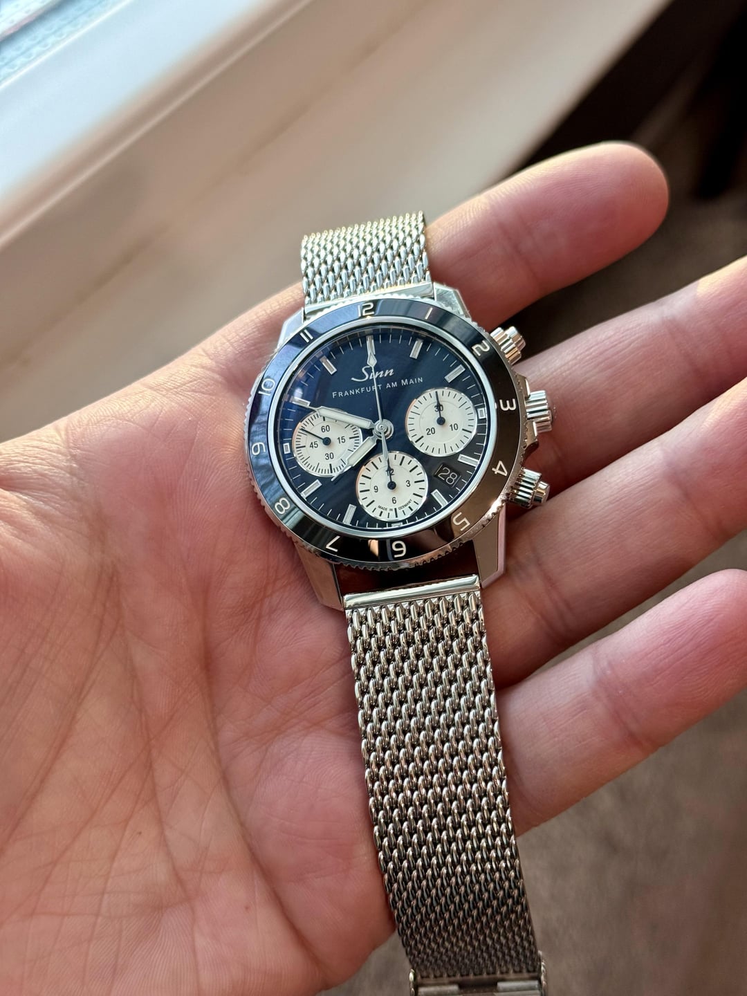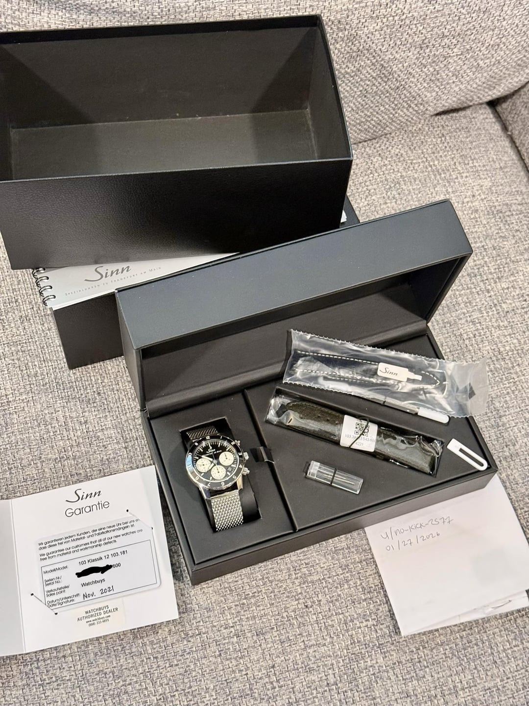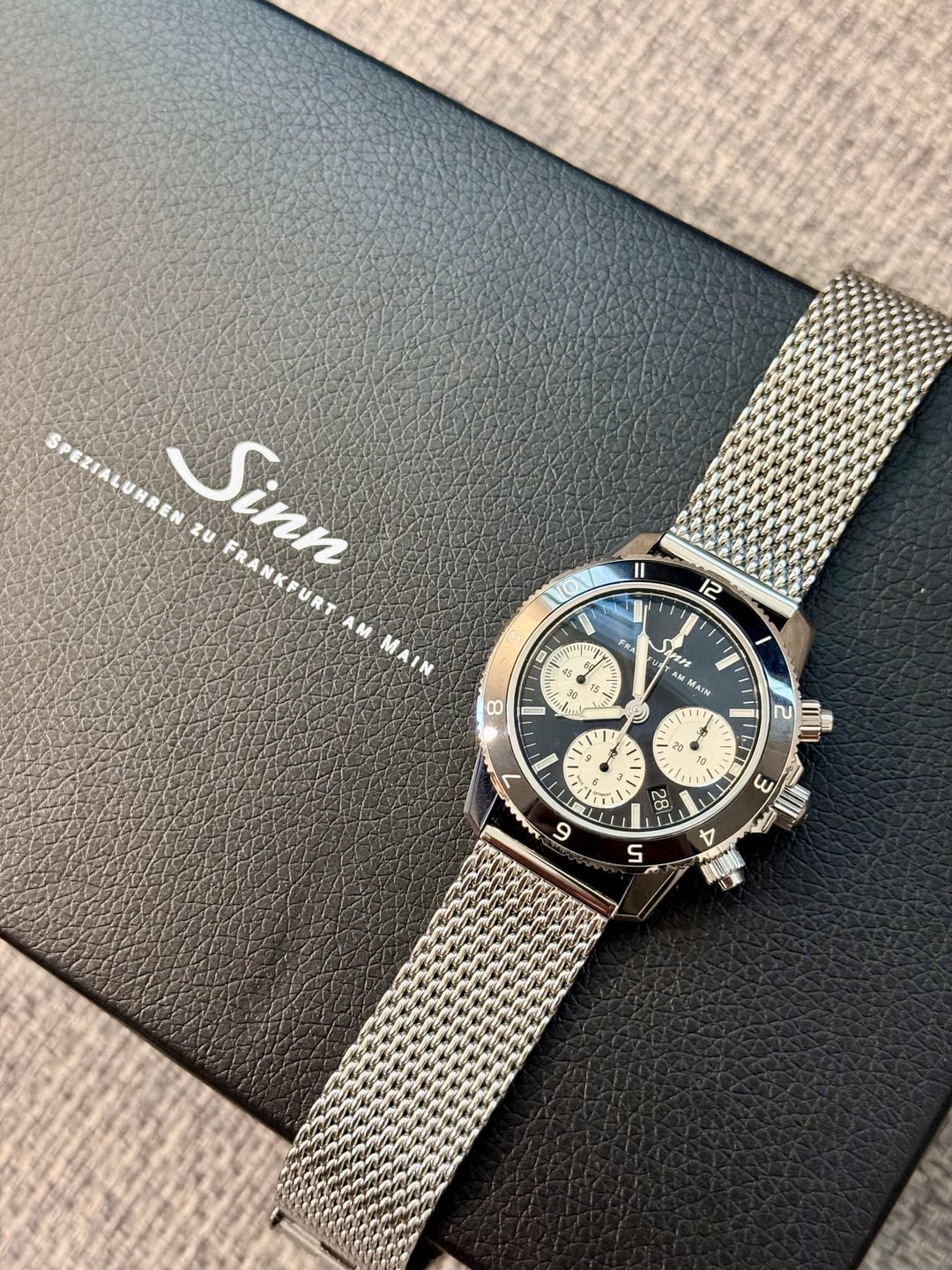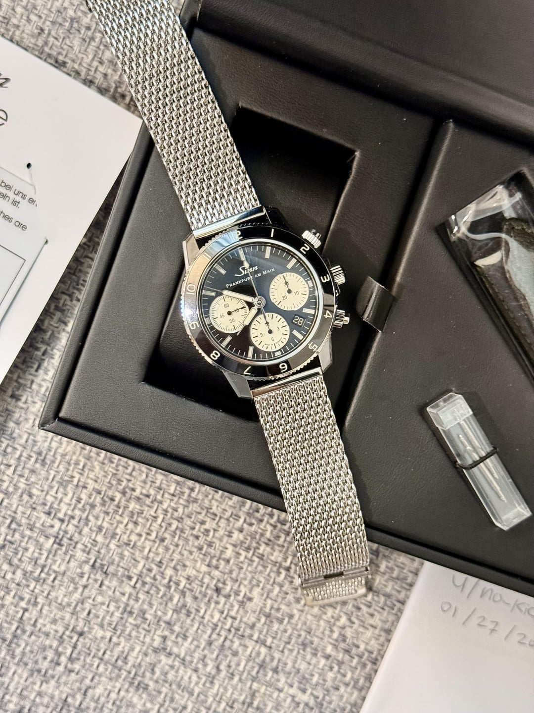 Fantastic condition. Full kit + high quality Watch Gecko stainless polished mesh bracelet. Original two Sinn straps are unworn and still in packaging. $3700 shipped CONUS. Cheapest in the world by a decent margin. Timestamp in third photo. No trades, thank you!