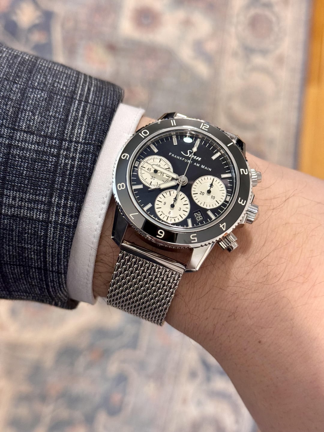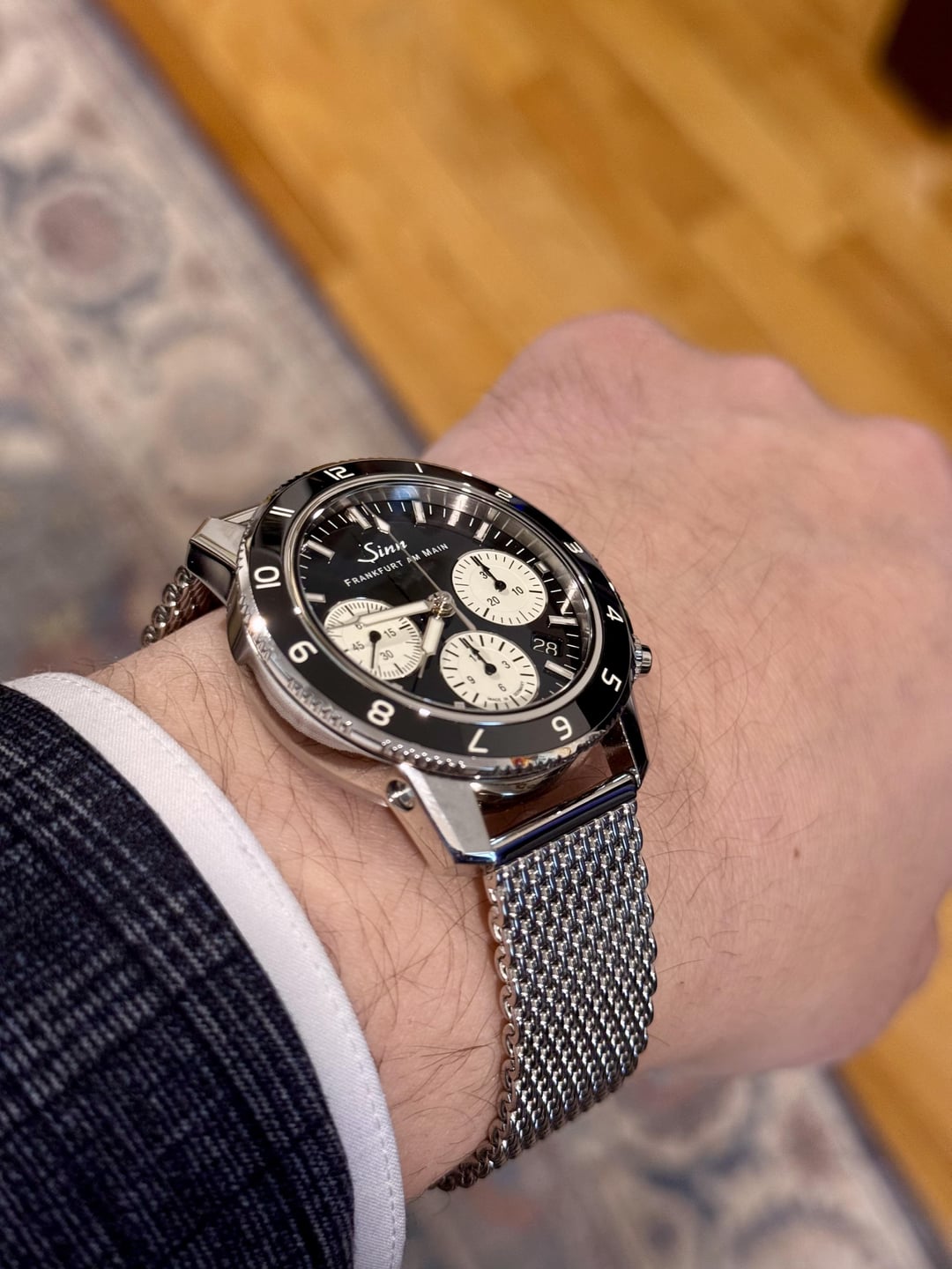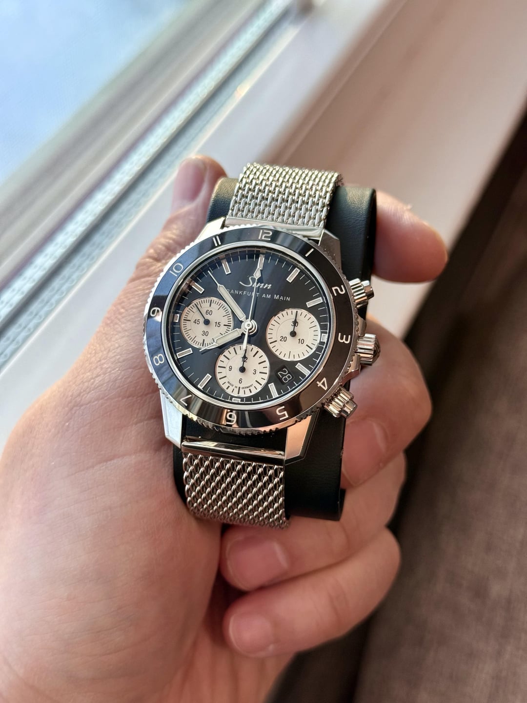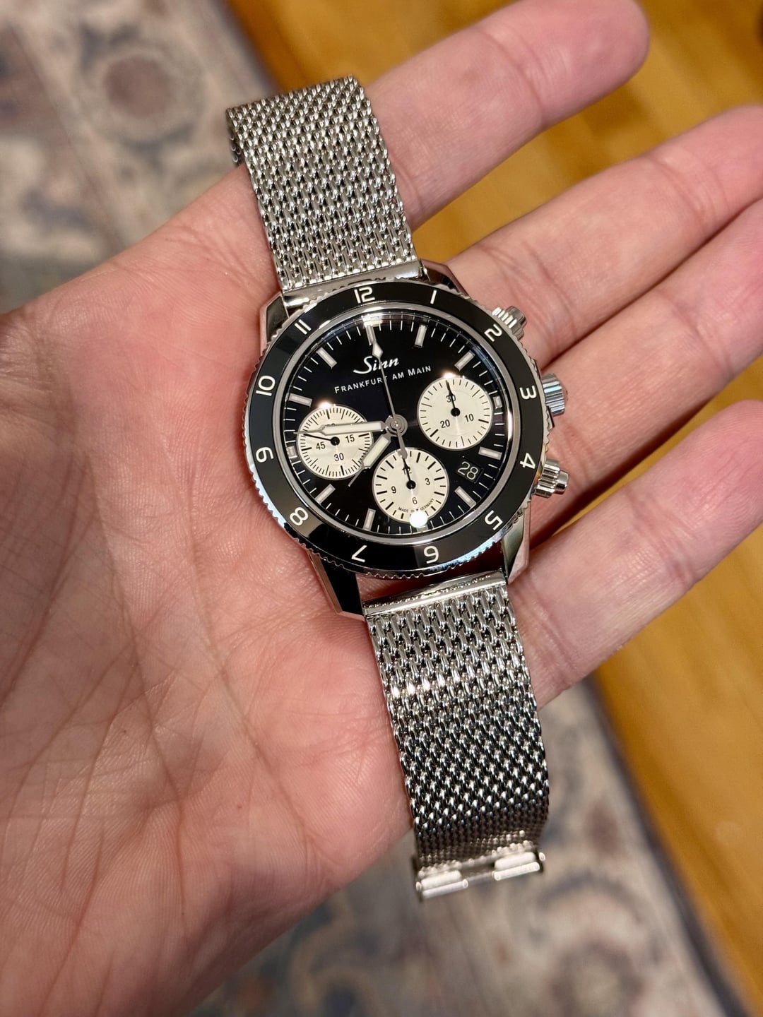 Fantastic condition. Full kit + high quality Watch Gecko stainless polished mesh bracelet. Original two Sinn straps are unworn and still in packaging. $3700 shipped CONUS. Cheapest in the world by a decent margin. Timestamp in third photo. No trades, thank you!
