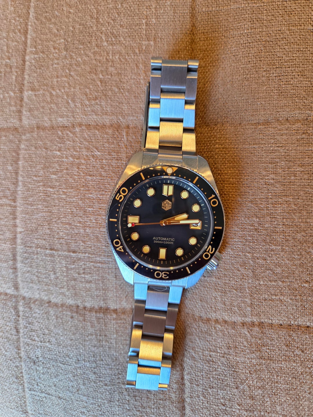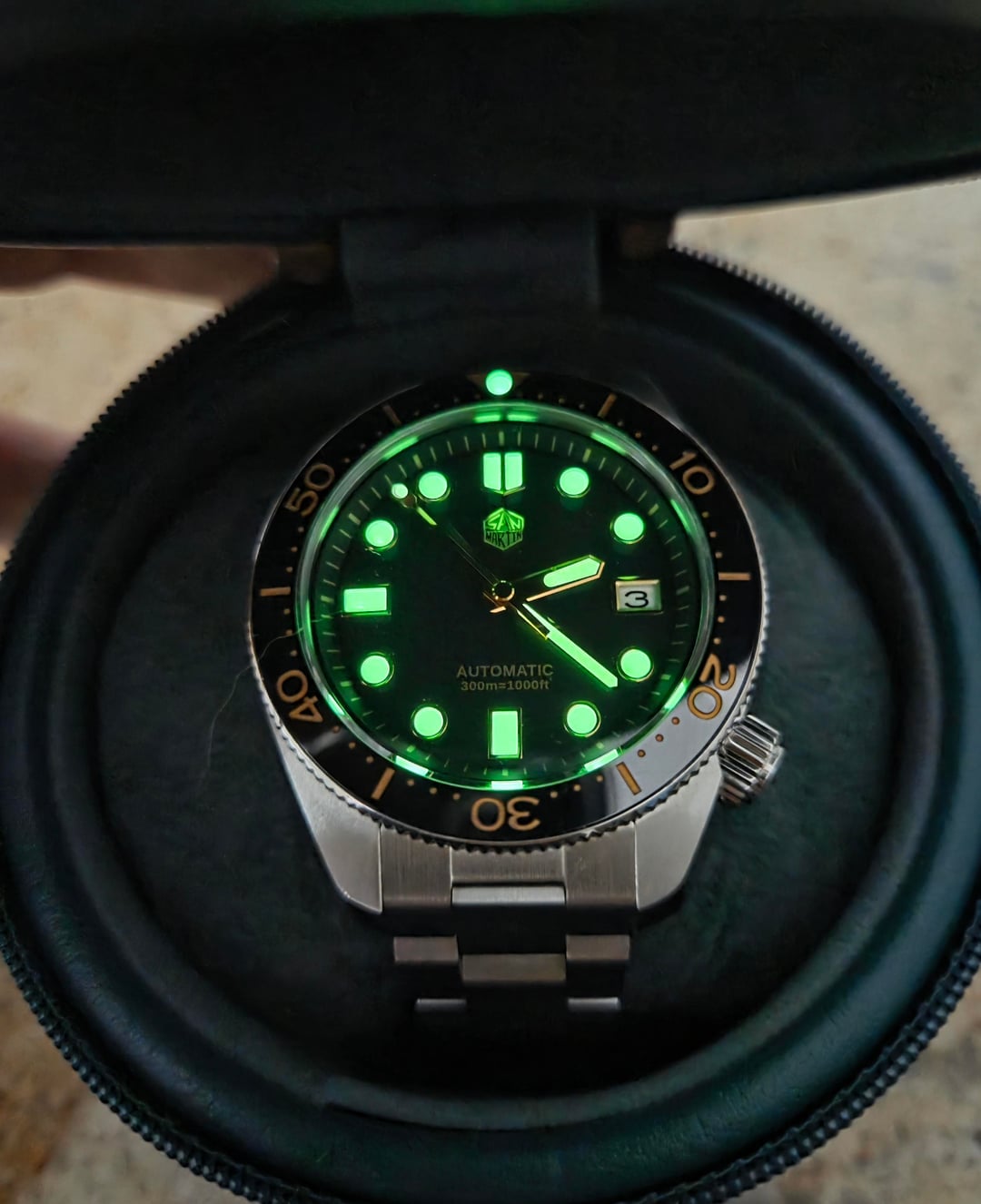 Timestamp: https://imgur.com/a/cXUijo3 This MM300 homage San Martin is in great condition and has been a really fun to wear piece. I'm primarily selling due to a one in one out policy for my watch box and the diver spot is already covered. I've enjoyed this piece and I'm sure it's new owner will too. Comes with Uncle Straps Waffle style dive straps to really scratch that vintage MM300 itch. Price: $200 / includes shipping within continental US with insured transit. Prefer payment via Venmo or PayPal. Comes with extra links, box, Uncle Straps waffle strap + additional spring bars. Brand: San Martin Model: SN0087-G Movement: NH35A [Automatic mechanical movement] Is Support Custom Logo: Yes Case: Material – 316L Stainless Steel 44mm in diameter Lug to Lug Length 50.5mm Thickness 14.2mm Lug to Lug width 19mm Crystal: Sapphire Crystal with Blue Light AG Coating Bezel: 120 Clicks Unidirectional Bezel,Ceramic Top Ring, 12 O’clock Luminous Markers Dial Color: Black, Gilt Applied Hexagon Logo and Indices, With Date Window Hands: Gilt GS Crafts Hands, Luminous Coating Luminous: SLN C3 Green Light, Hands and Markers Crown: Screw-down Crown With Hexagon Logo Case Back: Integrated Case Back, Brushed Process Bracelet: 316L Stainless Steel All Brushed Bracelet,Width 19mm * 16mm Clasp: Folding Clasp With Safety, With SanMartin Hexagon Logo Water Resistant: 30Bar=300 Meters Weight: about 181g