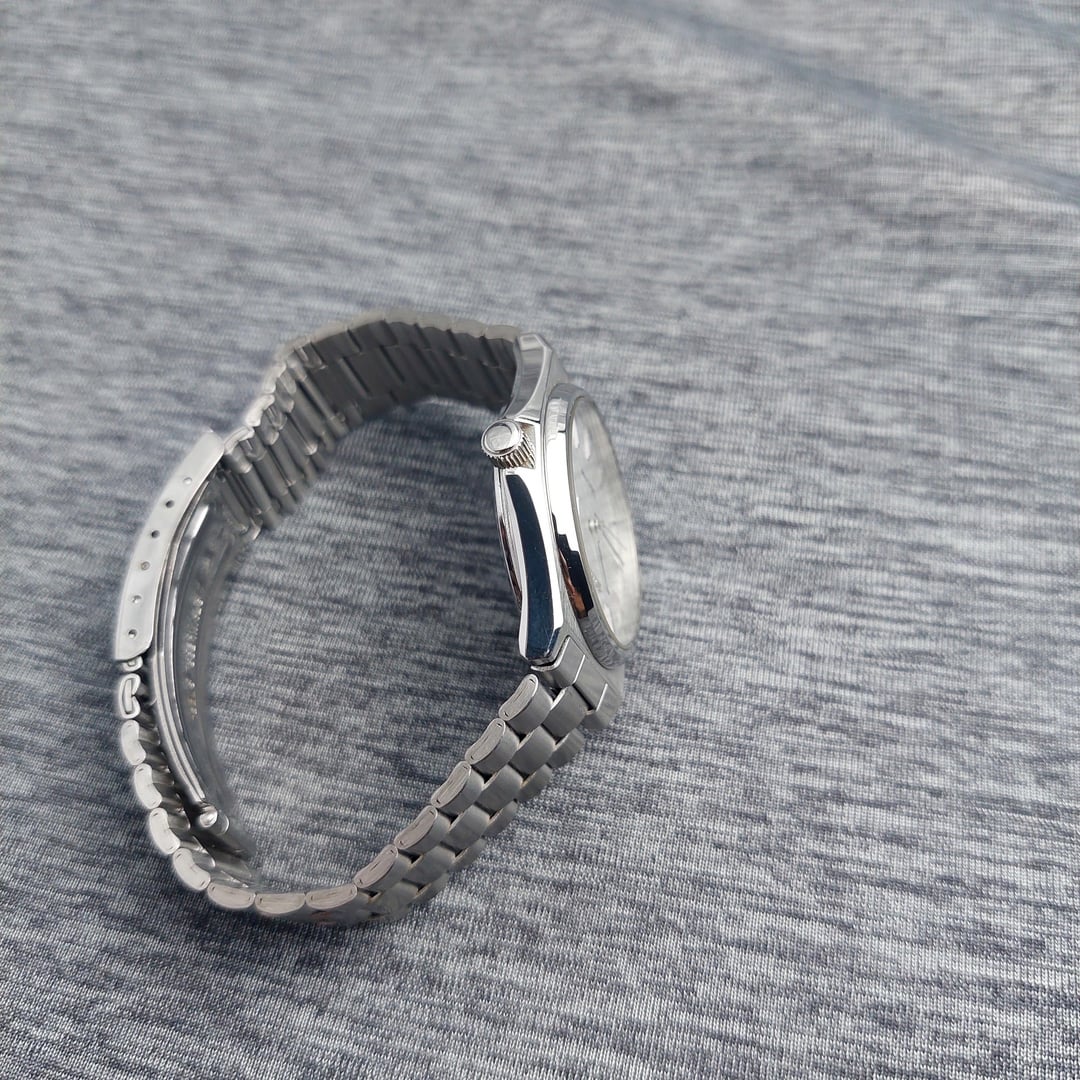 Up for sale Seiko JDM model ref number 5H23-7060 featuring beautiful frosted ice dial, the dial and hand in perfect condition has no sign of aging The movement running in good accuracy with new battery installed Case Size : 36 mm incld crown, Lug to Lug : 40 mm, Production Year : March1989, Comes with original bracelet fit up to wrist size 19.5 cm / 7.67 inch, Screwdown Crown and Movement running well, Day available in Kanji and English. The watch has clean crystal the all function works normaly Looking to get USD 165 shipped Payment via Paypal F&F and G&S + 4.8%. Video of watch : https://www.instagram.com/reel/DULqwz9jzZB/?igsh=MTY2c2dubTBkbDBrMg== for more collcetion please follow my instagram: https://www.instagram.com/lougeposh/ Please COMMENT FIRST before sending me a pm or chat. Tracking number (Airwaybill) will available within 3 days once payment confirmed. Payment via Paypal.