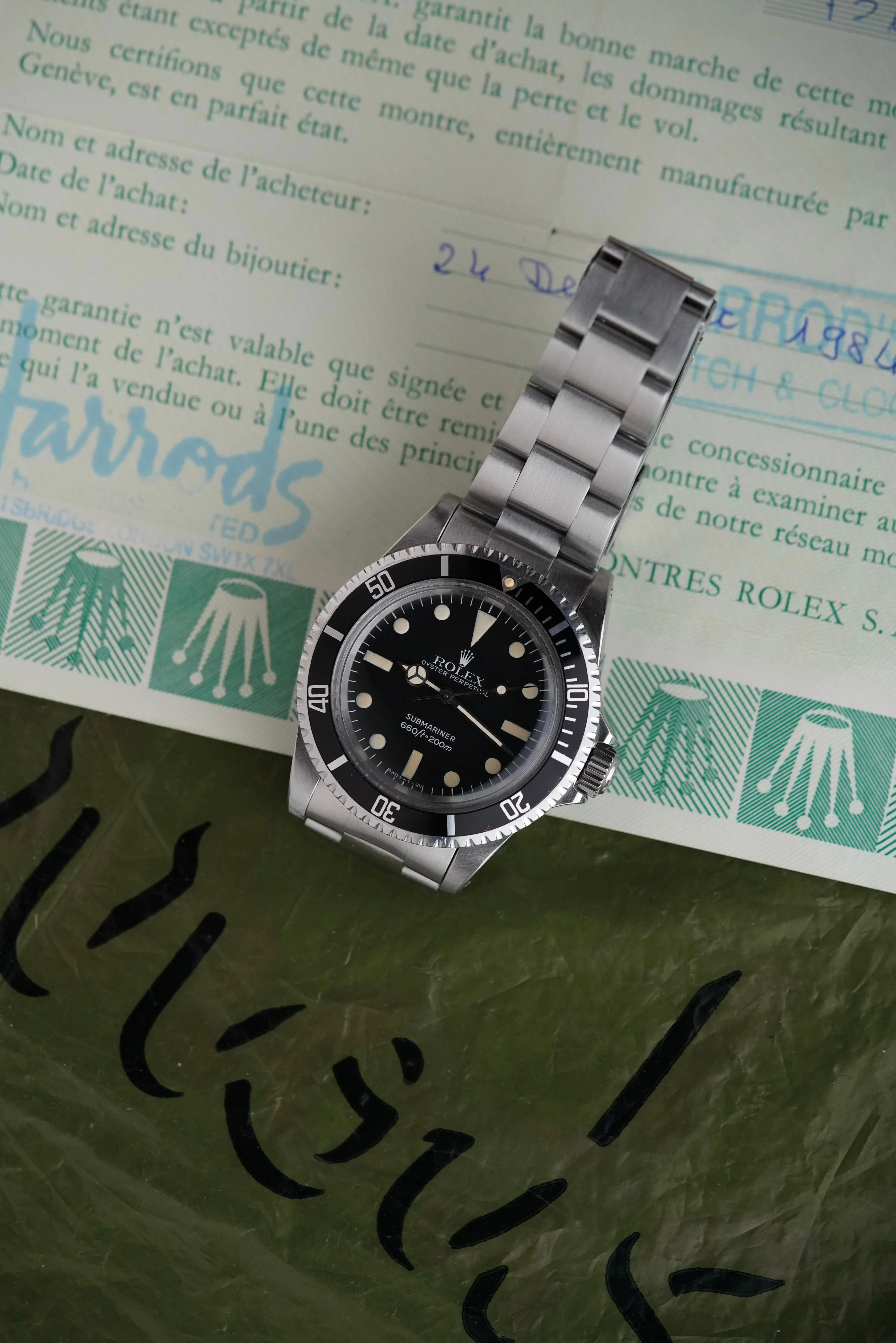On Christmas Eve 1984 an American gentleman went to Harrods in London to buy a watch and walked out with a brand new Submariner 5513 that he paid £900 for. Forty years later, here it is: a time capsule including the original plastic bag.