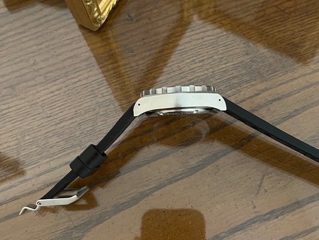 It wears very comfortbly on the wrist, with the guarded crown not felt at all. But it is definitely got wrist presence and feels like it can batter down a cinderblock wall without missing a beat.