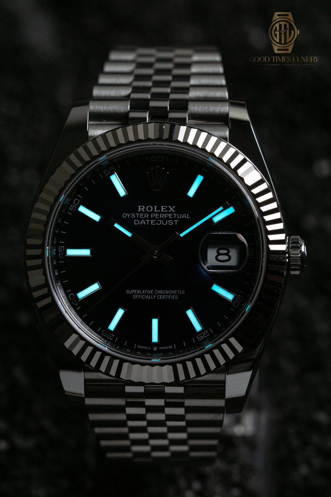 | Rolex Datejust 41MM 126334 Silver Stick Fluted Jubilee Stainless Steel Watch djpjewelers (5243) |