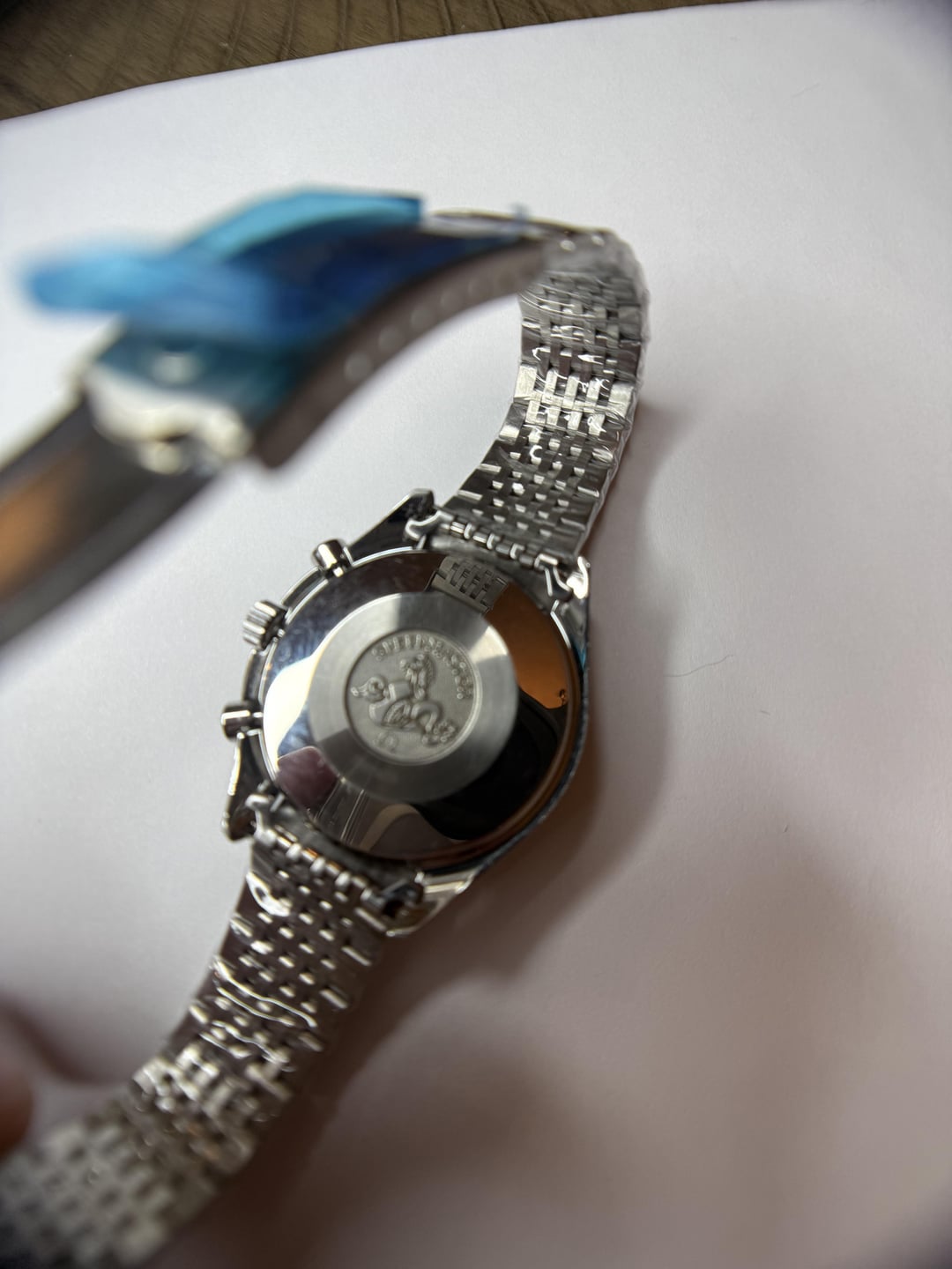 This is watch only. No box or papers. I bought it on watchexchange last year. These pics do not do it justice! It is beautiful in the sun. I just think 39mm looks too small on my wrists. It does have scratches from use. I personally have never worn it for more than just trying it on.